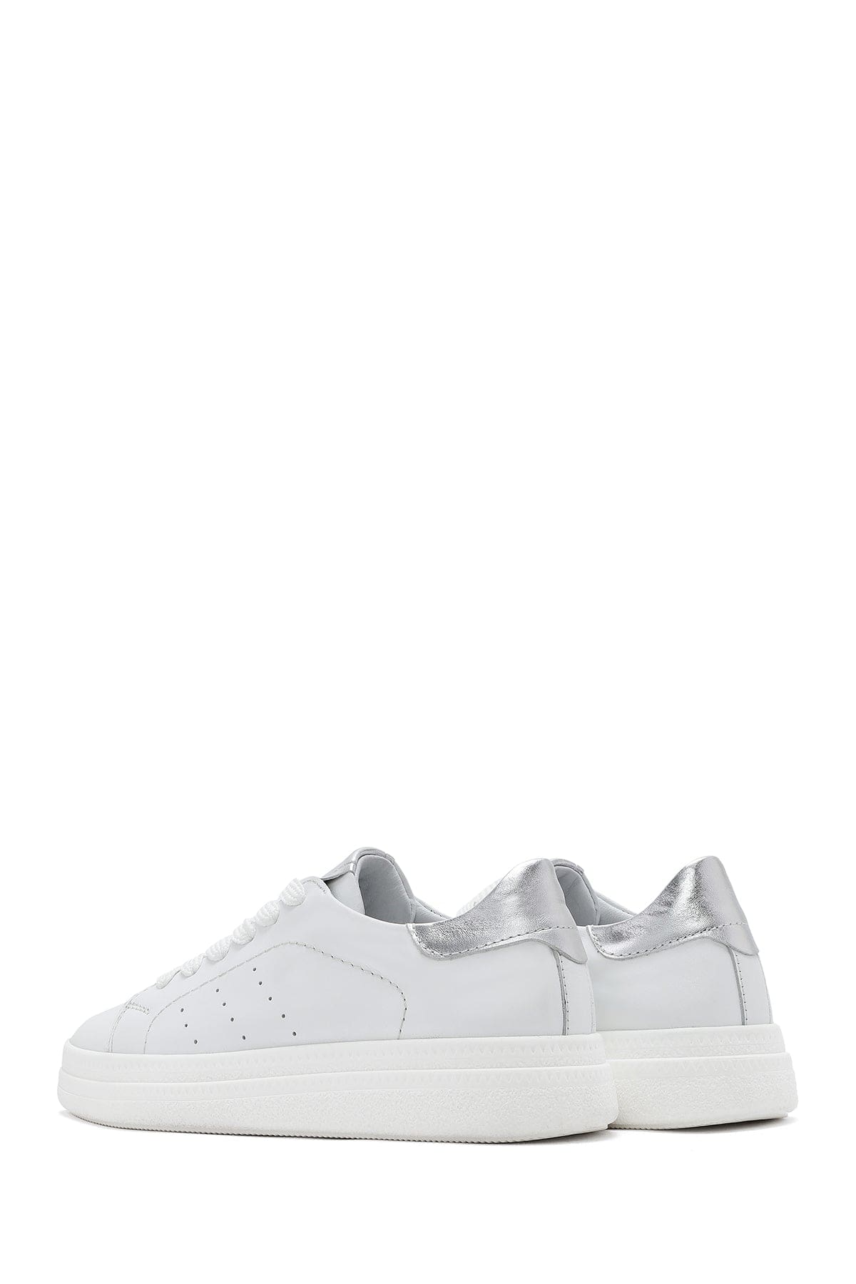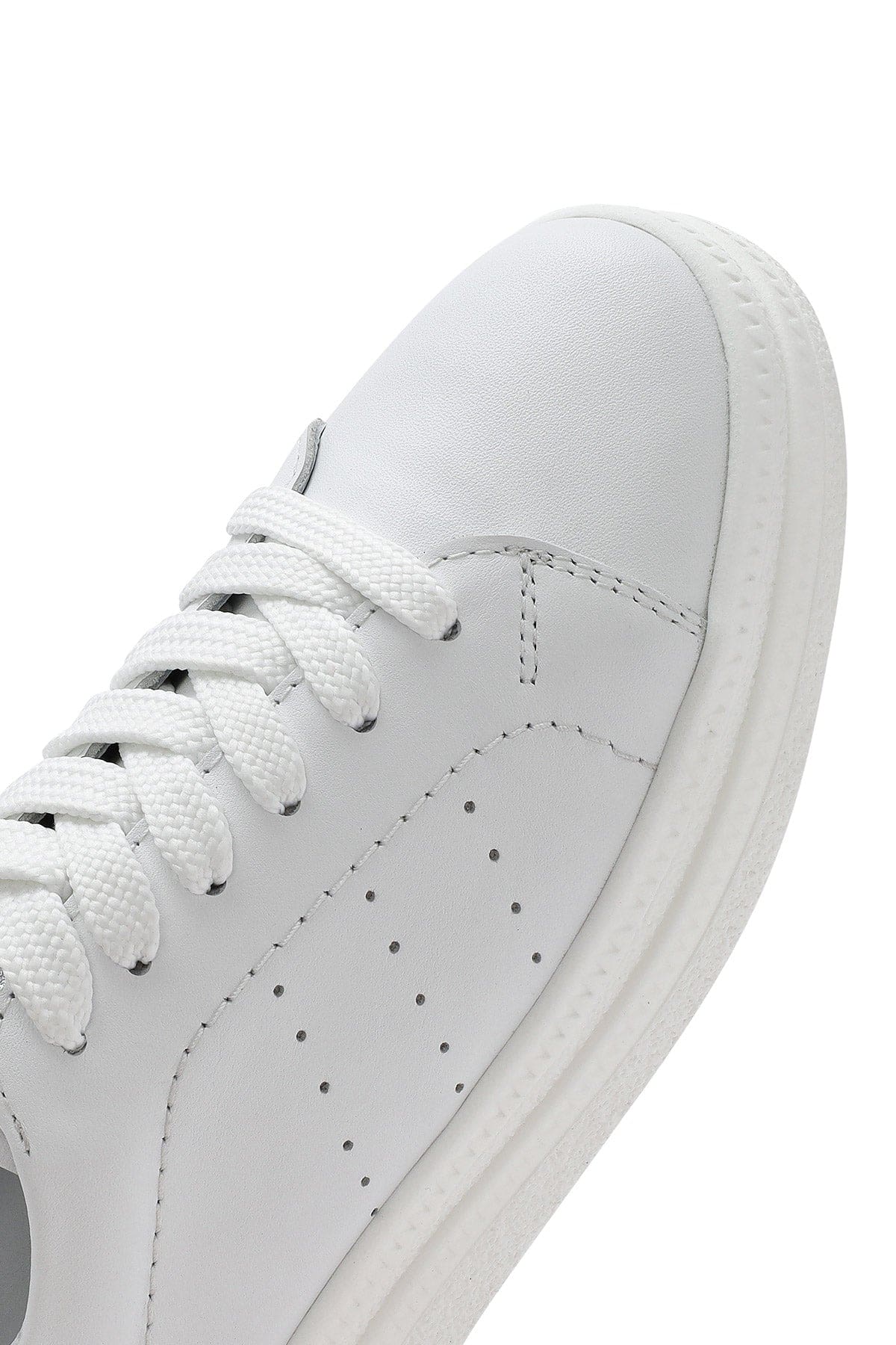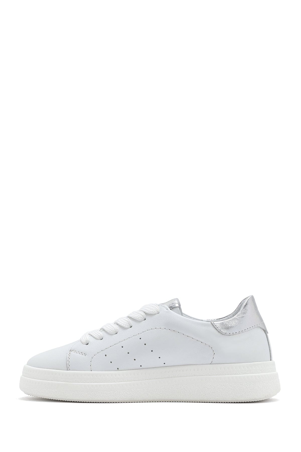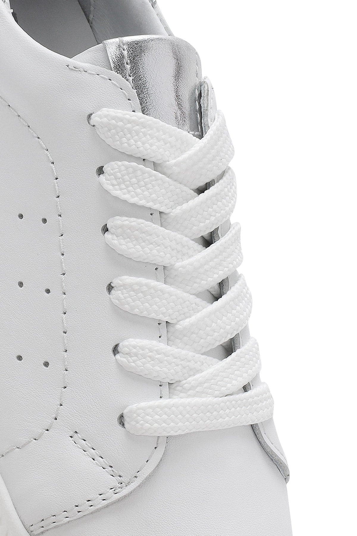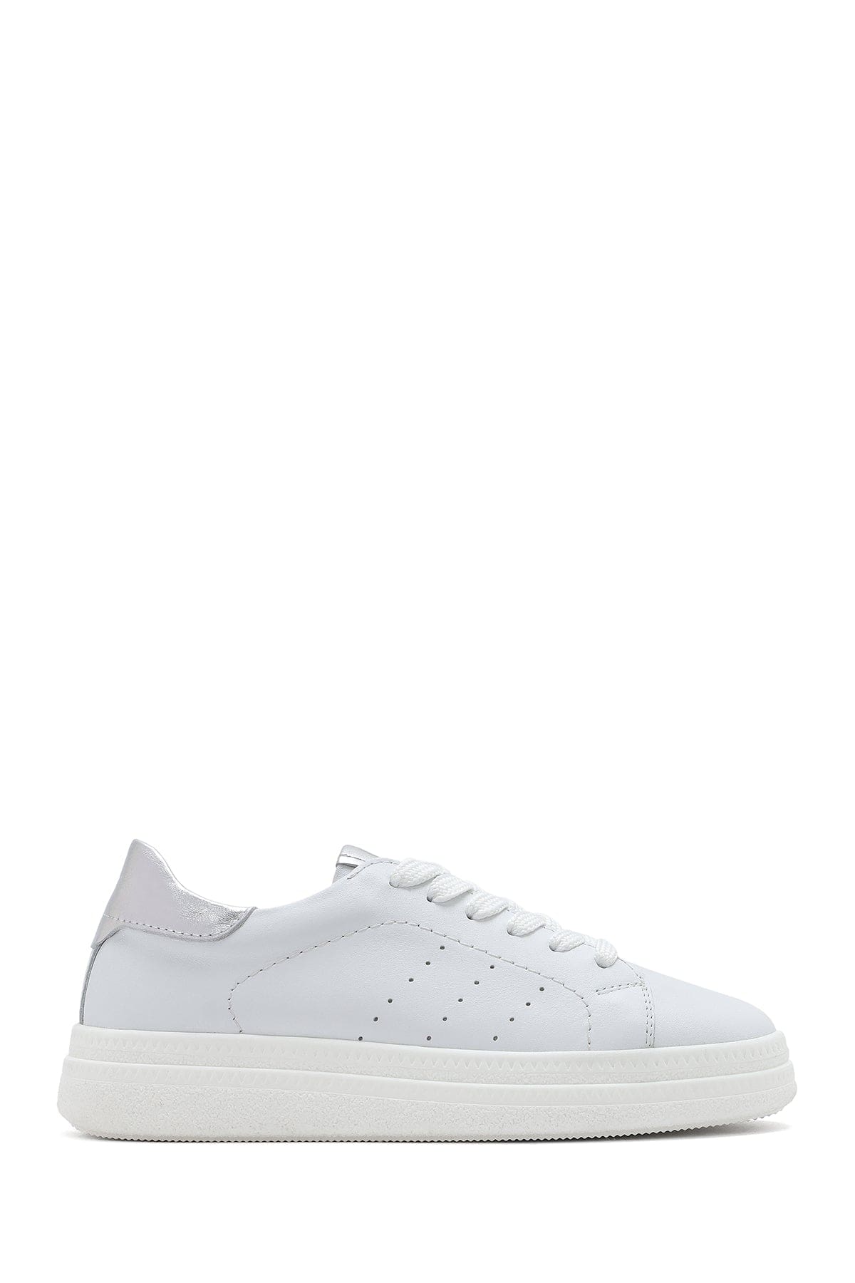 Kadın Beyaz Bağcıklı Kalın Tabanlı Deri Sneaker