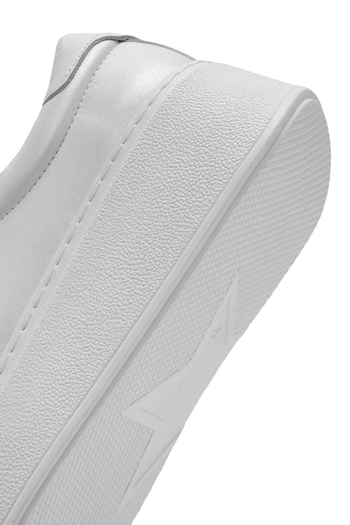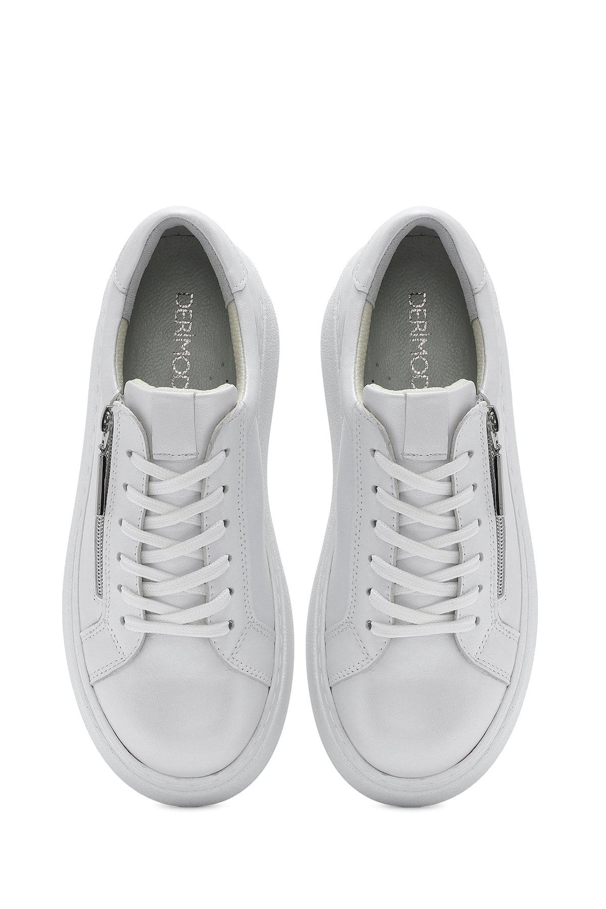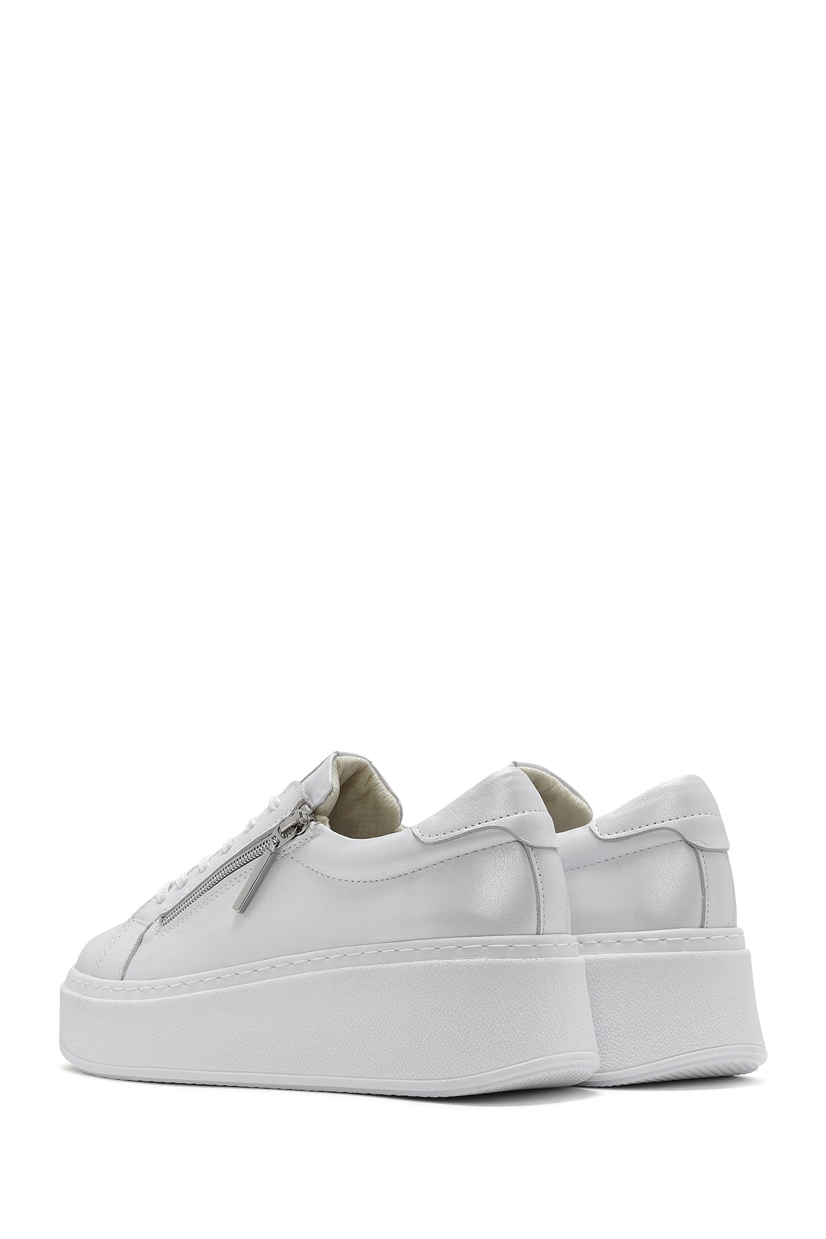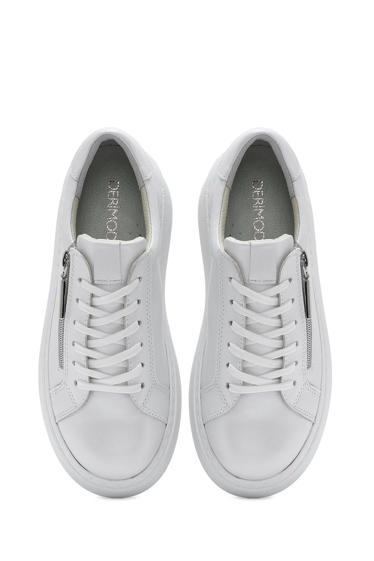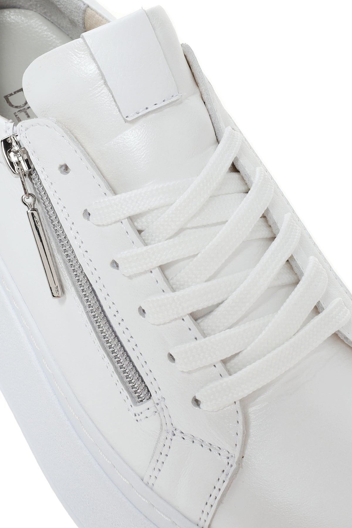 Kadın Beyaz Kalın Tabanlı Yandan Fermuarlı Bağcıklı Deri Sneaker