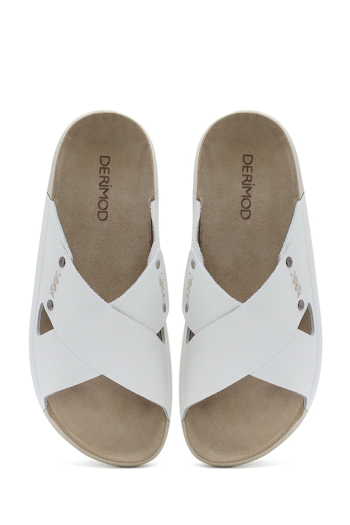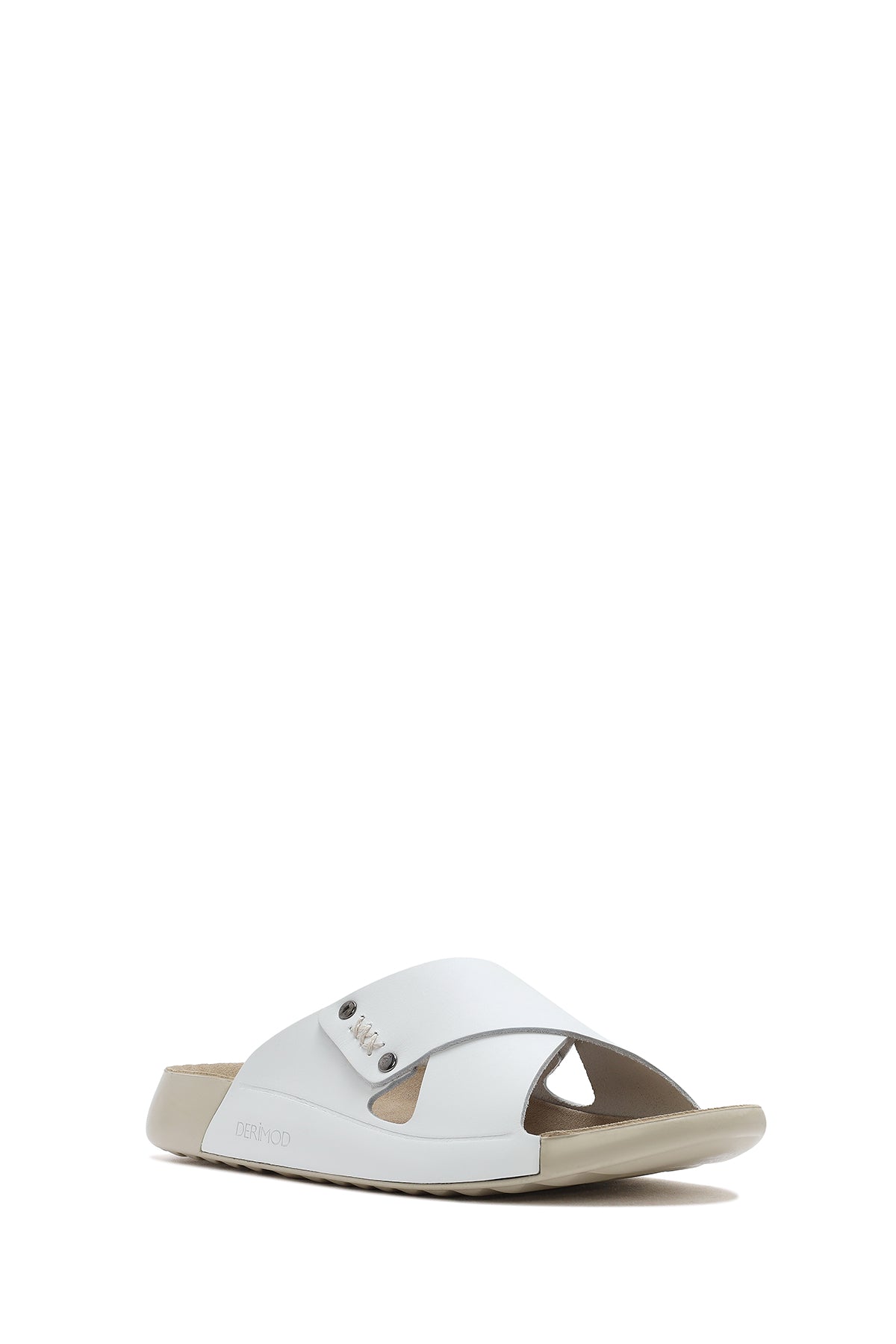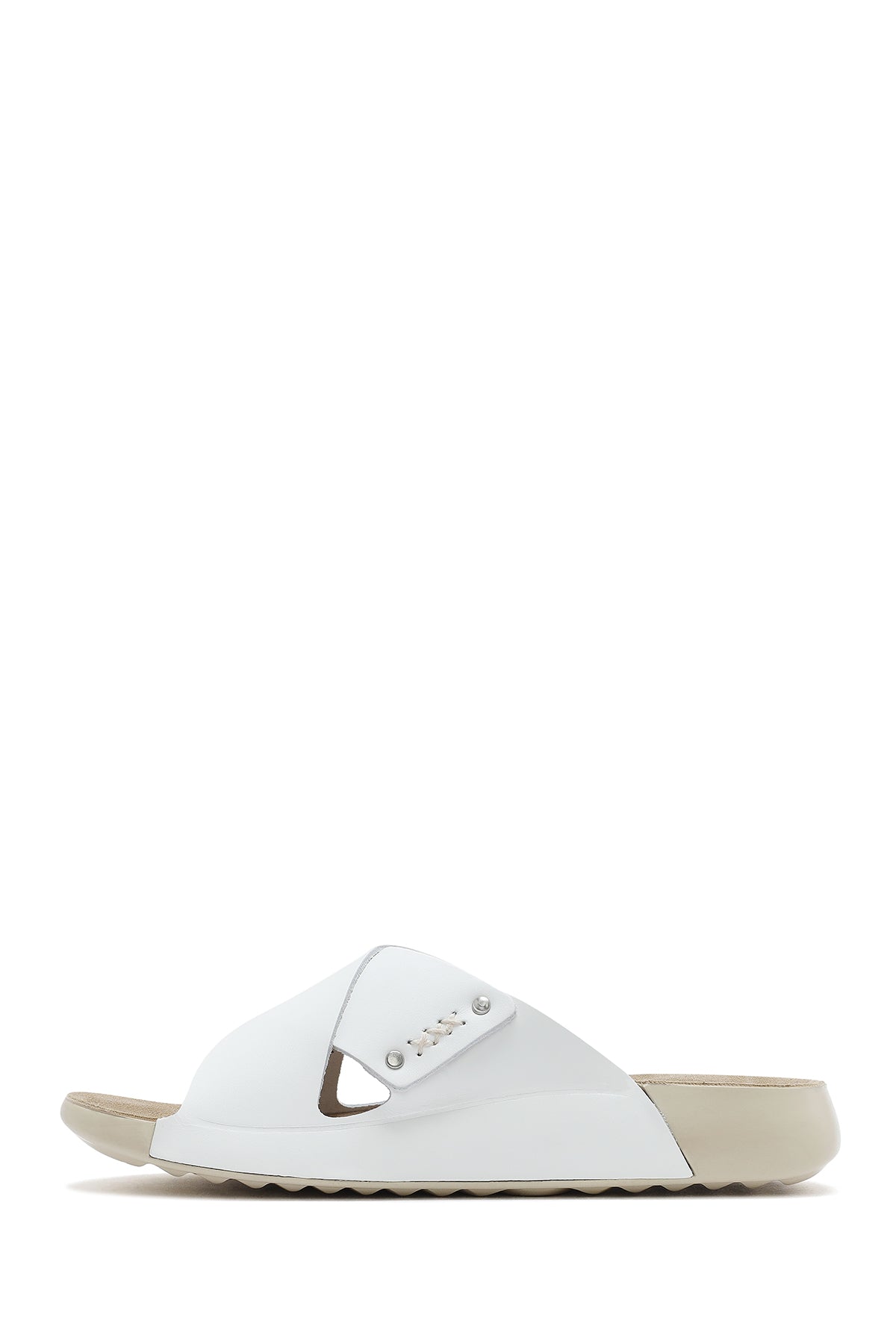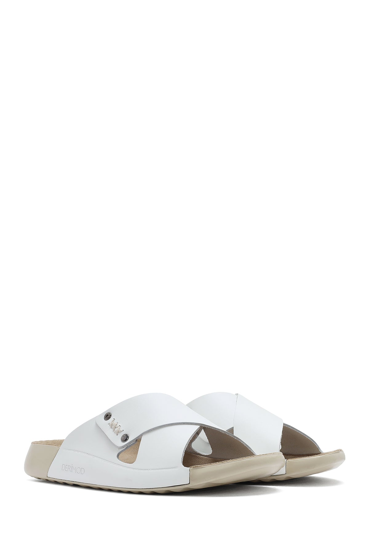 Kadın Beyaz Deri Comfort Terlik