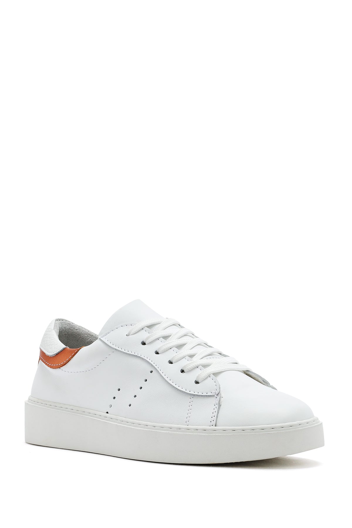 Kadın Beyaz Bağcıklı Deri Sneaker