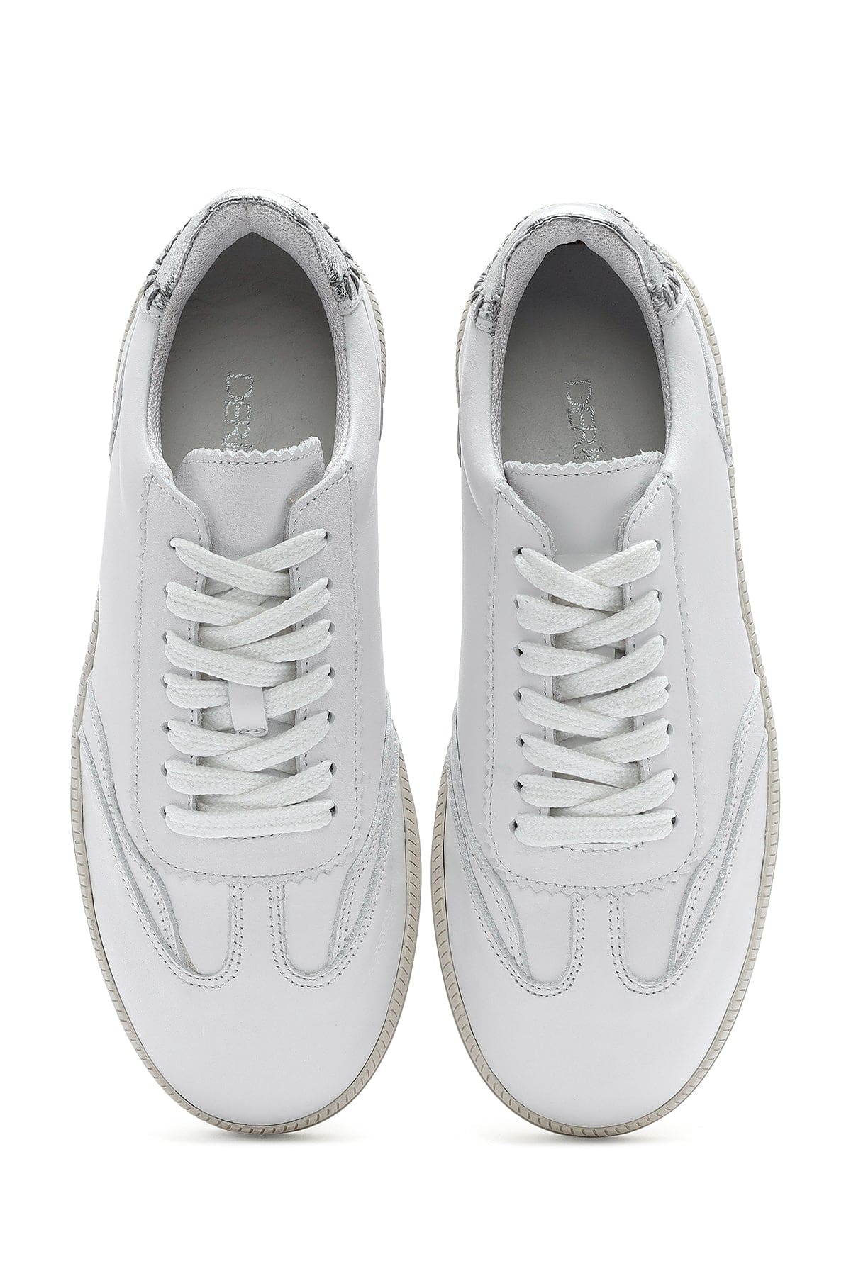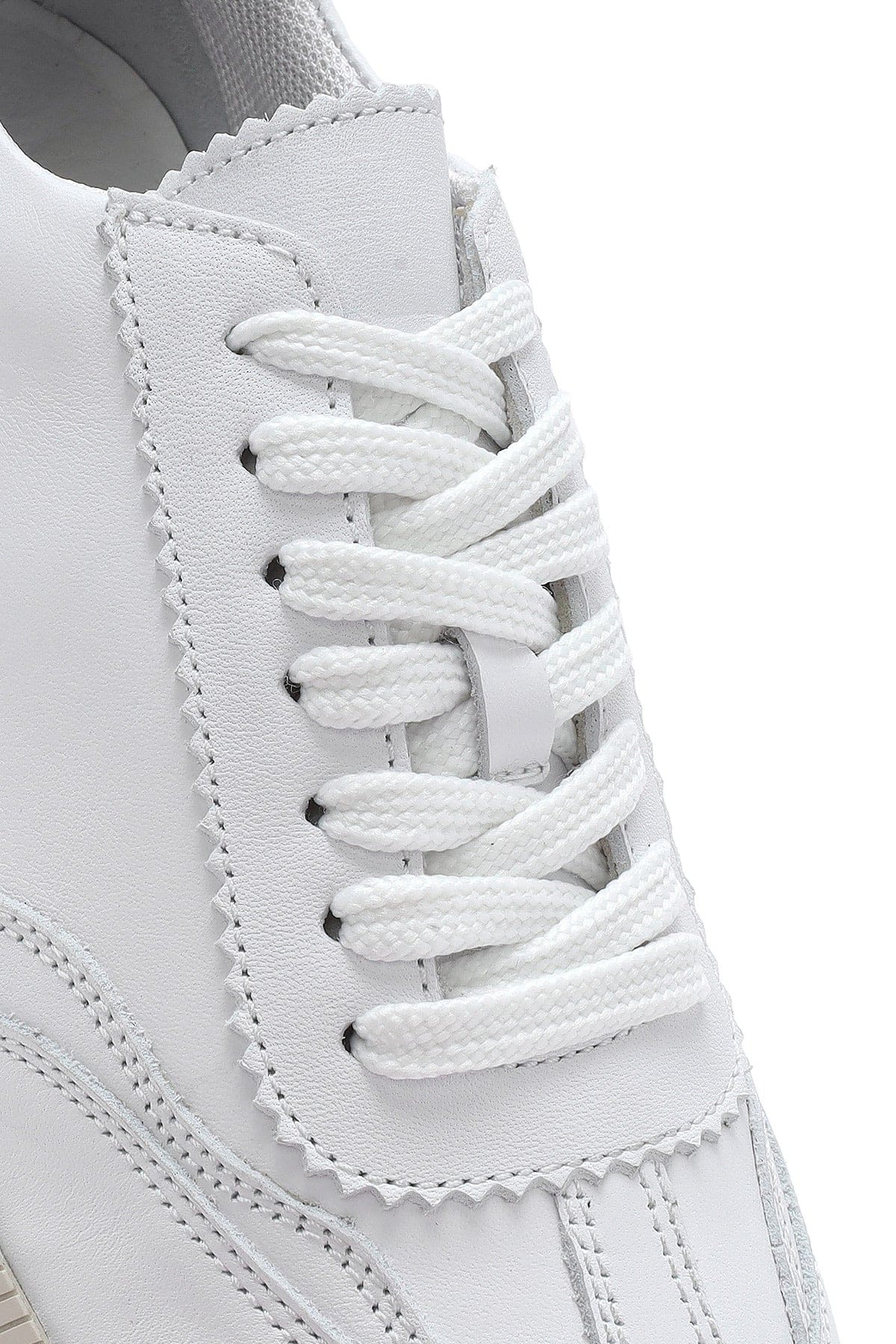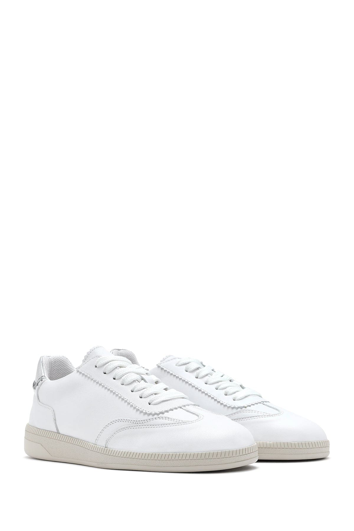 Kadın Beyaz Bağcıklı Deri Sneaker