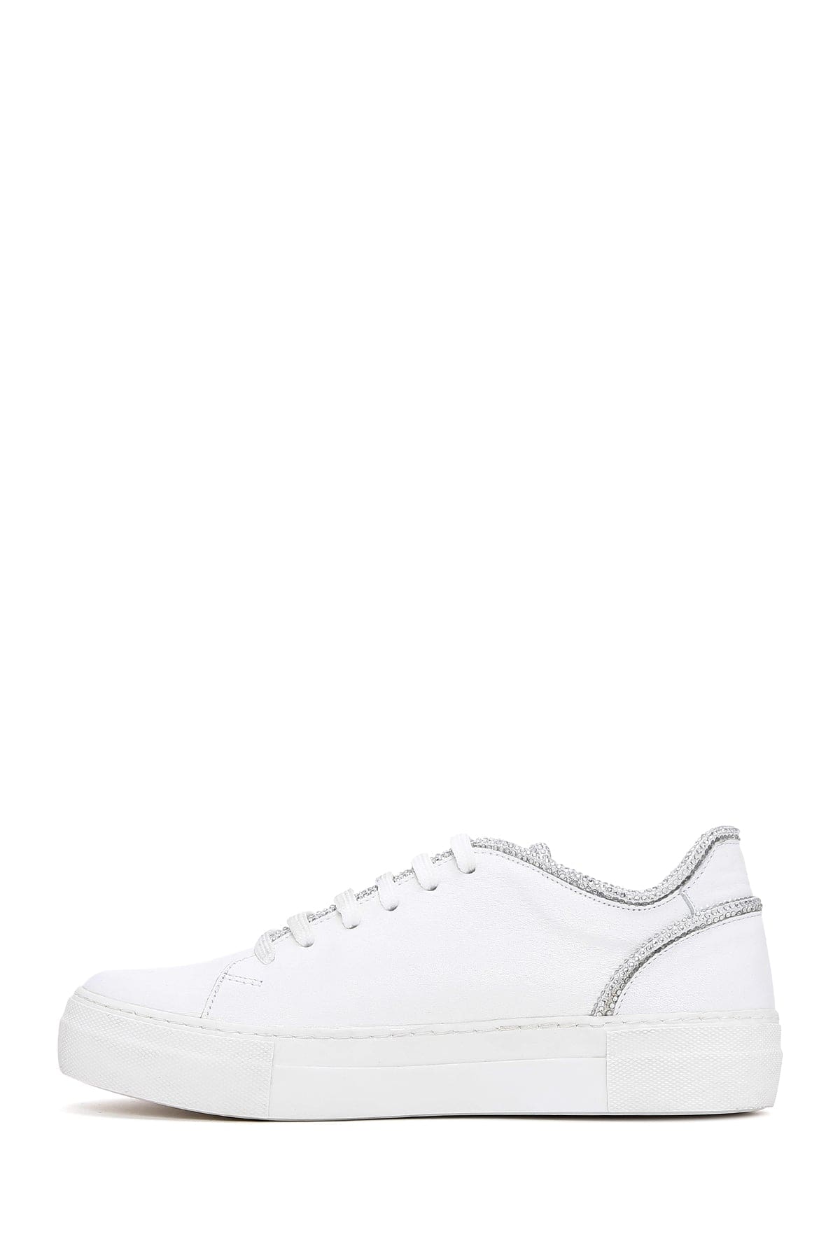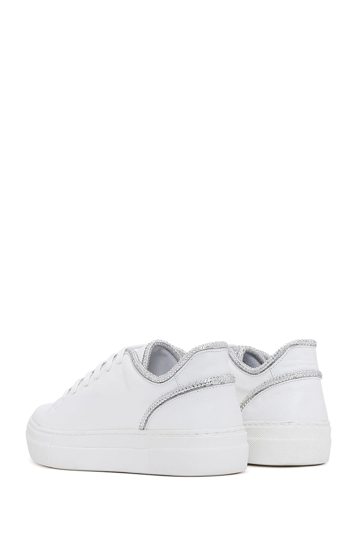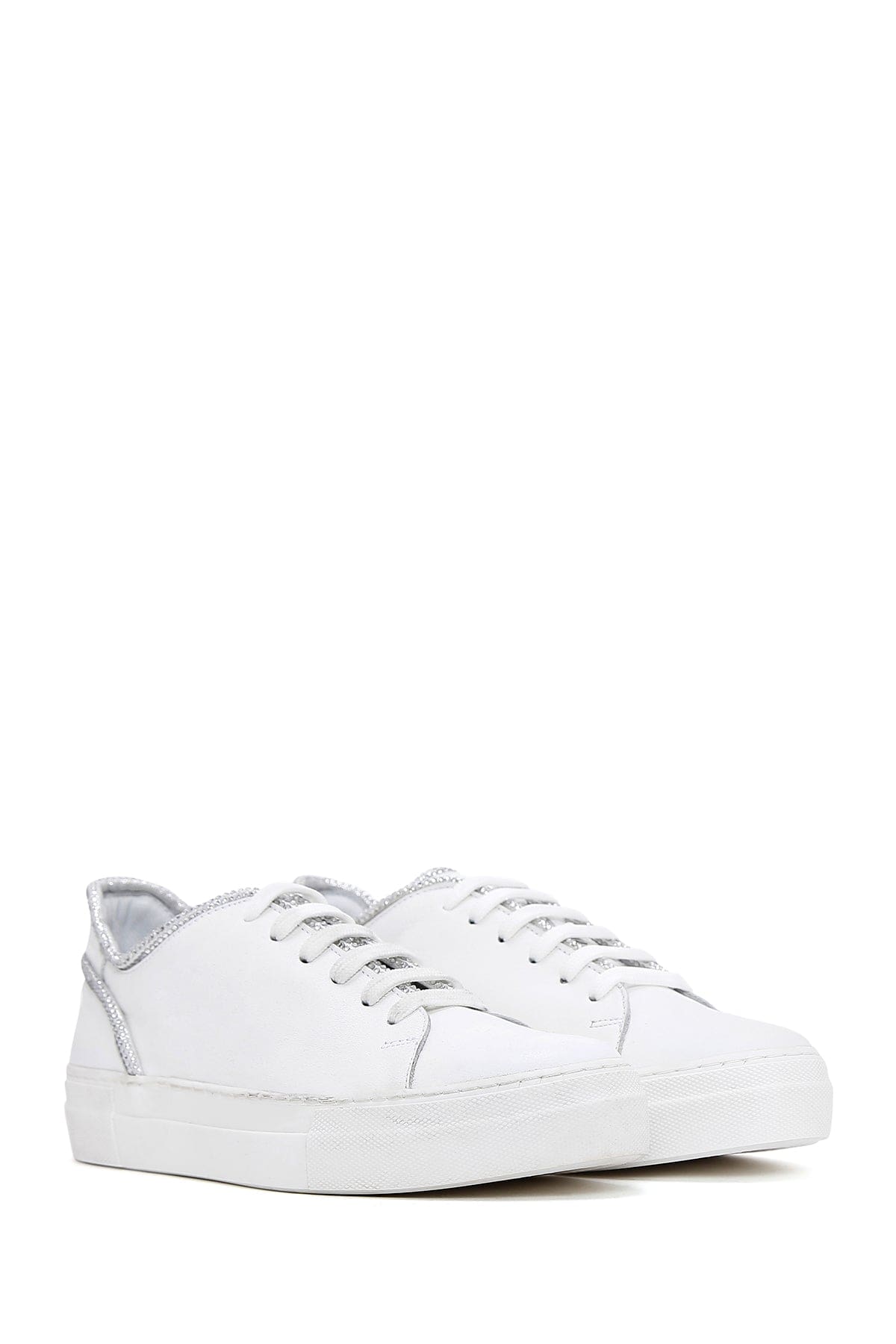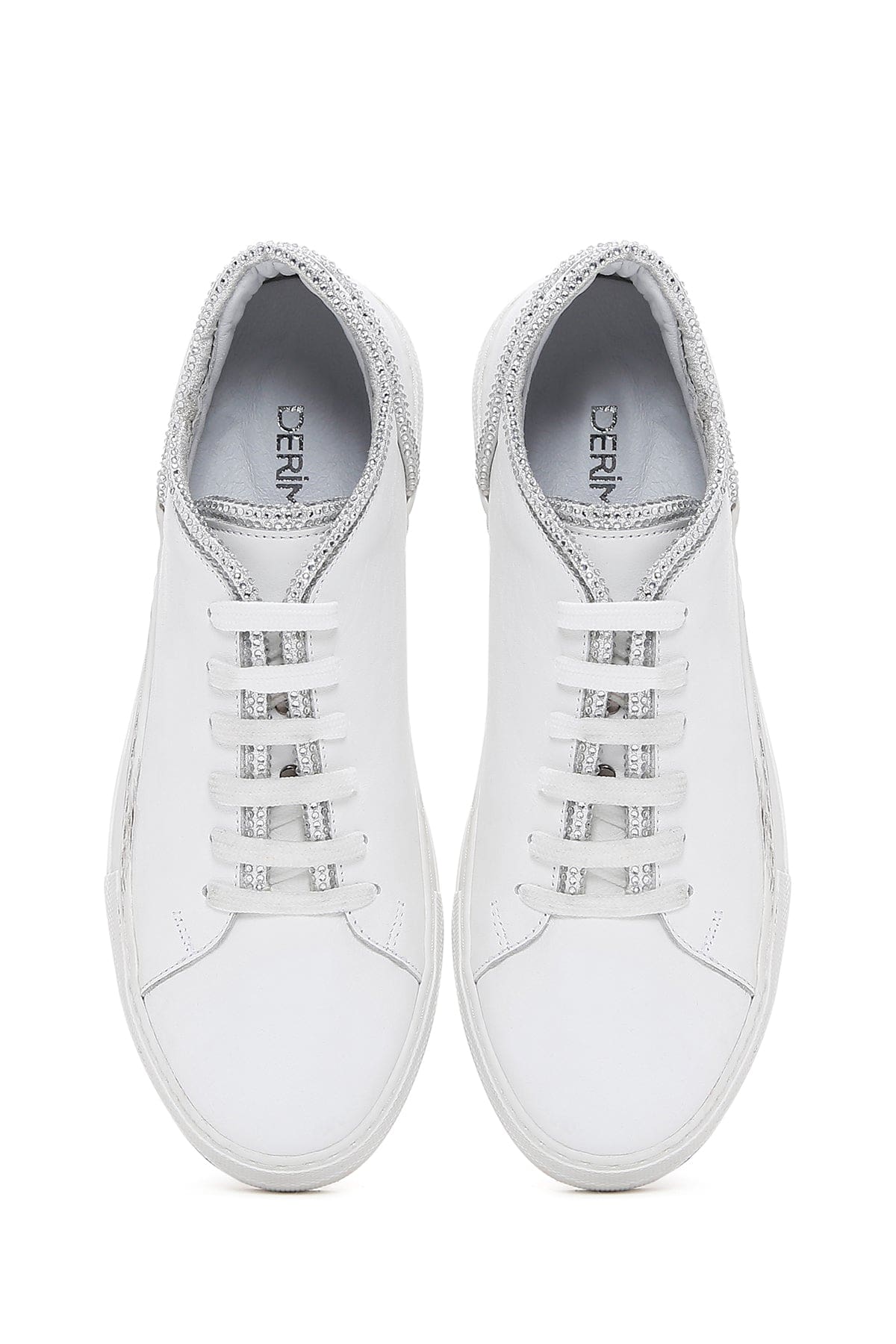 Kadın Beyaz Bağcıklı Taşlı Deri Sneaker