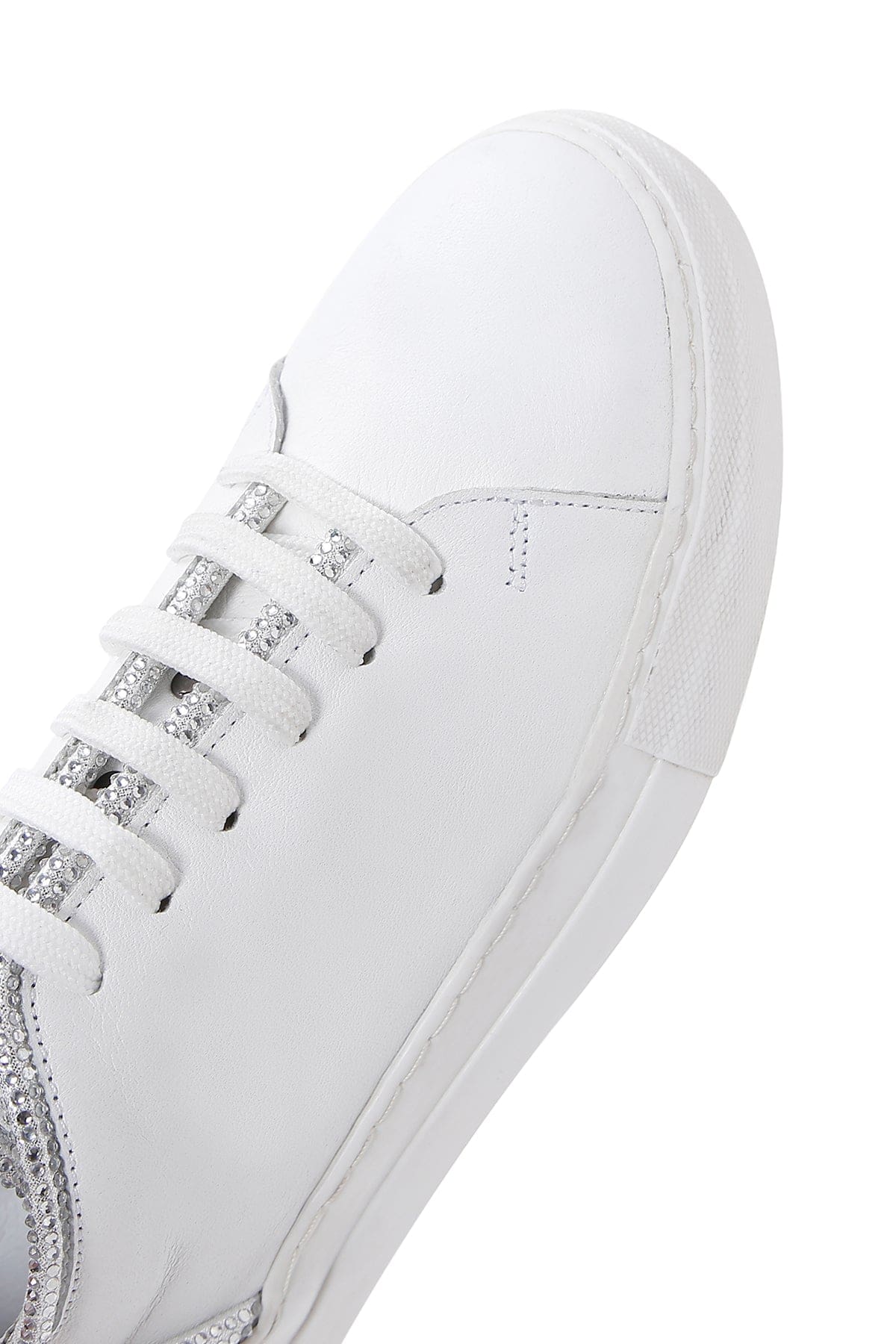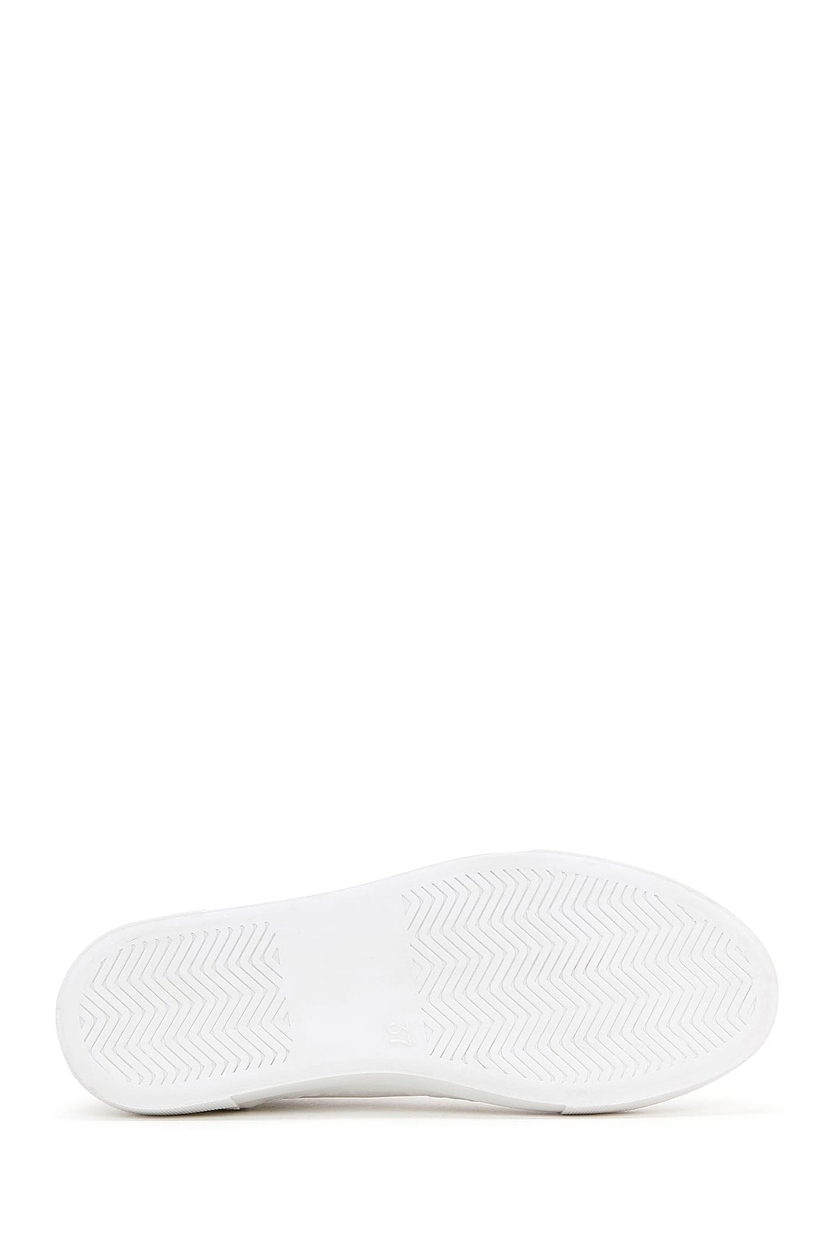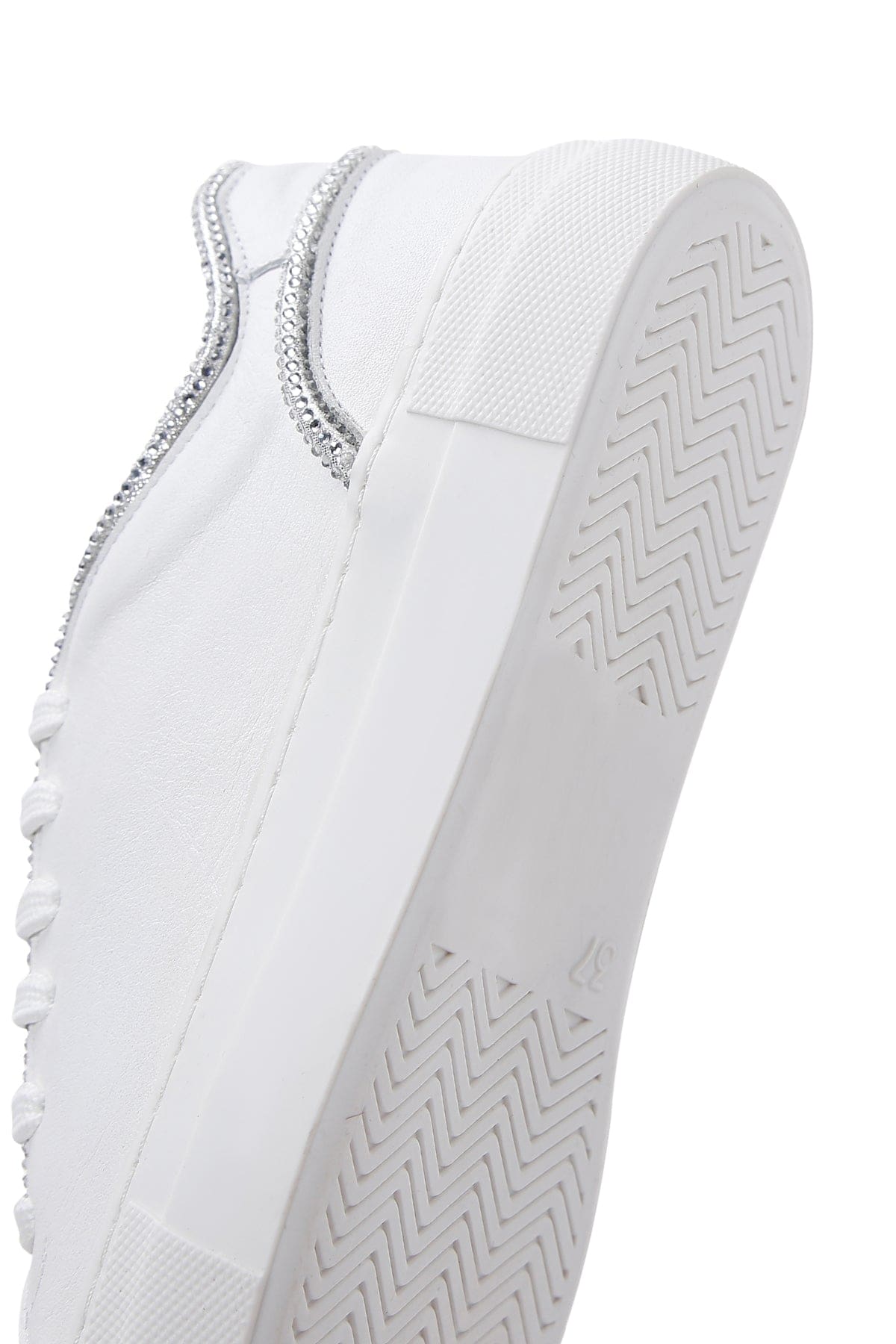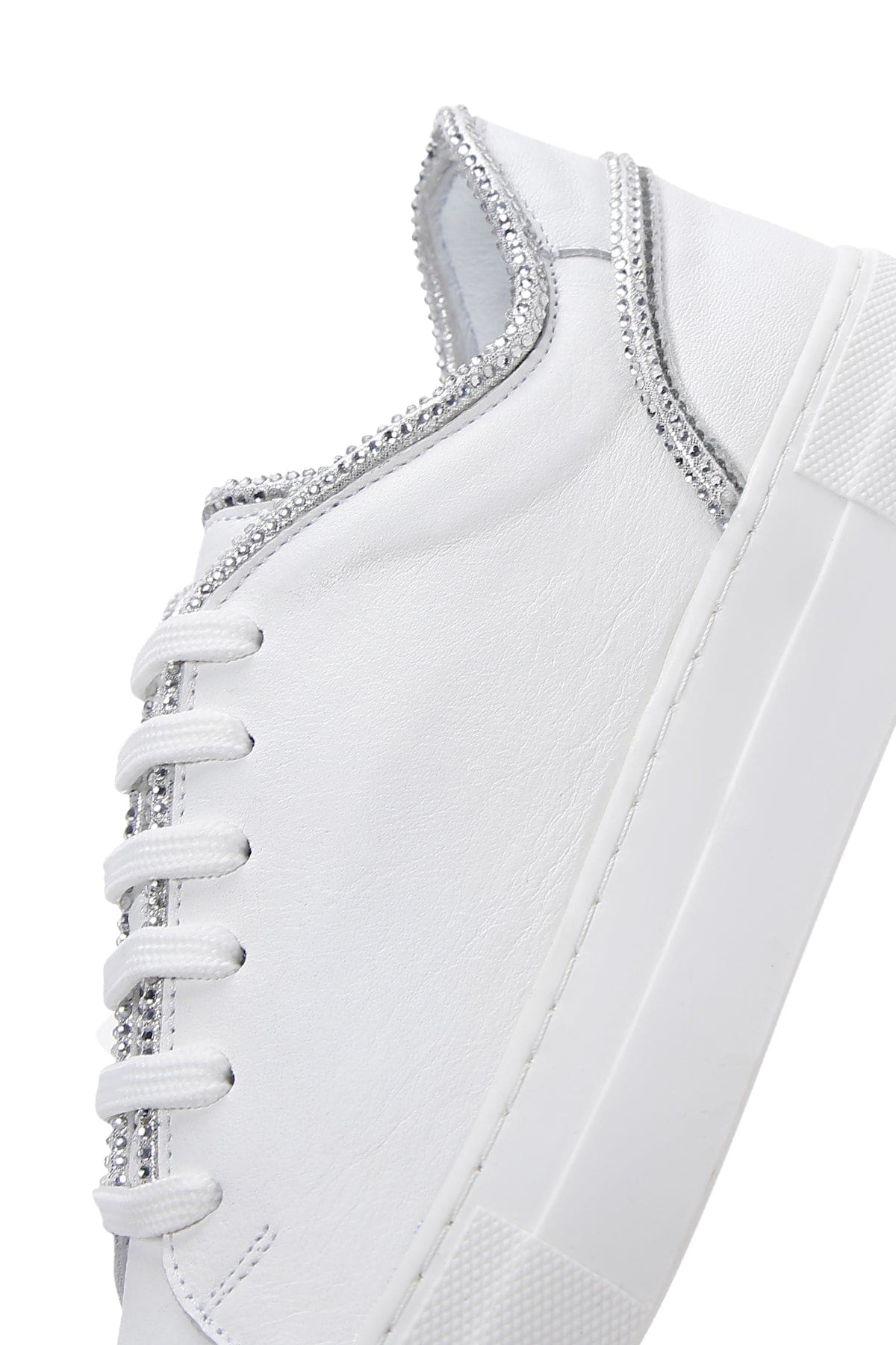 Kadın Beyaz Bağcıklı Taşlı Deri Sneaker