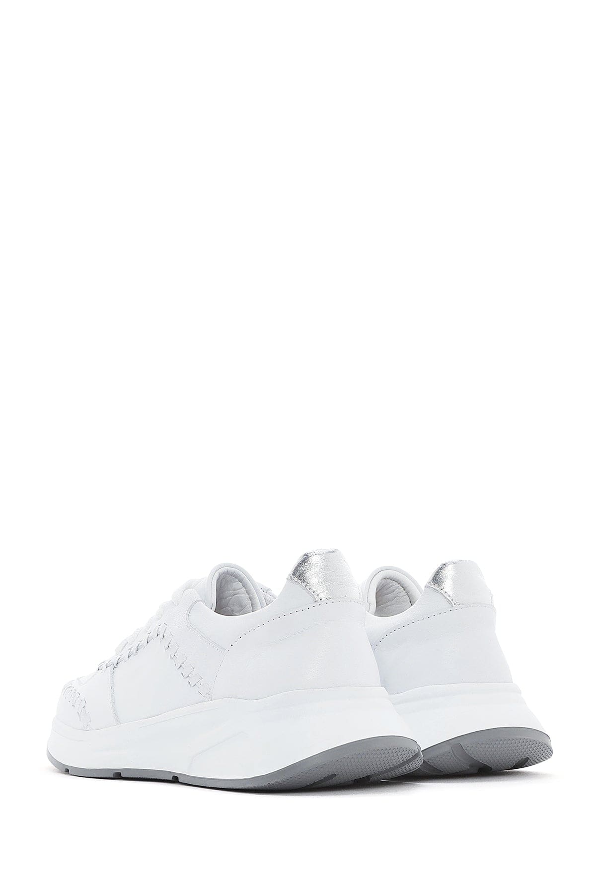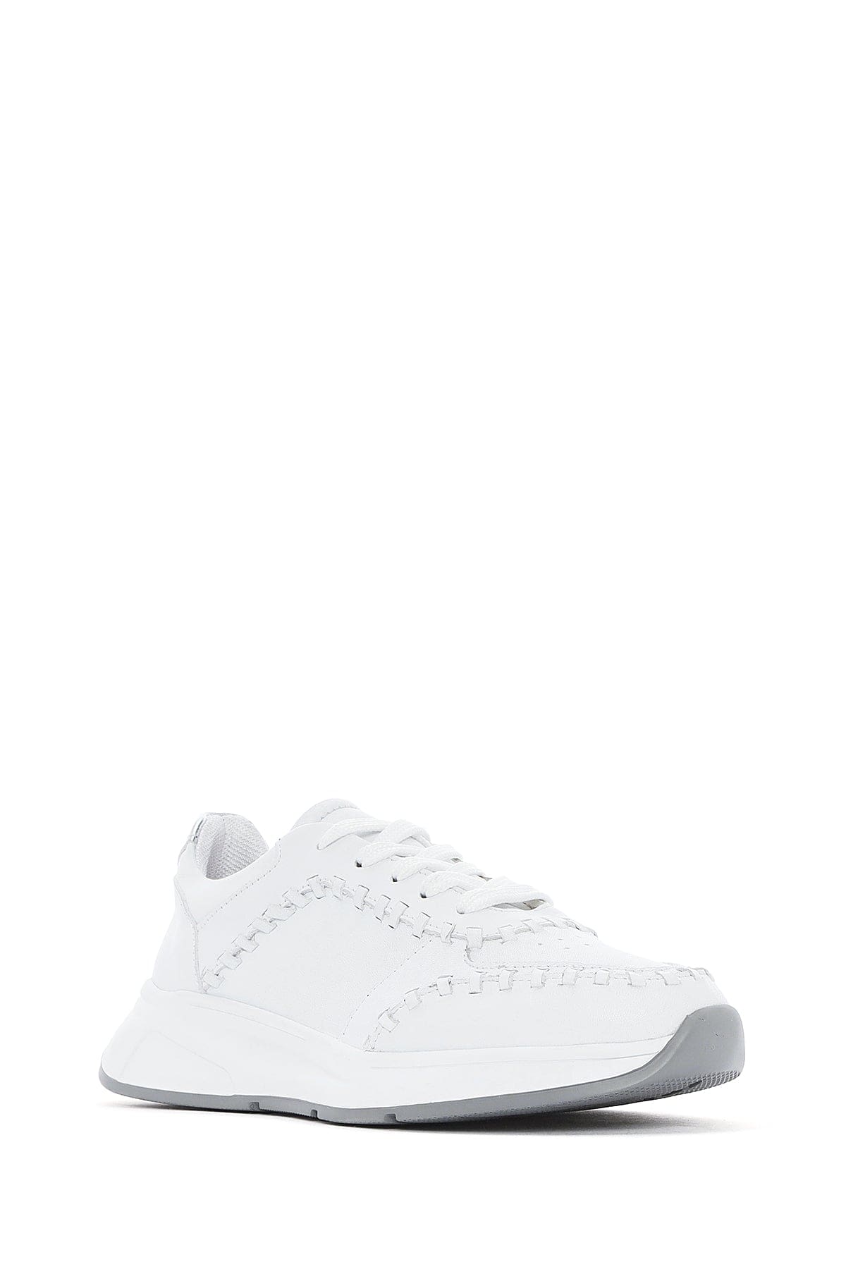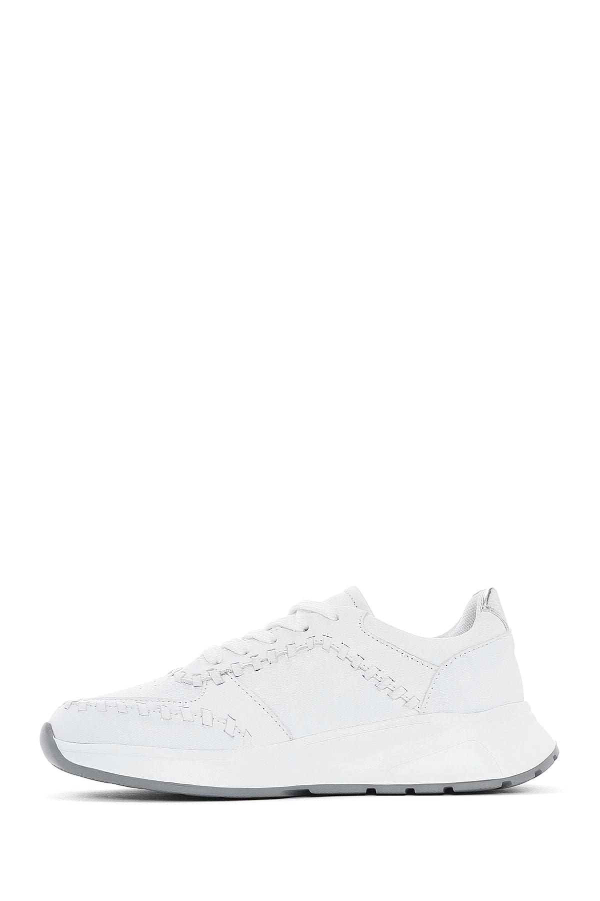 Kadın Beyaz Bağcıklı Kalın Tabanlı Deri Sneaker