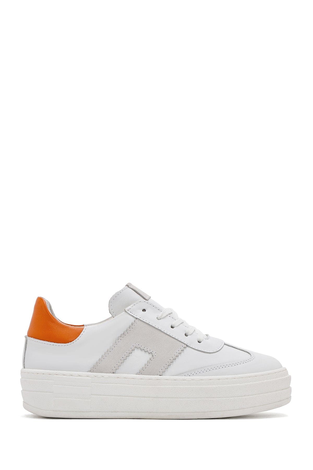Kadın Beyaz Bağcıklı Kalın Tabanlı Deri Sneaker