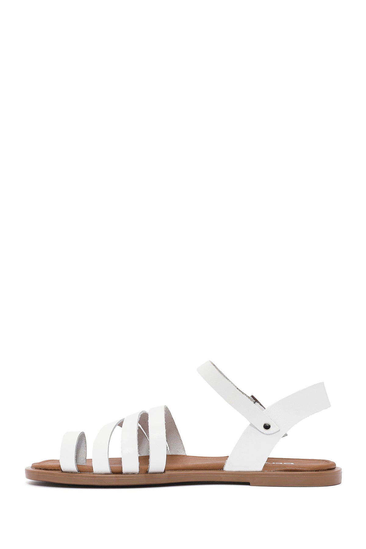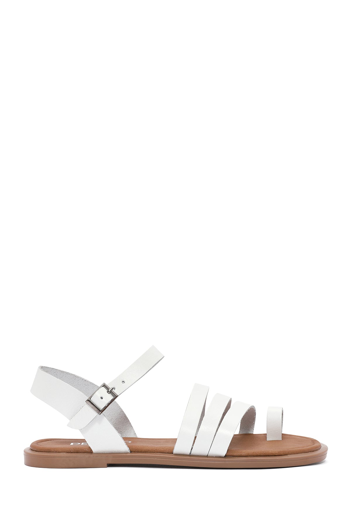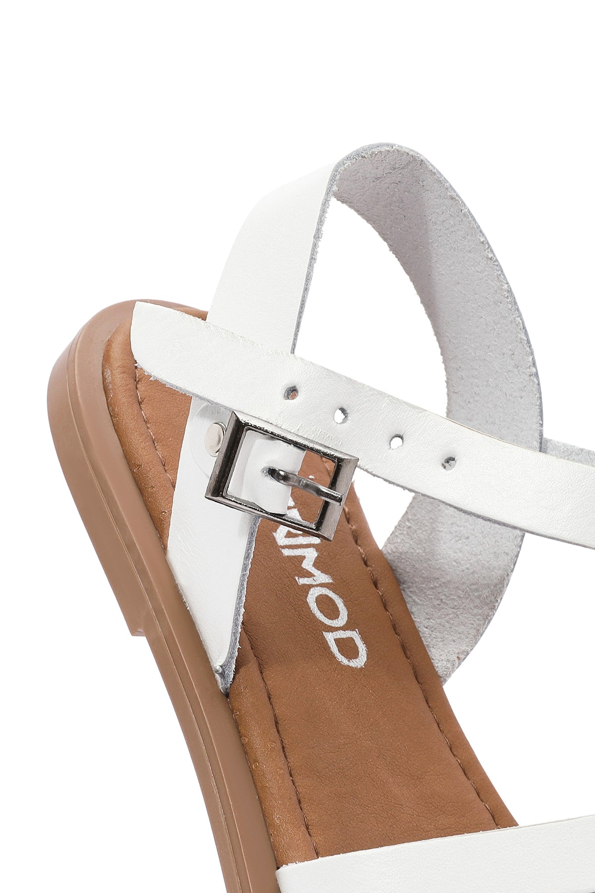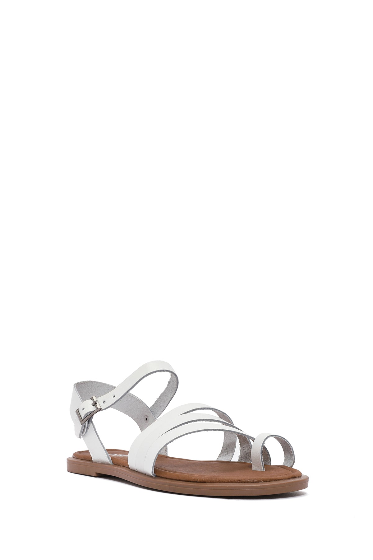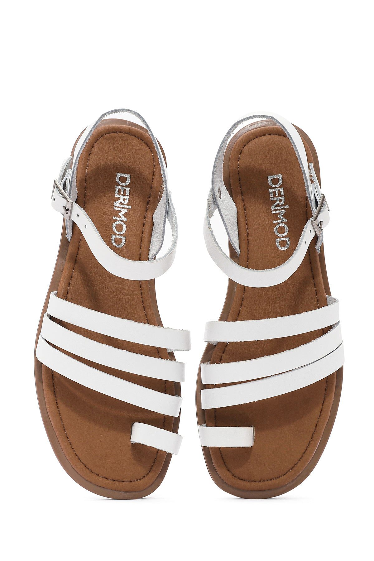 صندل زنانه چرمی سفید انگشتی بندی مدل بدروم دری مد
