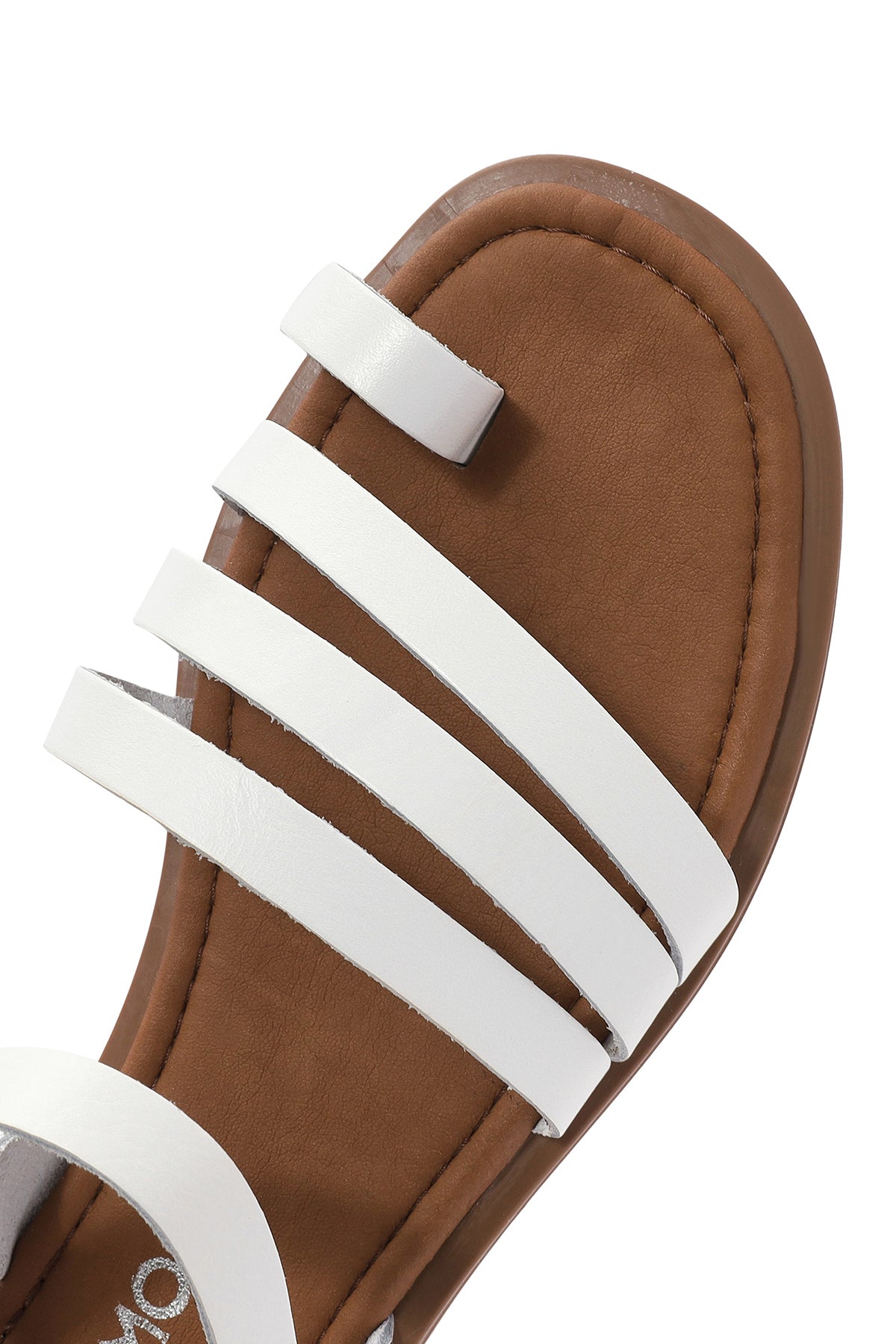 Kadın Beyaz Bilekten Bağlamalı Parmak Arası Deri Bodrum Sandalet