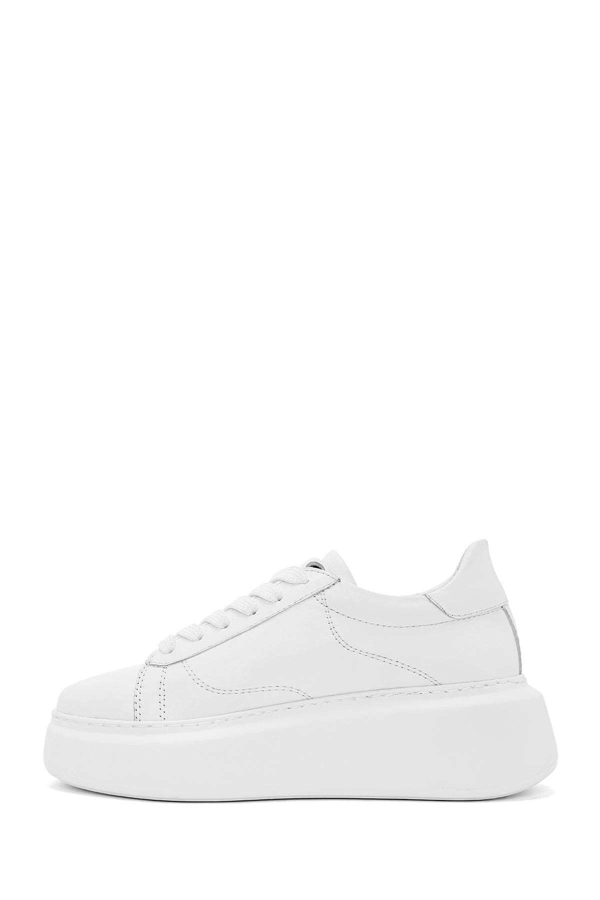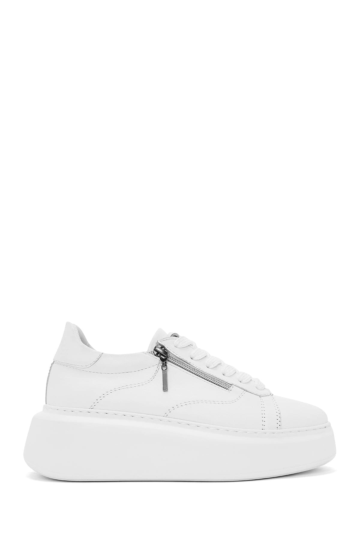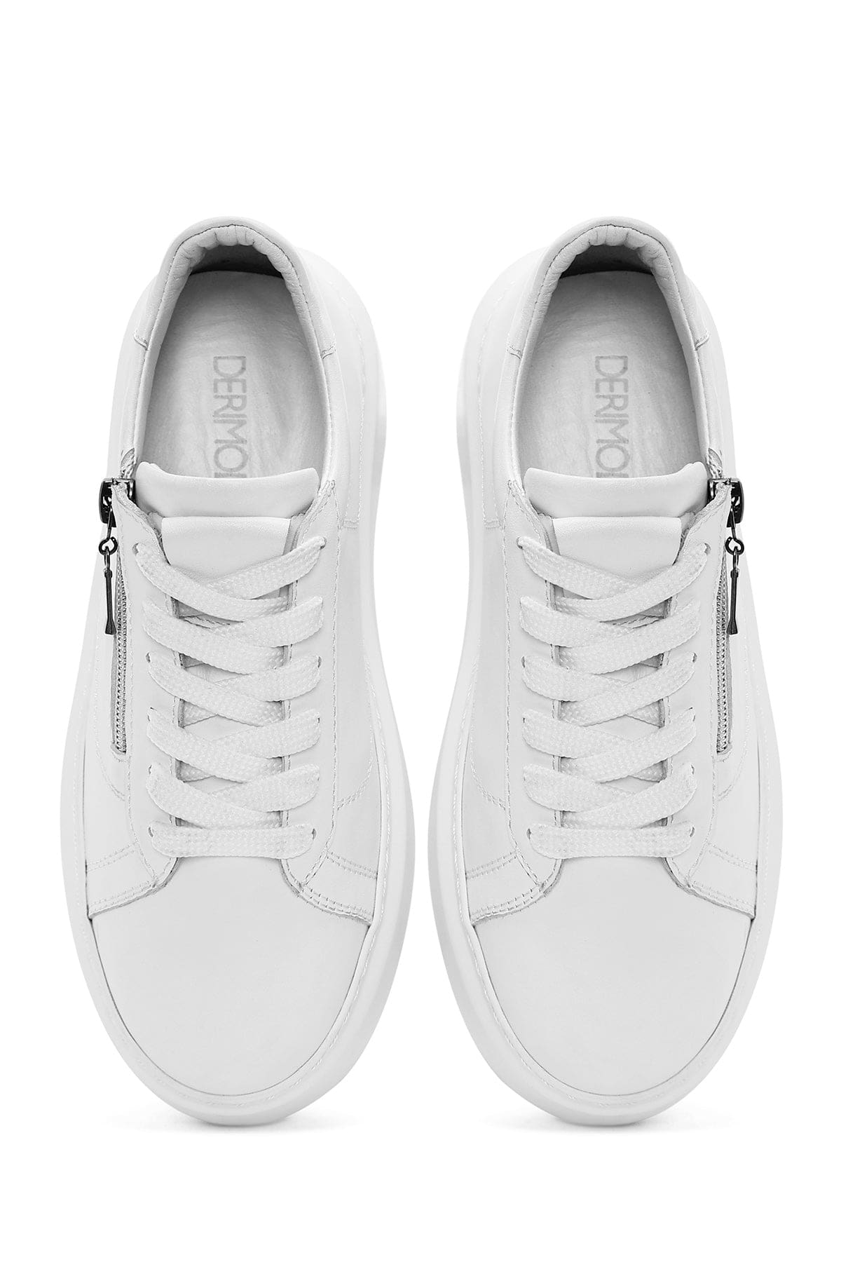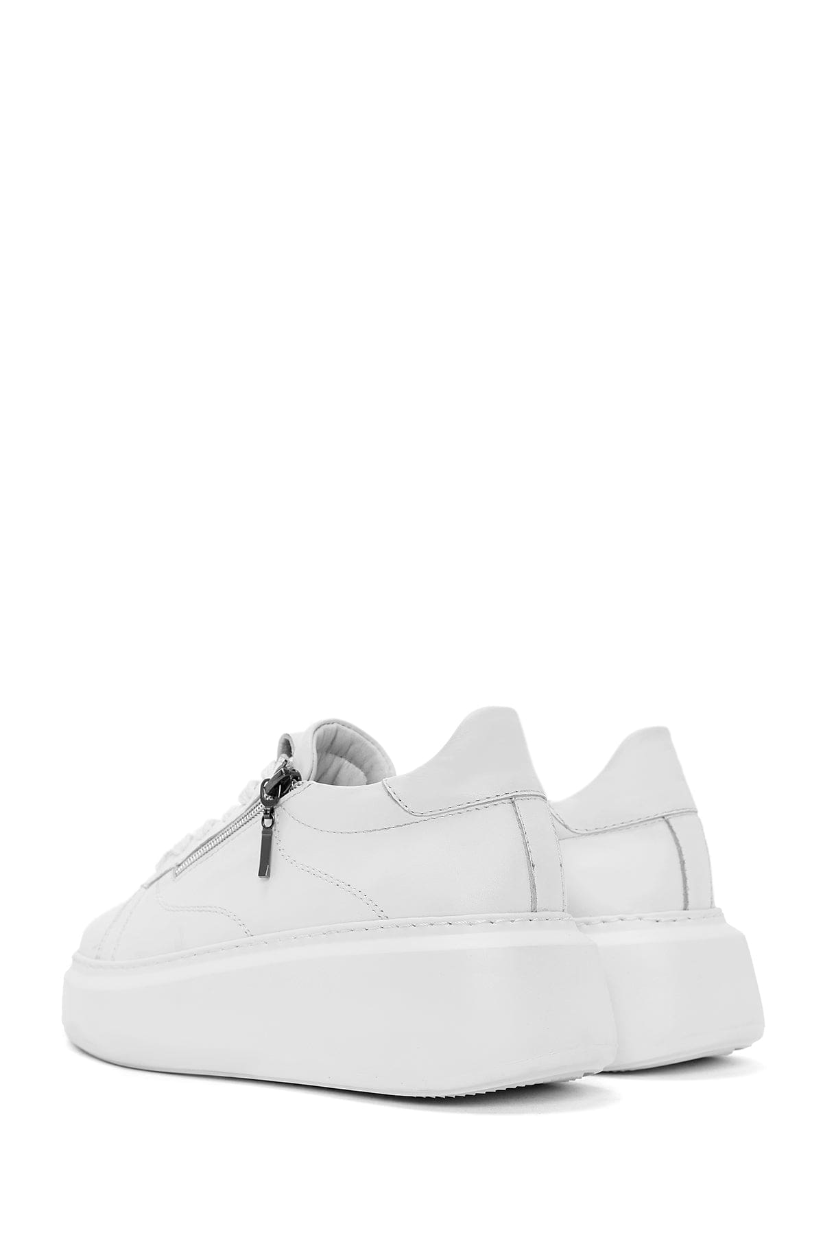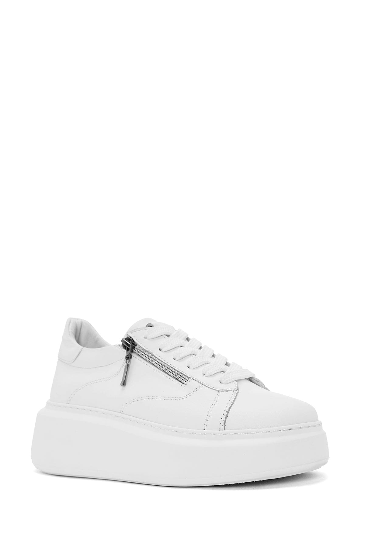 Kadın Beyaz Fermuarlı Bağcıklı Kalın Tabanlı Deri Sneaker