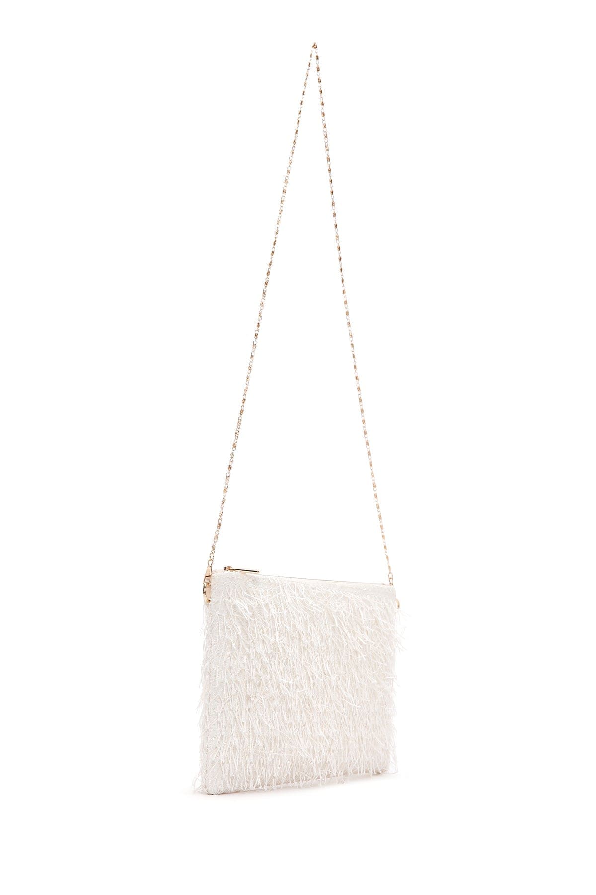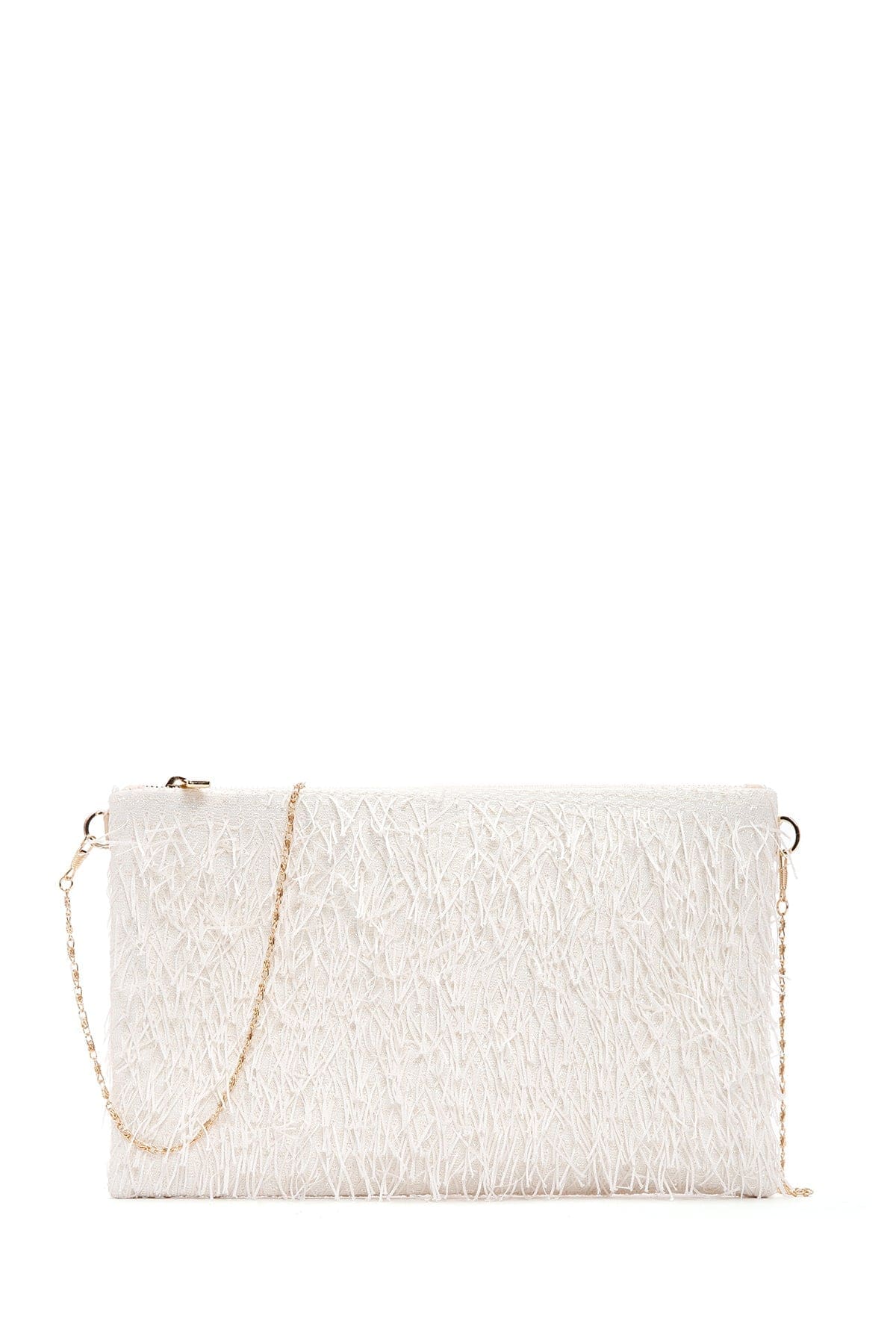 کیف کلاچ زنانه سفید بند بلند زنجیریدری مد