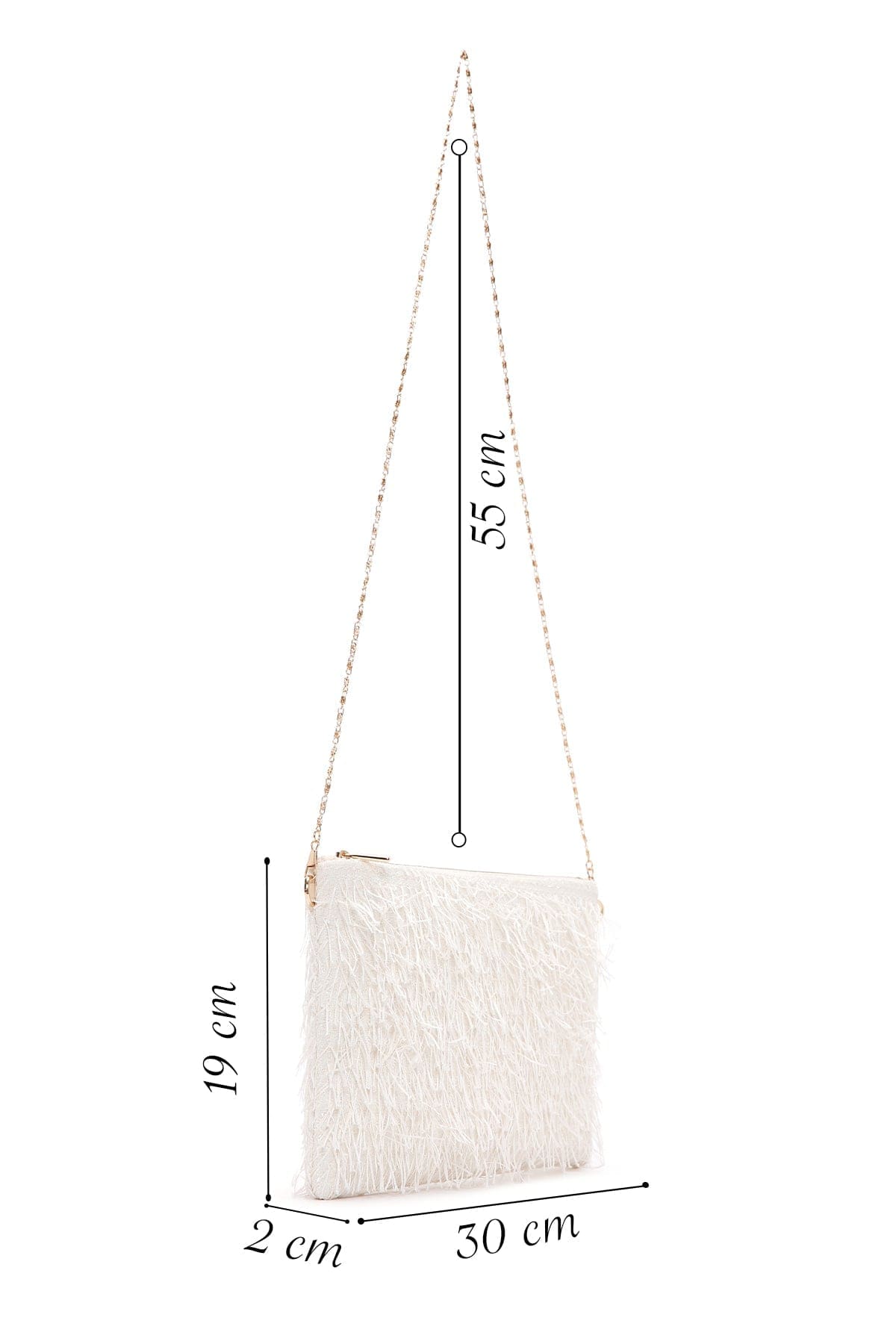 Kadın Beyaz Uzun Zincir Askılı Portföy Çanta