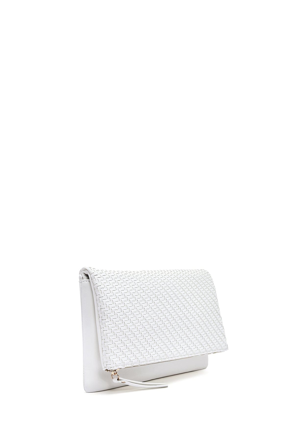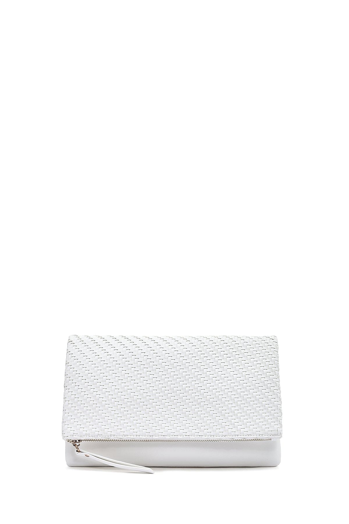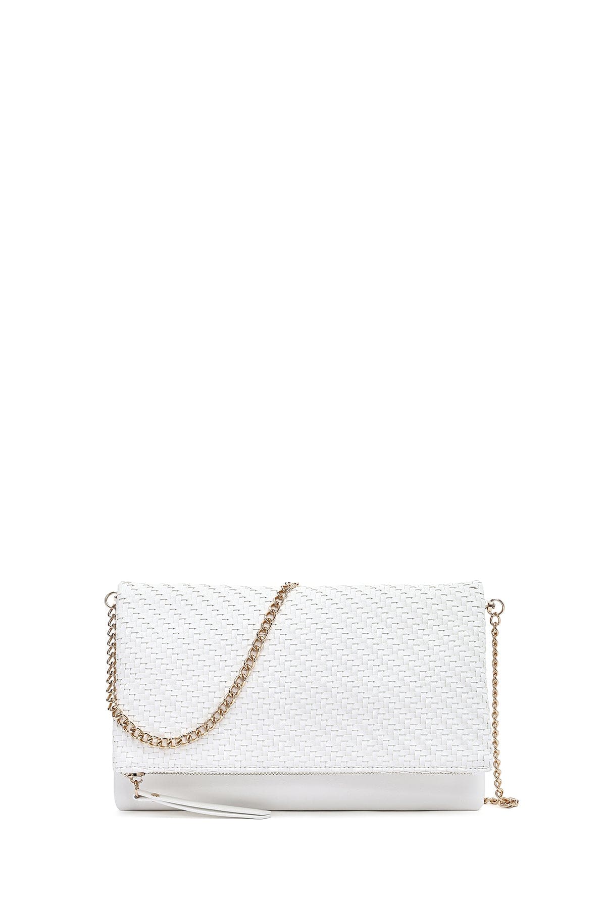 Kadın Beyaz Uzun Zincir Askılı Örgülü Portföy Çanta