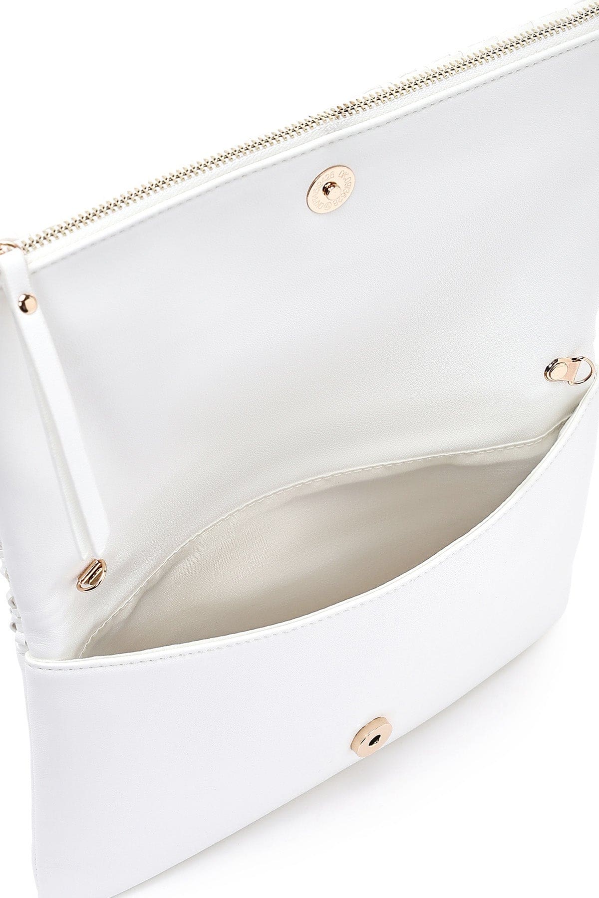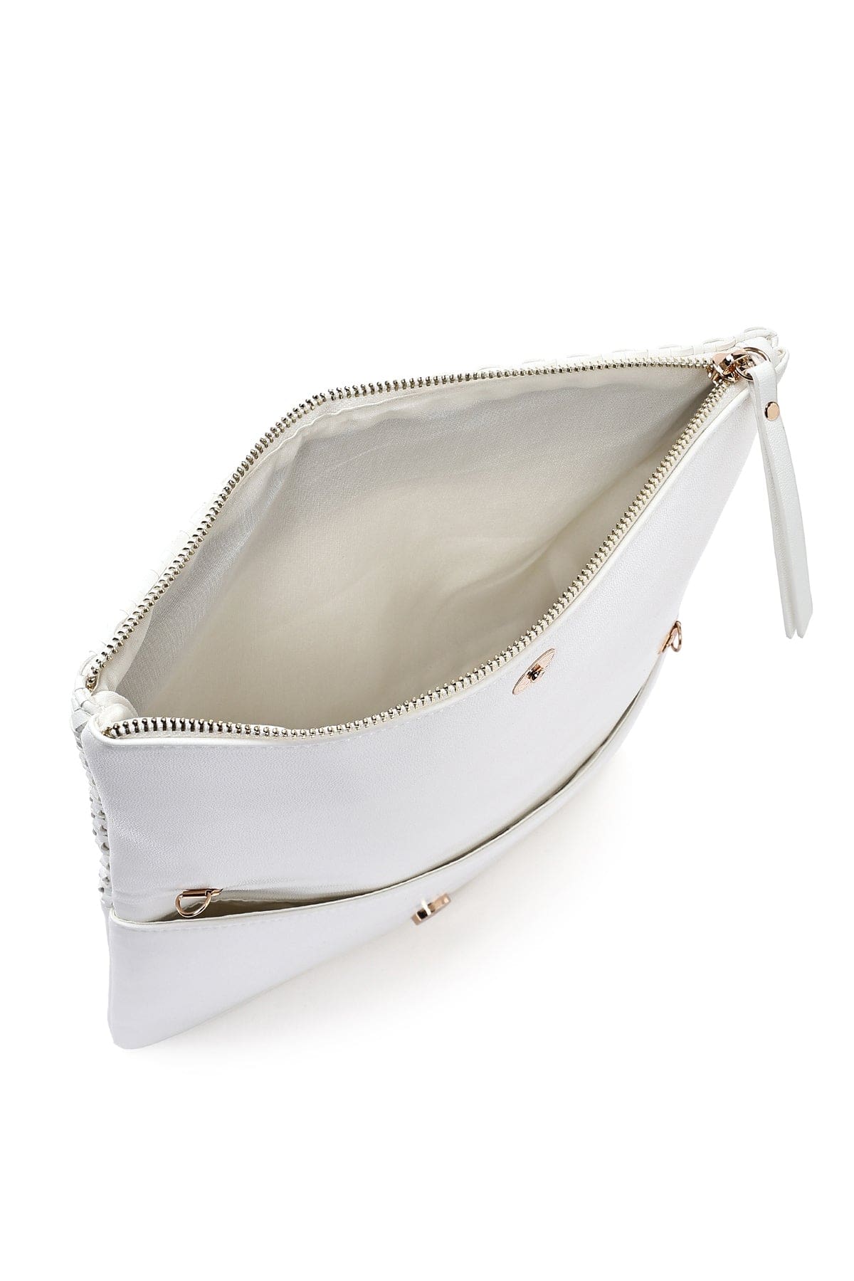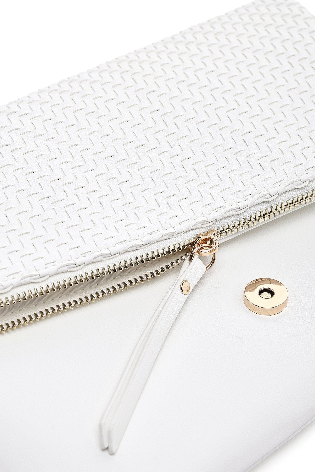 کیف کلاچ زنانه سفید بند بلند زنجیری بافتی دری مد