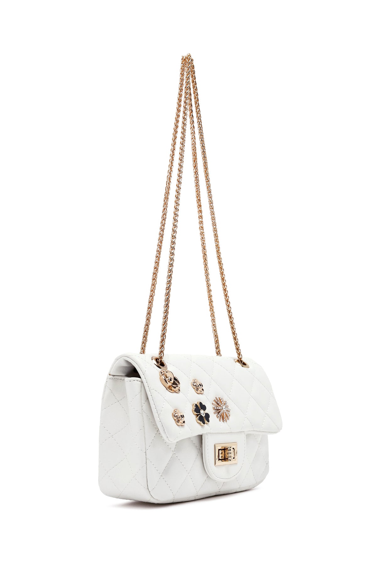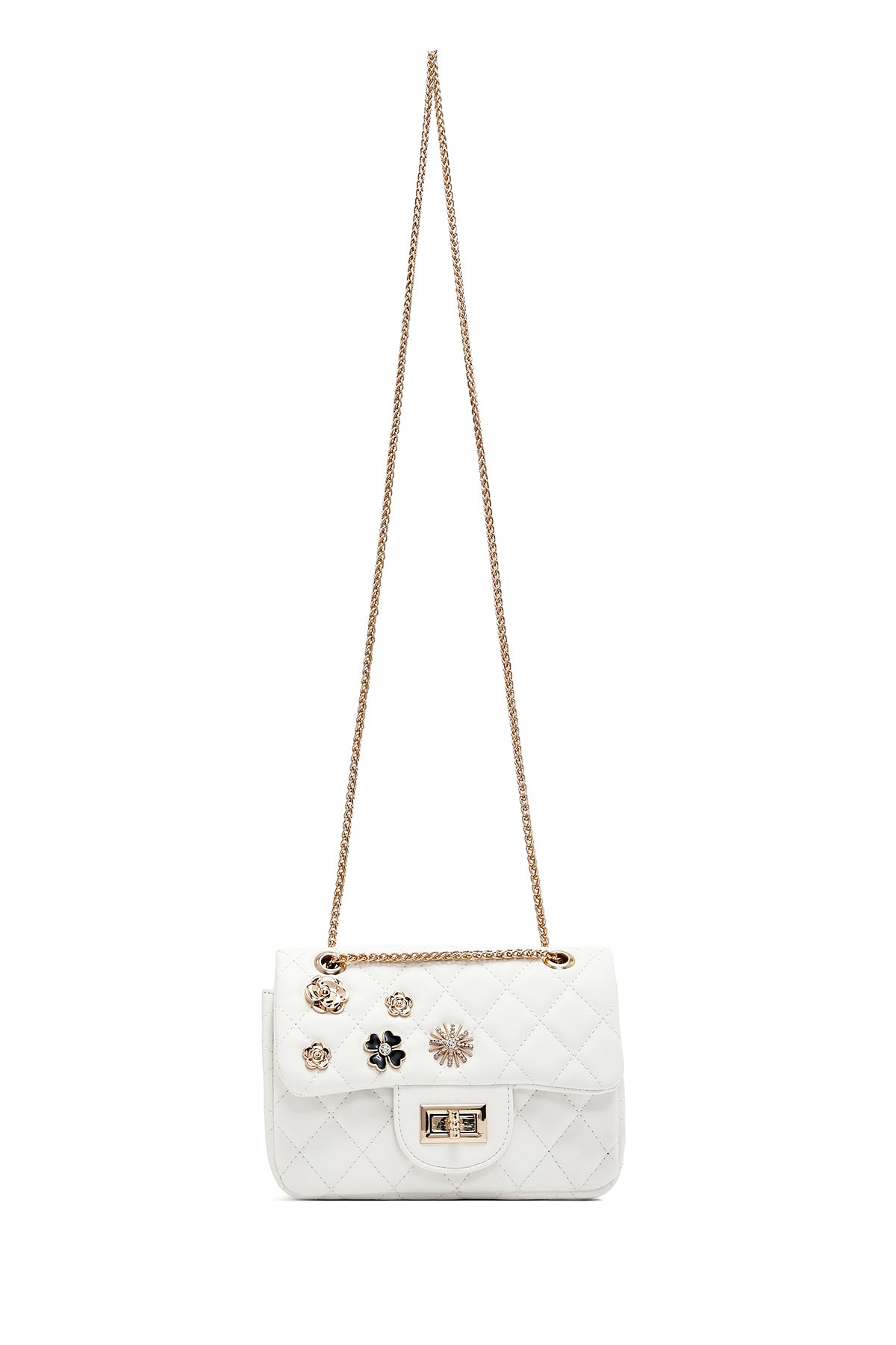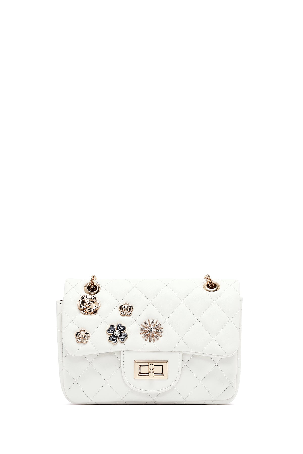 Kadın Beyaz Uzun Askılı Kapitone Omuz Çantası
