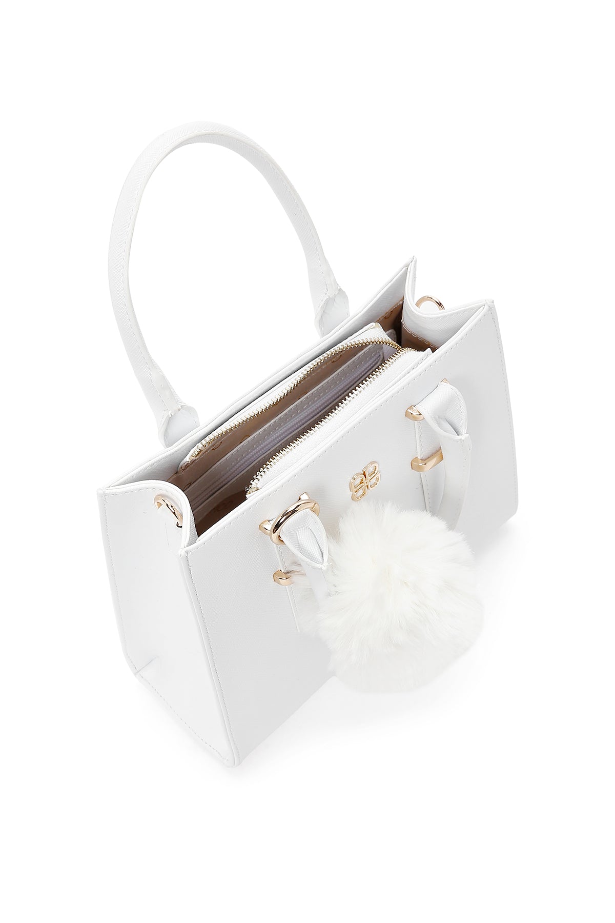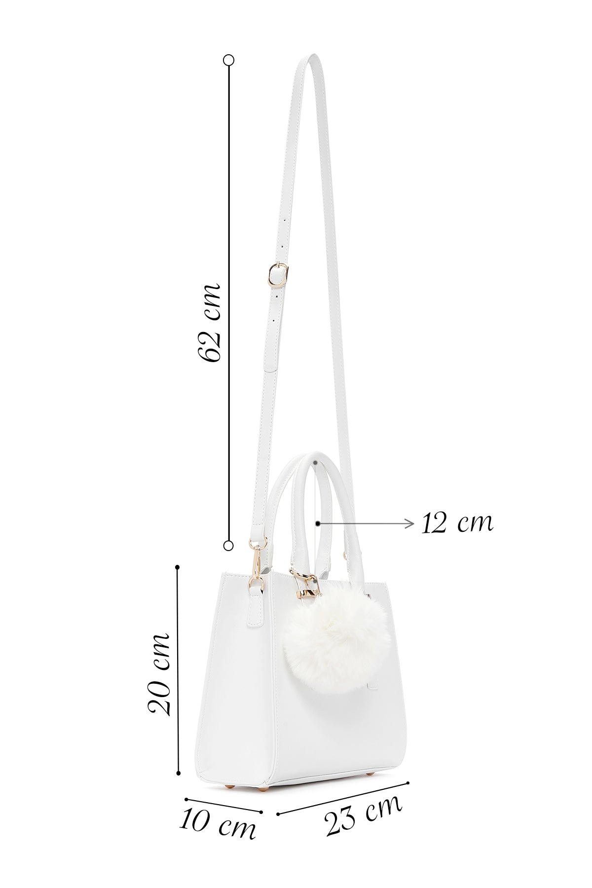 کیف زنانه سفید بلند بنددار با اکسسوری دری مد