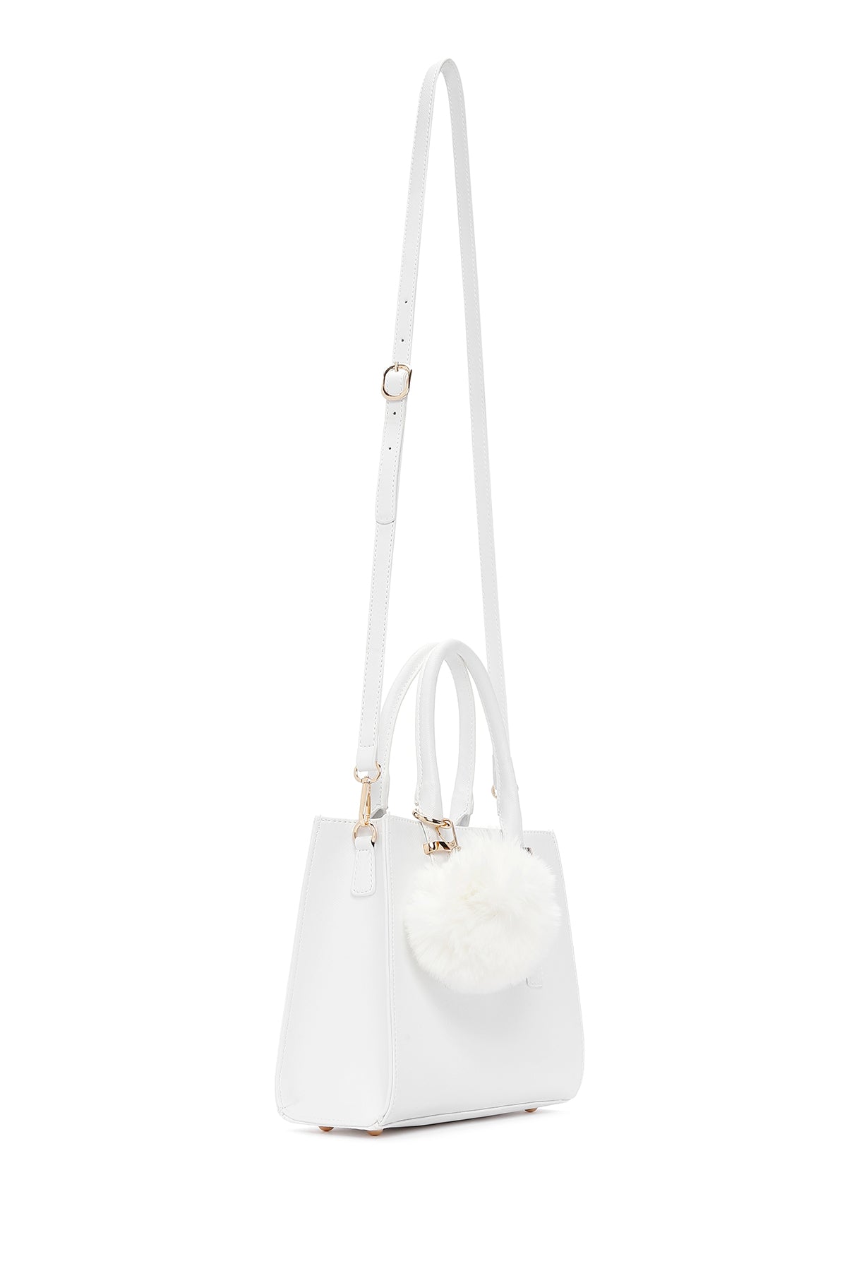 Kadın Beyaz Uzun Askılı Aksesuarlı Kol Çantası