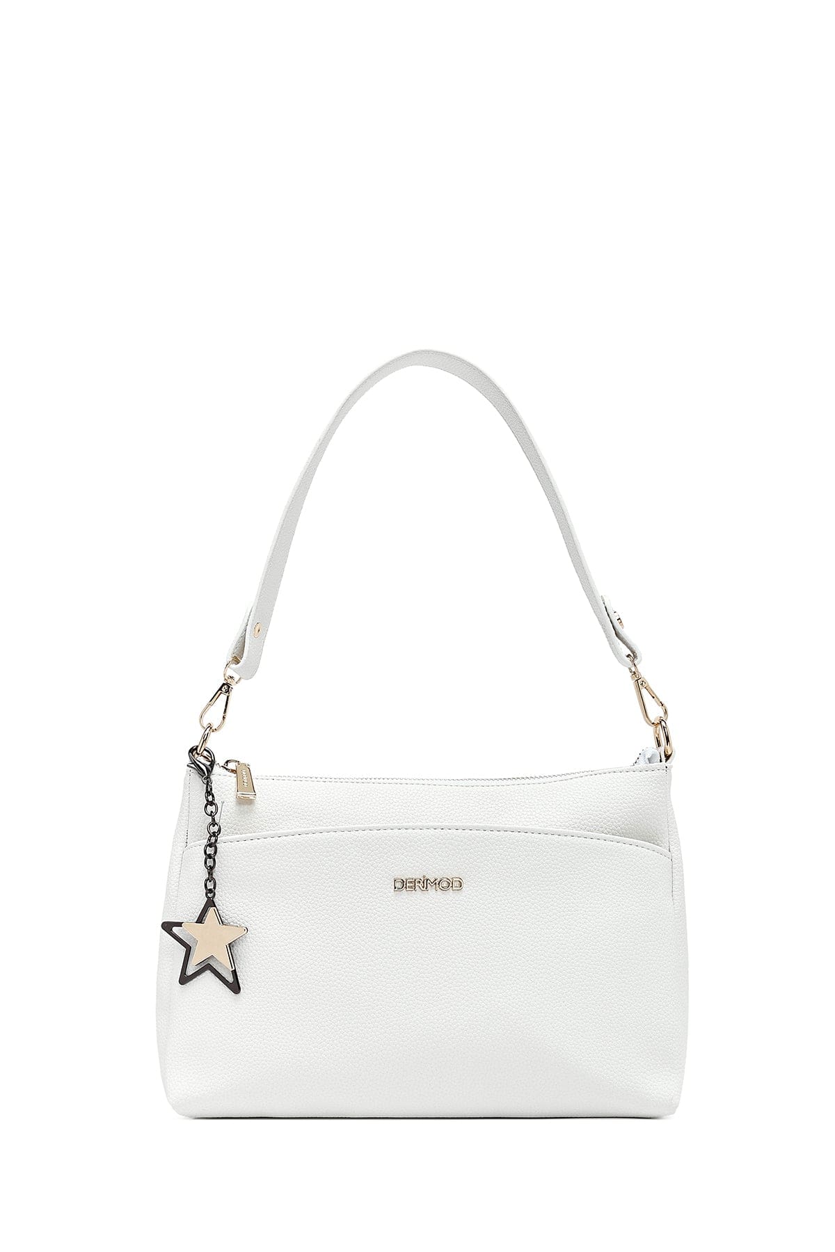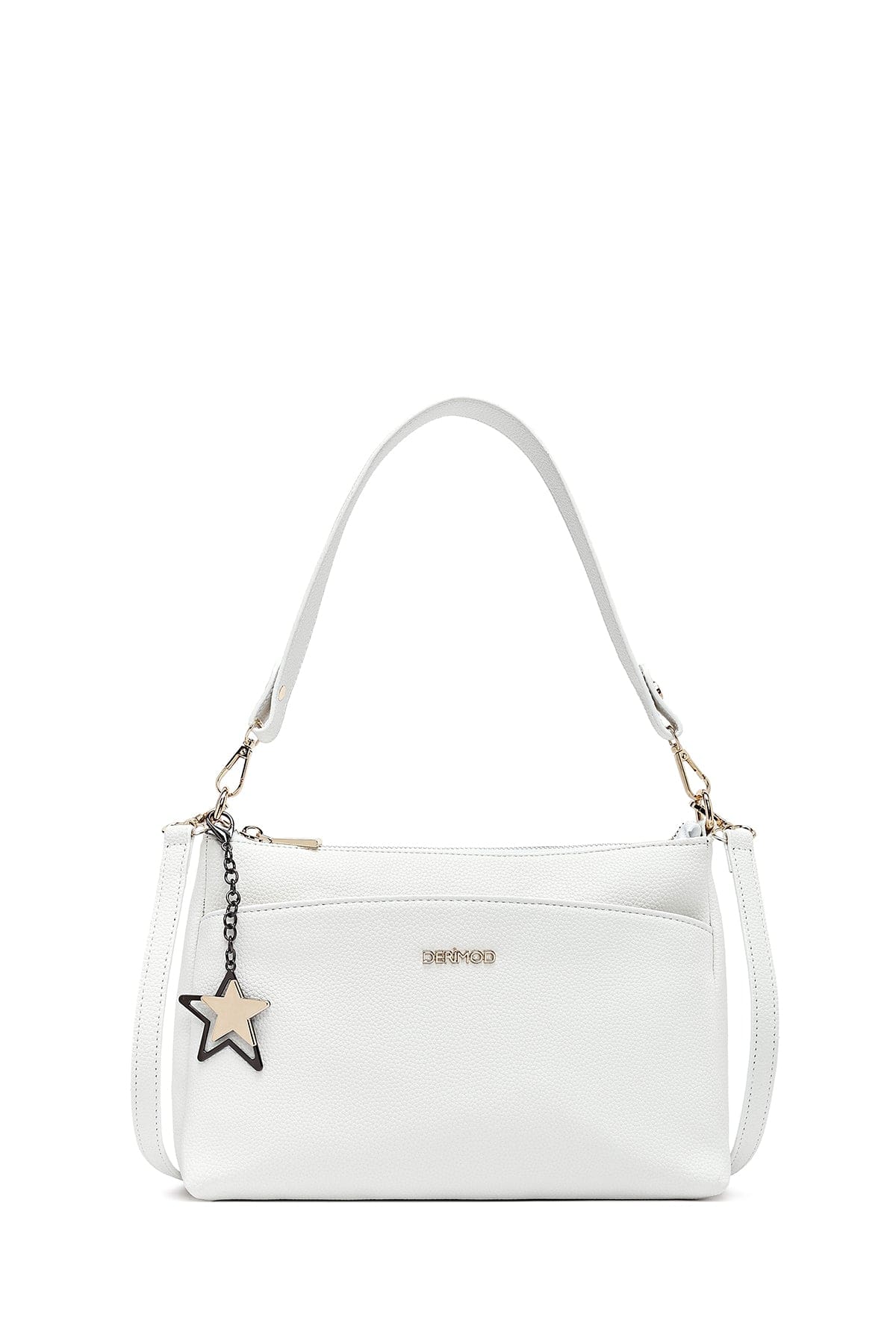 Kadın Beyaz Uzun Askılı Aksesuarlı Kol Çantası
