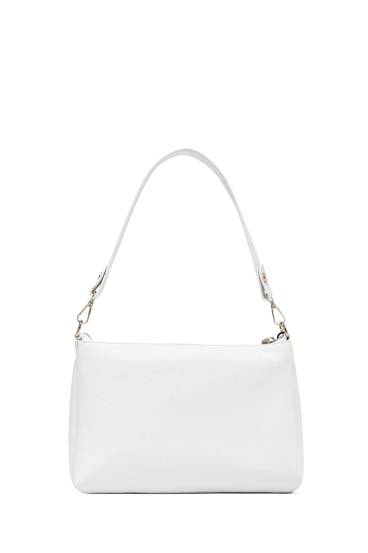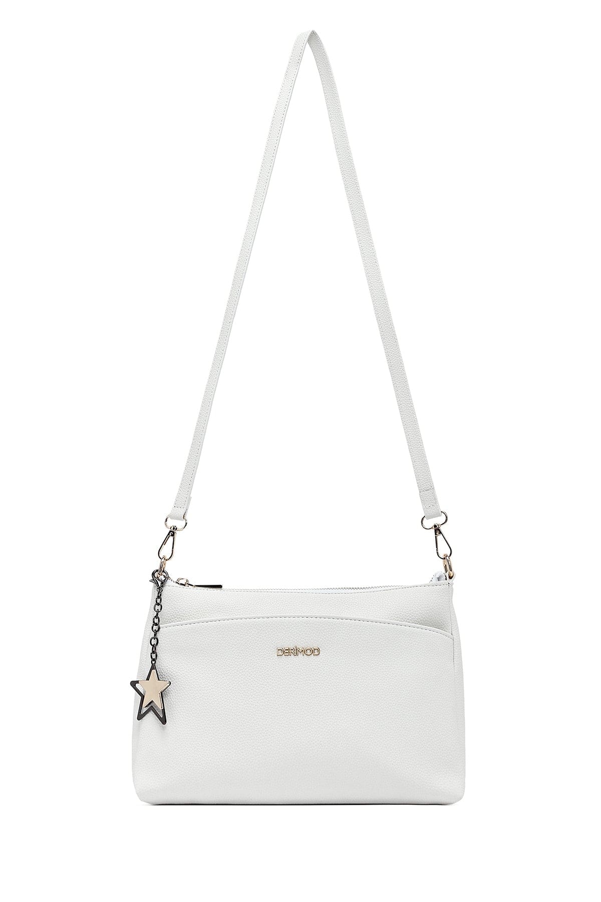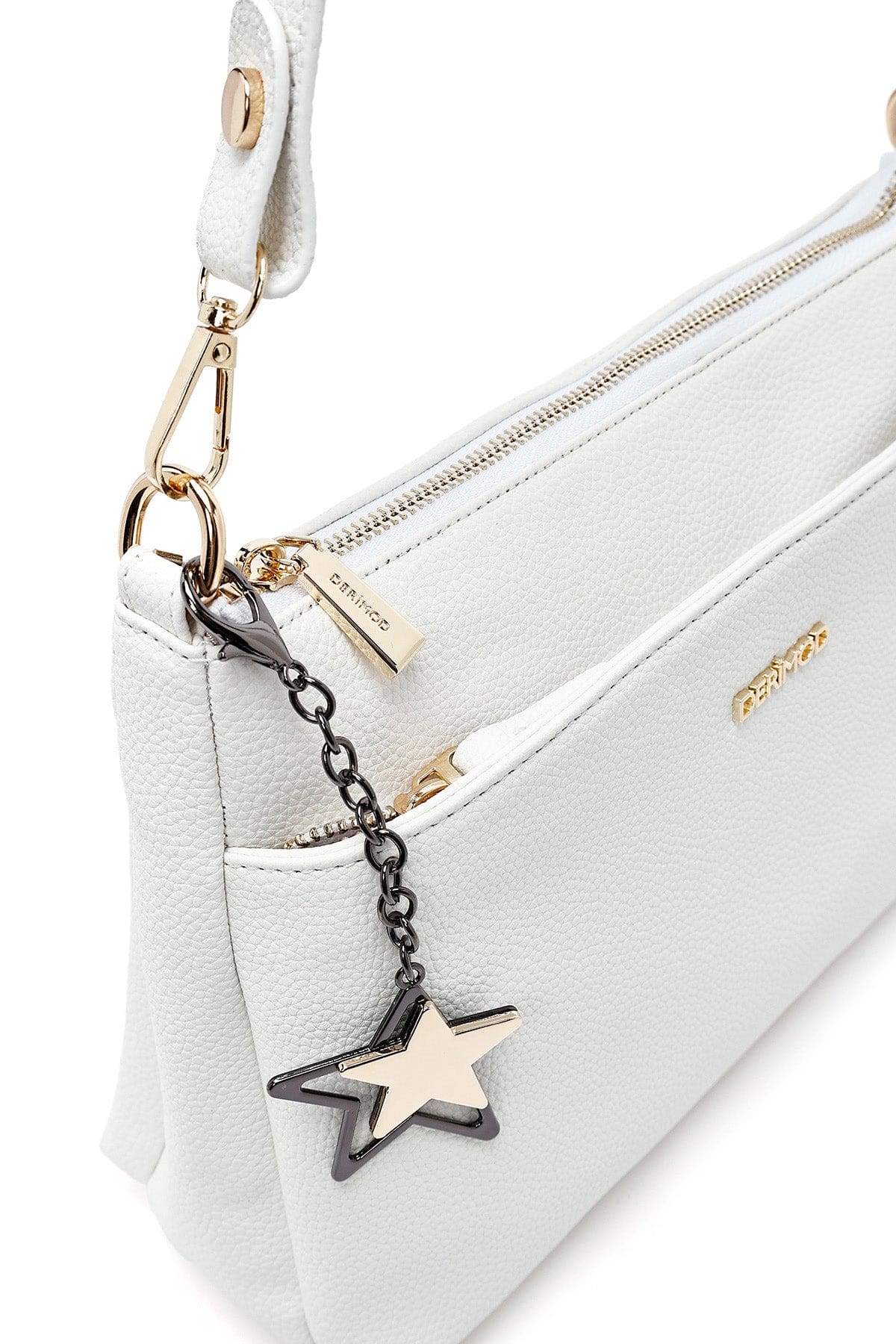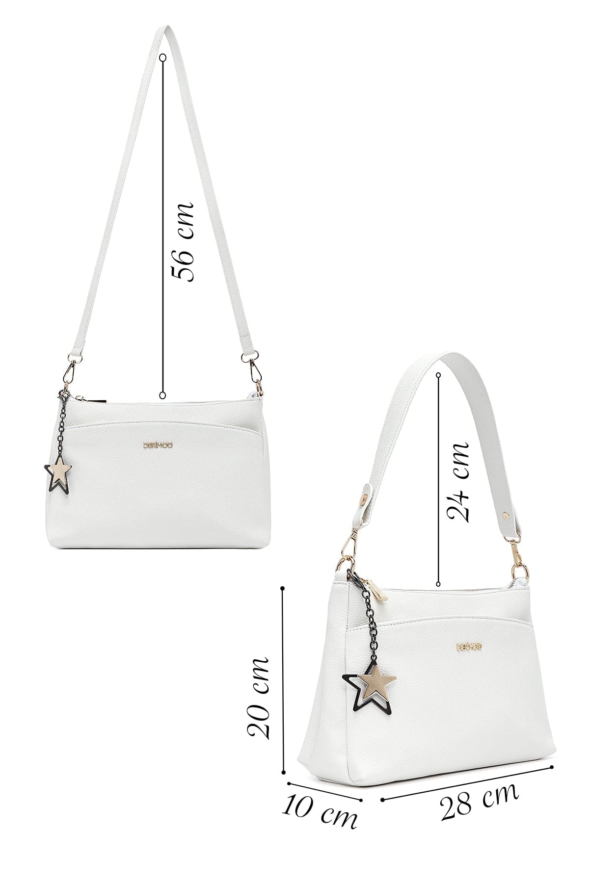 کیف زنانه دستی سفید بند بلند با اکسسوری دری مد