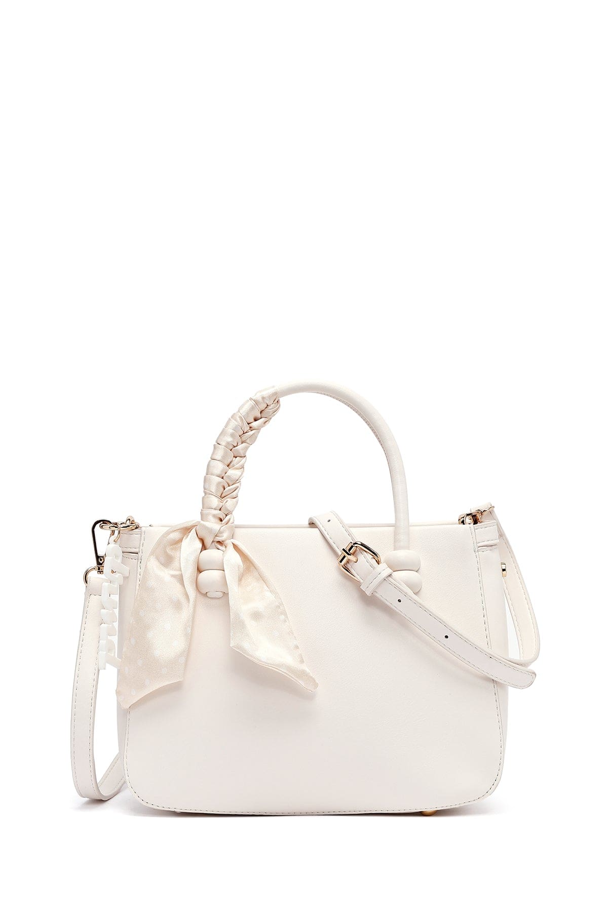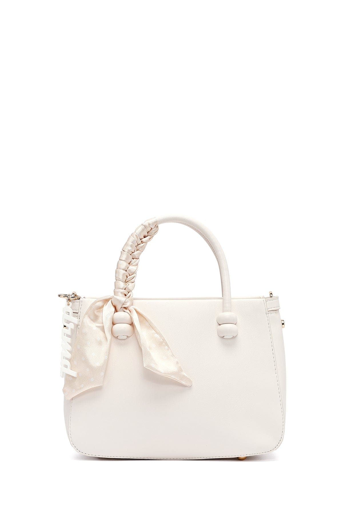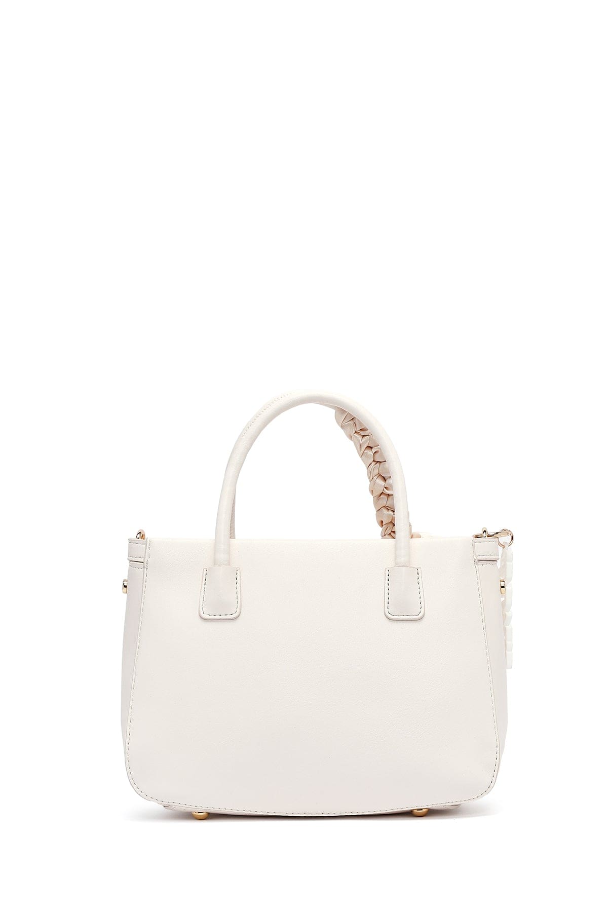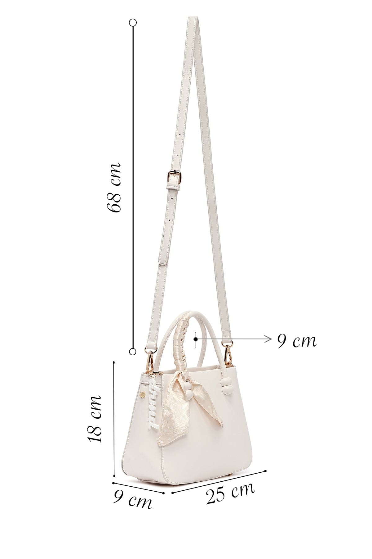 کیف زنانه دستی سفید بند بلند با اکسسوری دری مد