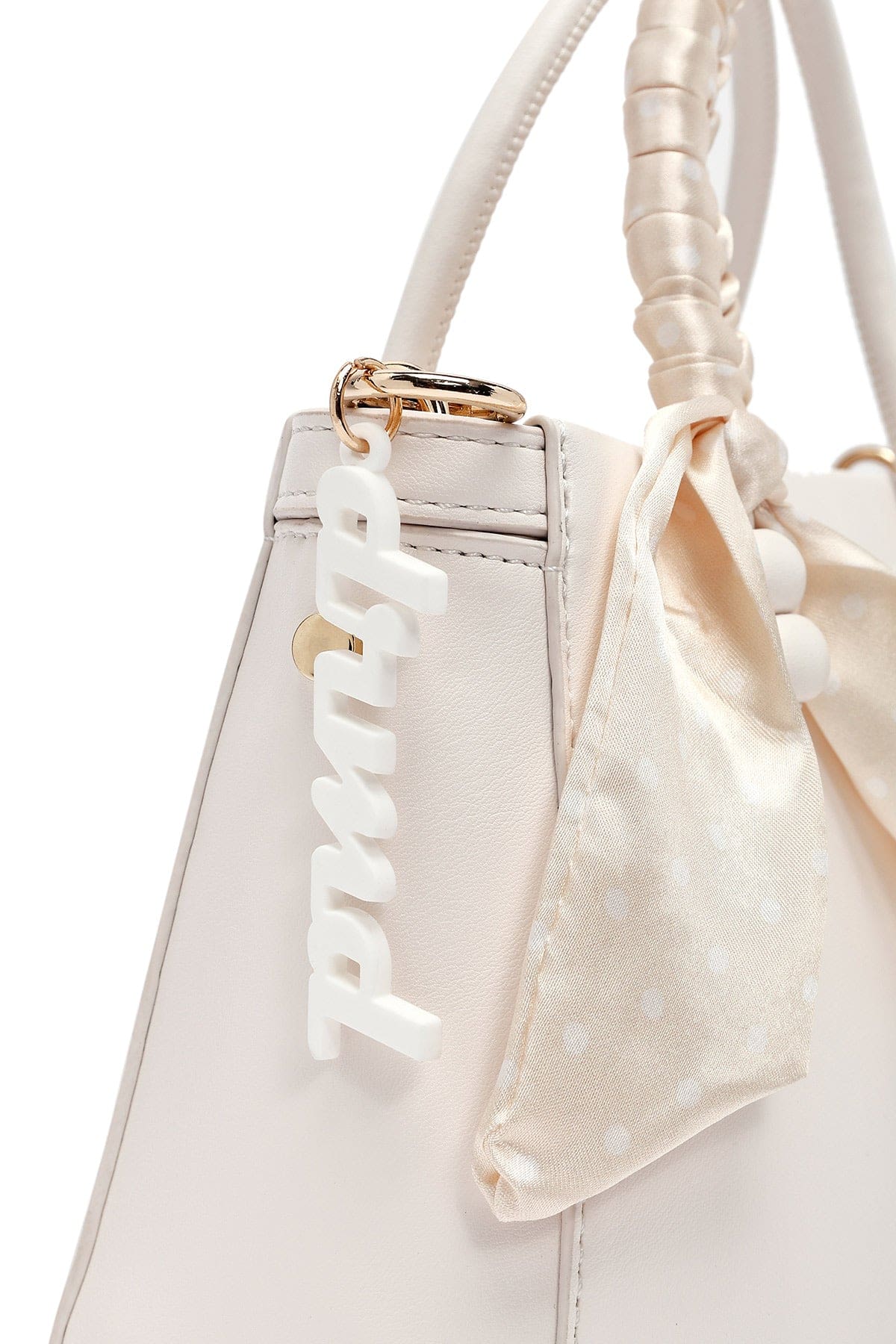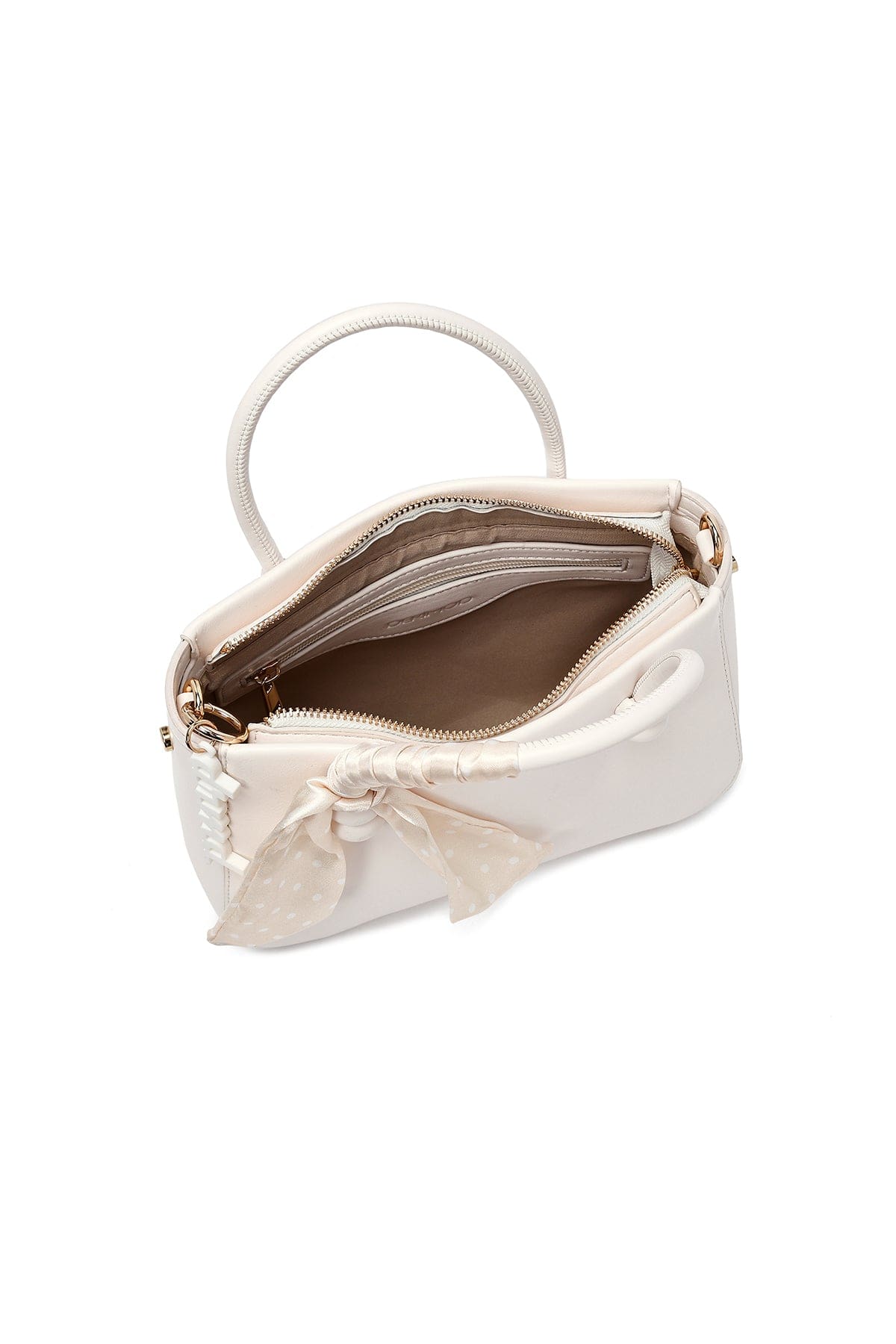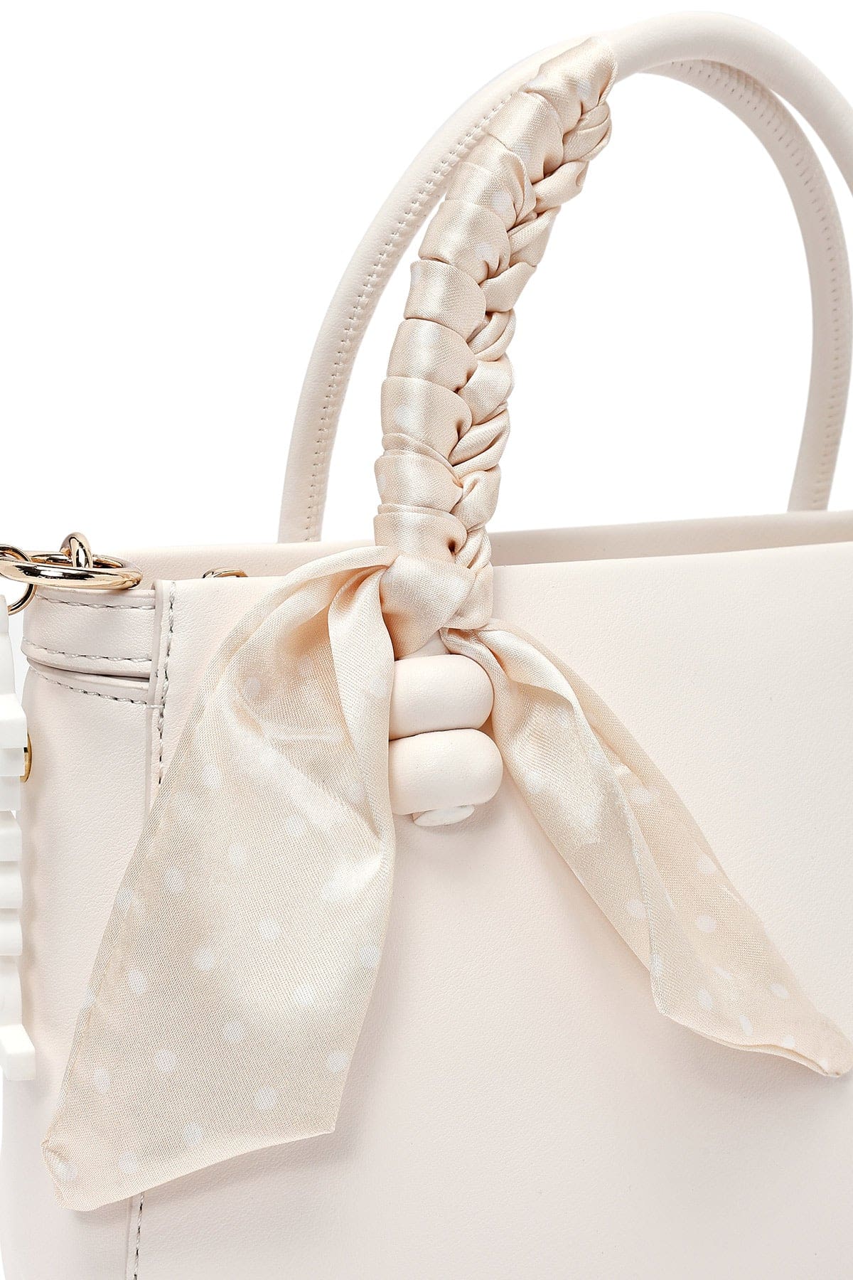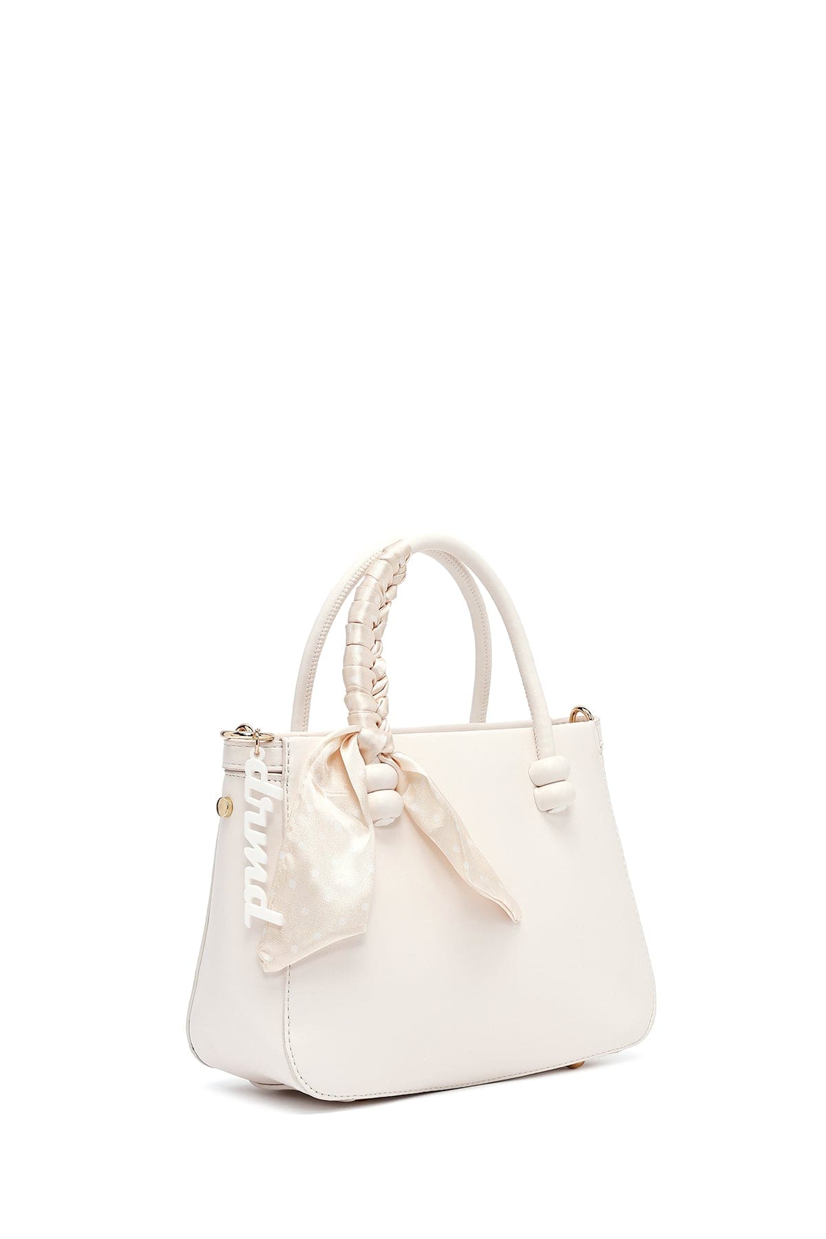 کیف زنانه دستی سفید بند بلند با اکسسوری دری مد
