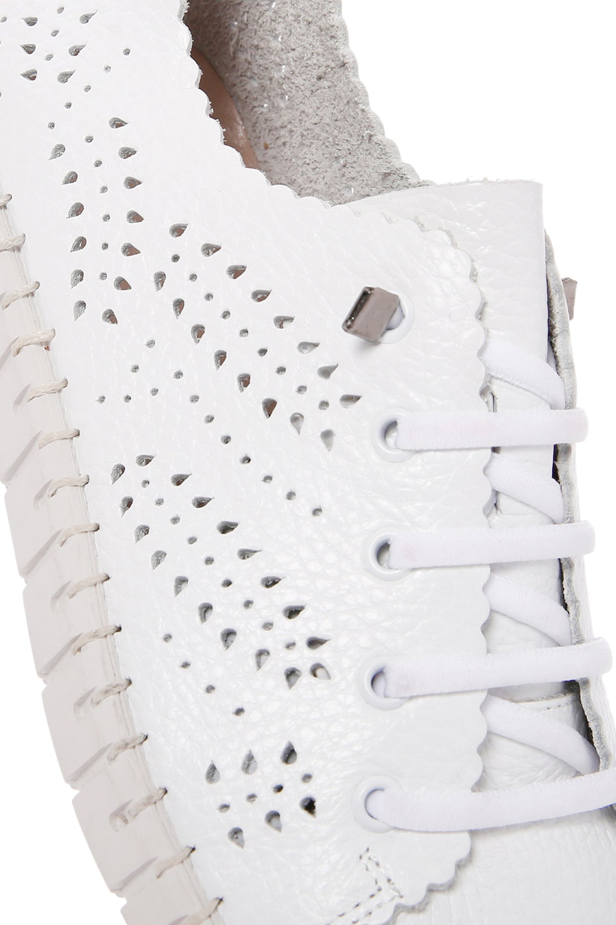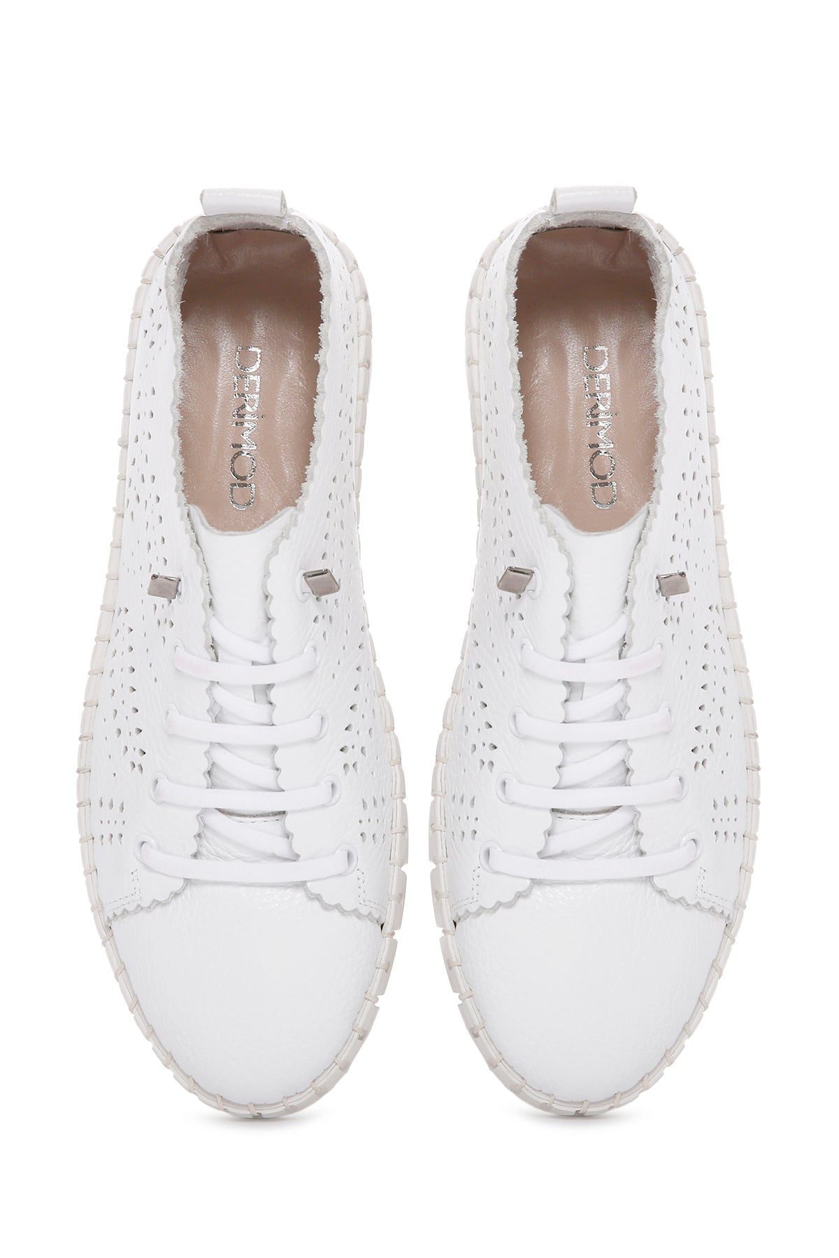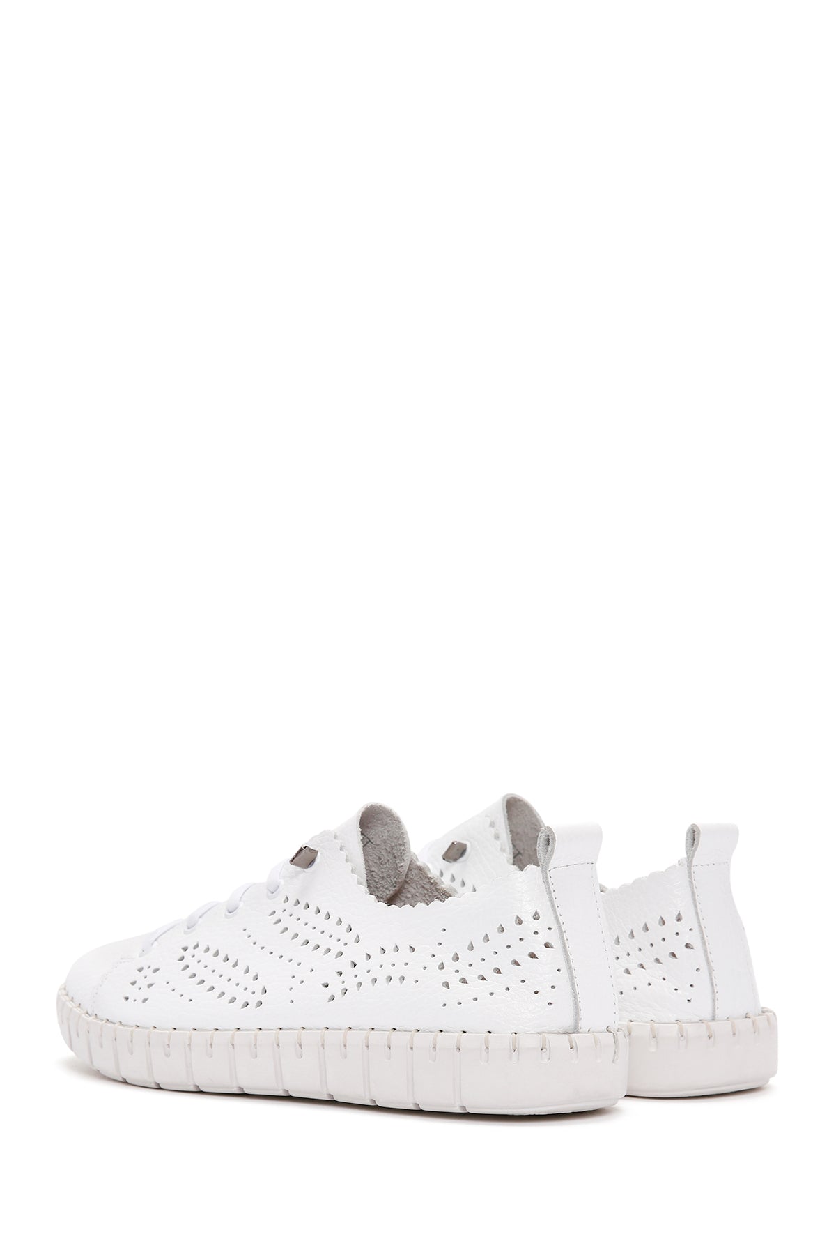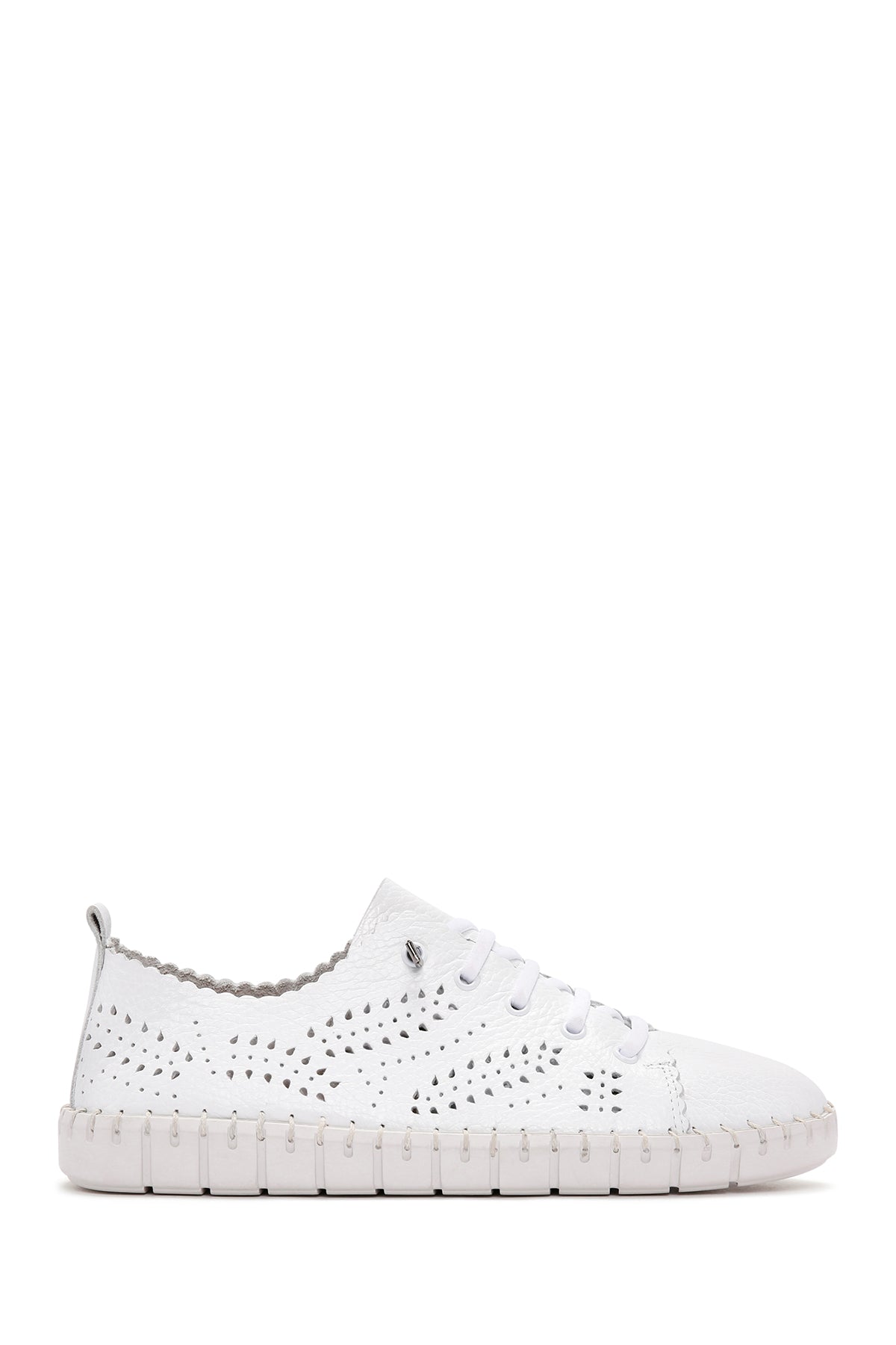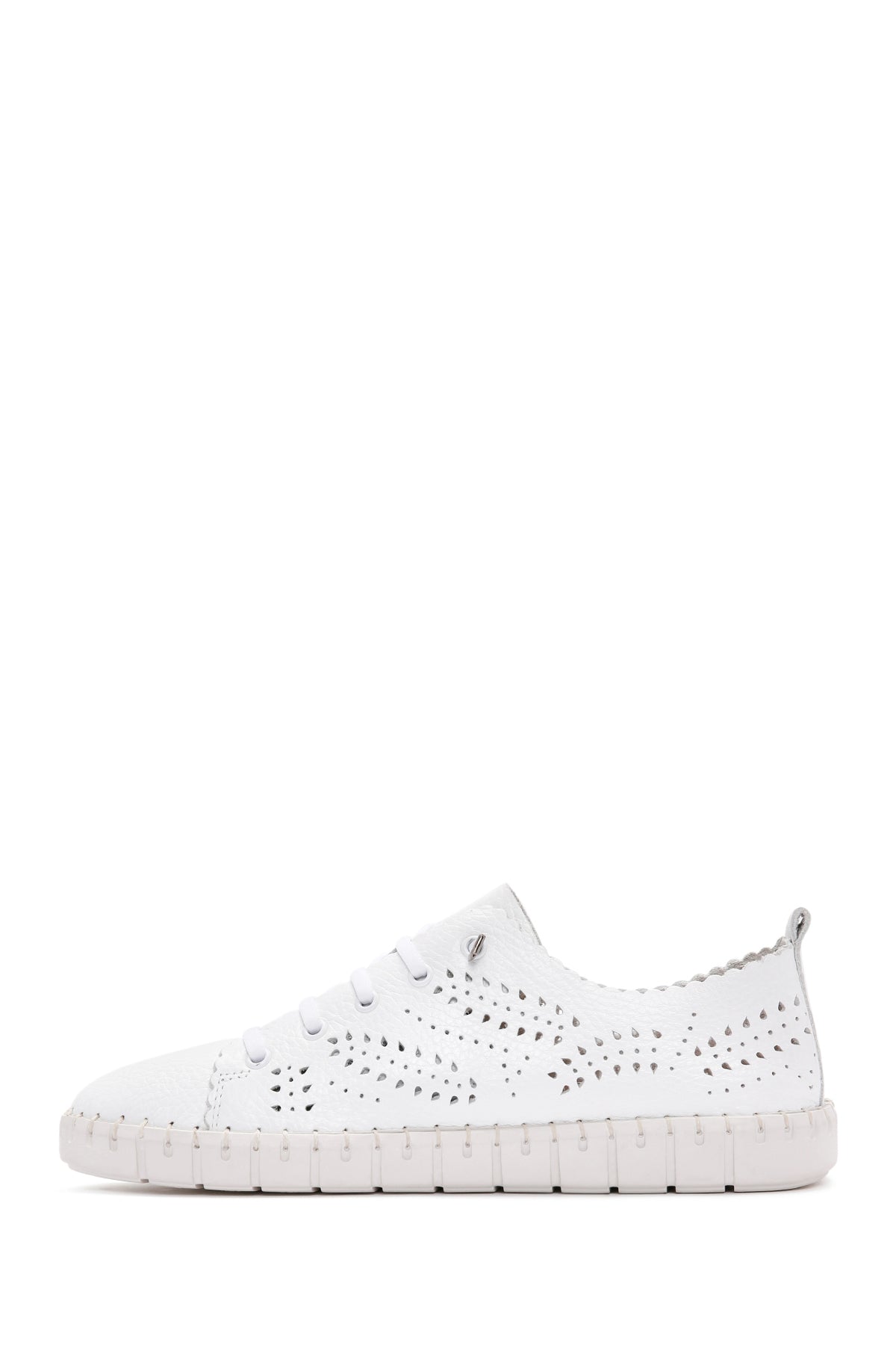 Kadın Beyaz Bağcıklı Desenli Deri Comfort Ayakkabı