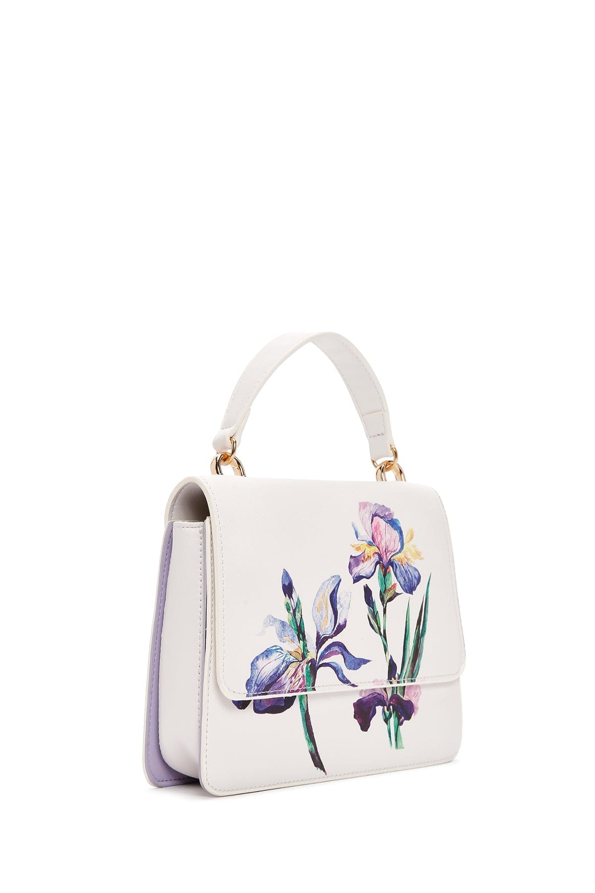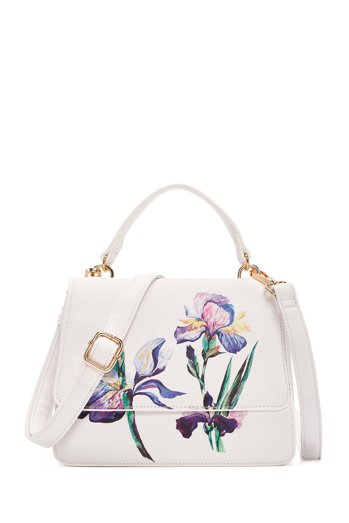 Kadın Beyaz Uzun Askılı Desenli Kol Çantası