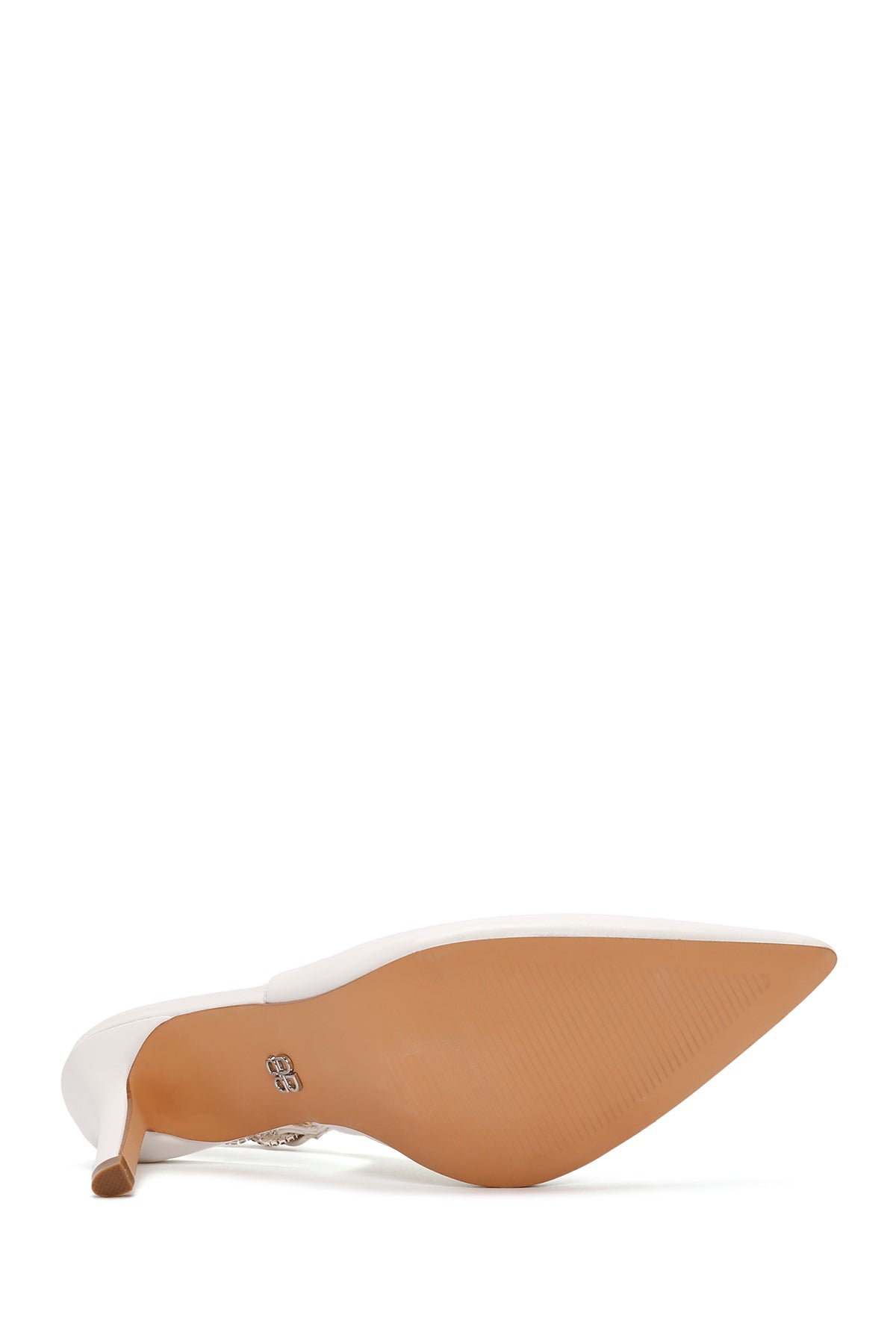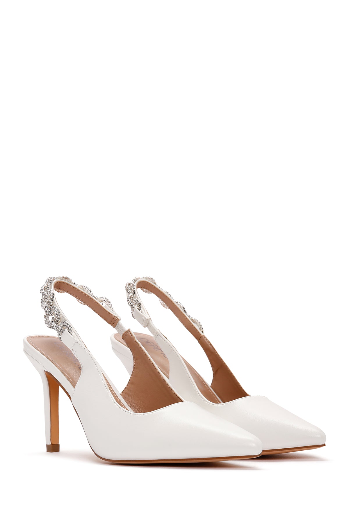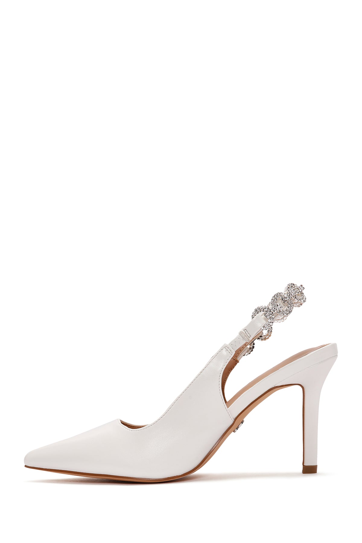 Kadın Beyaz Arkası Açık Taşlı İnce Topuklu Ayakkabı