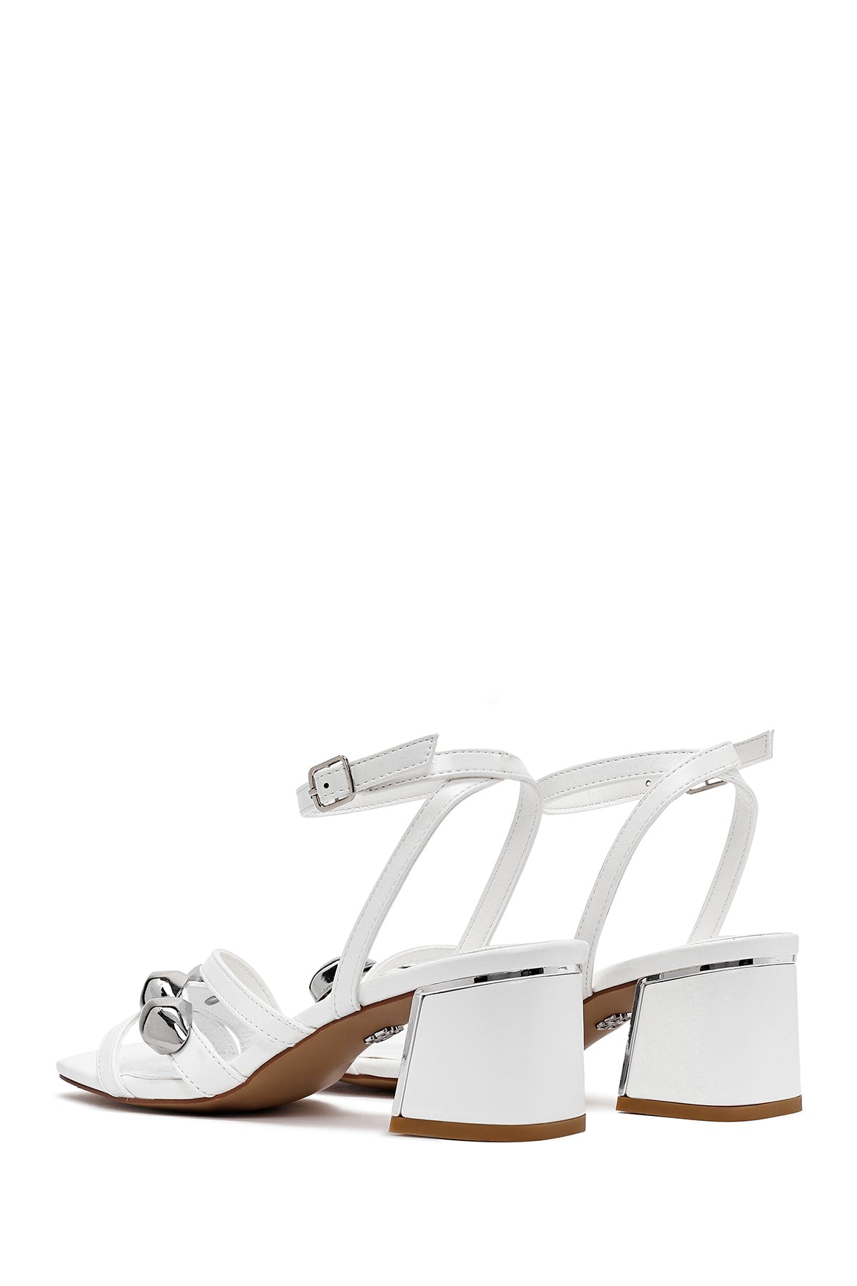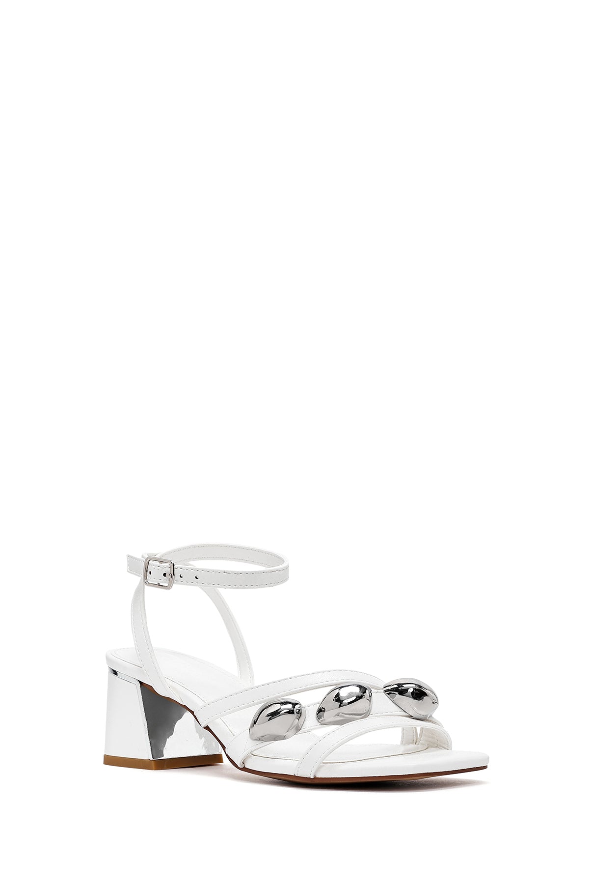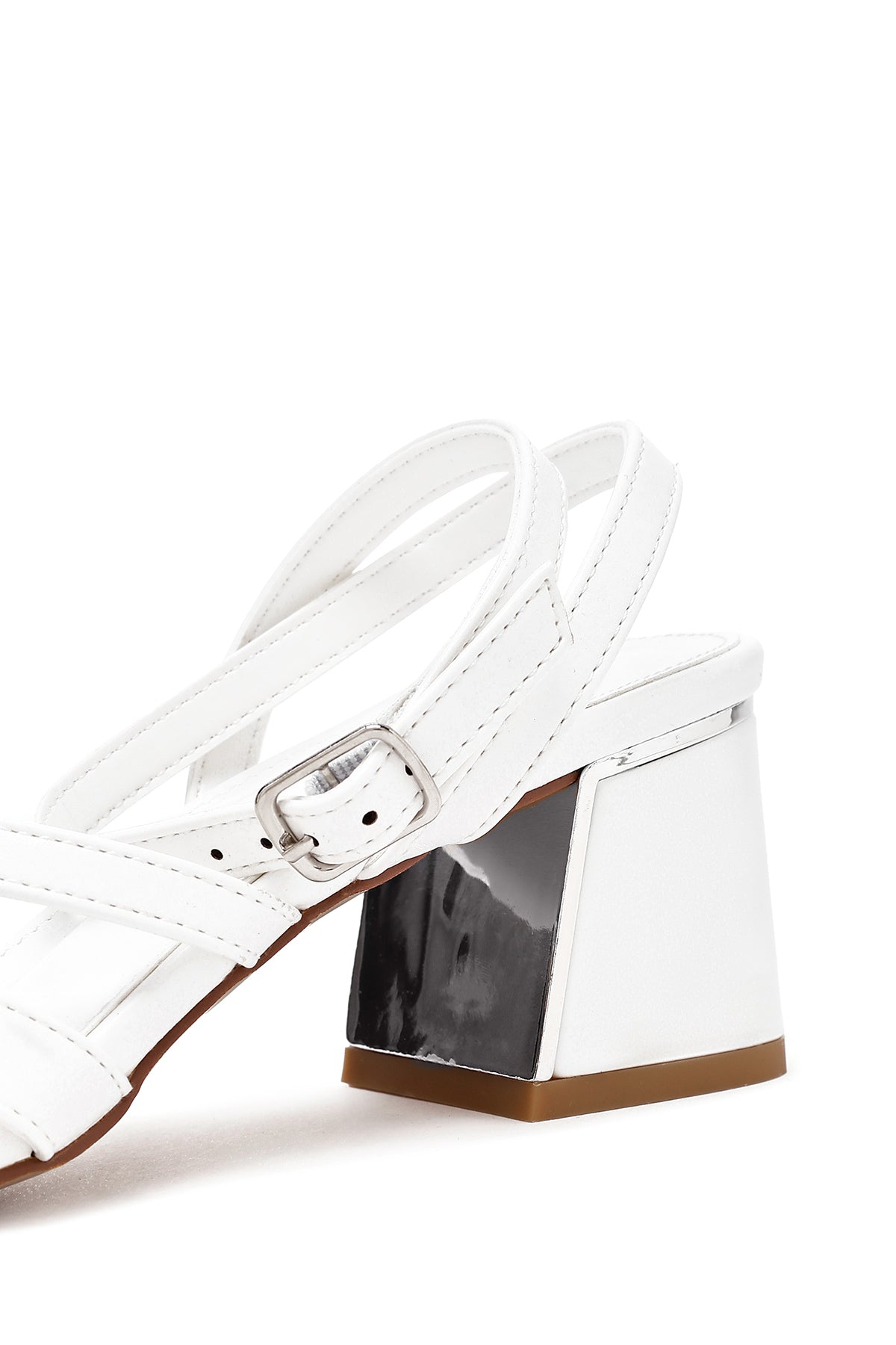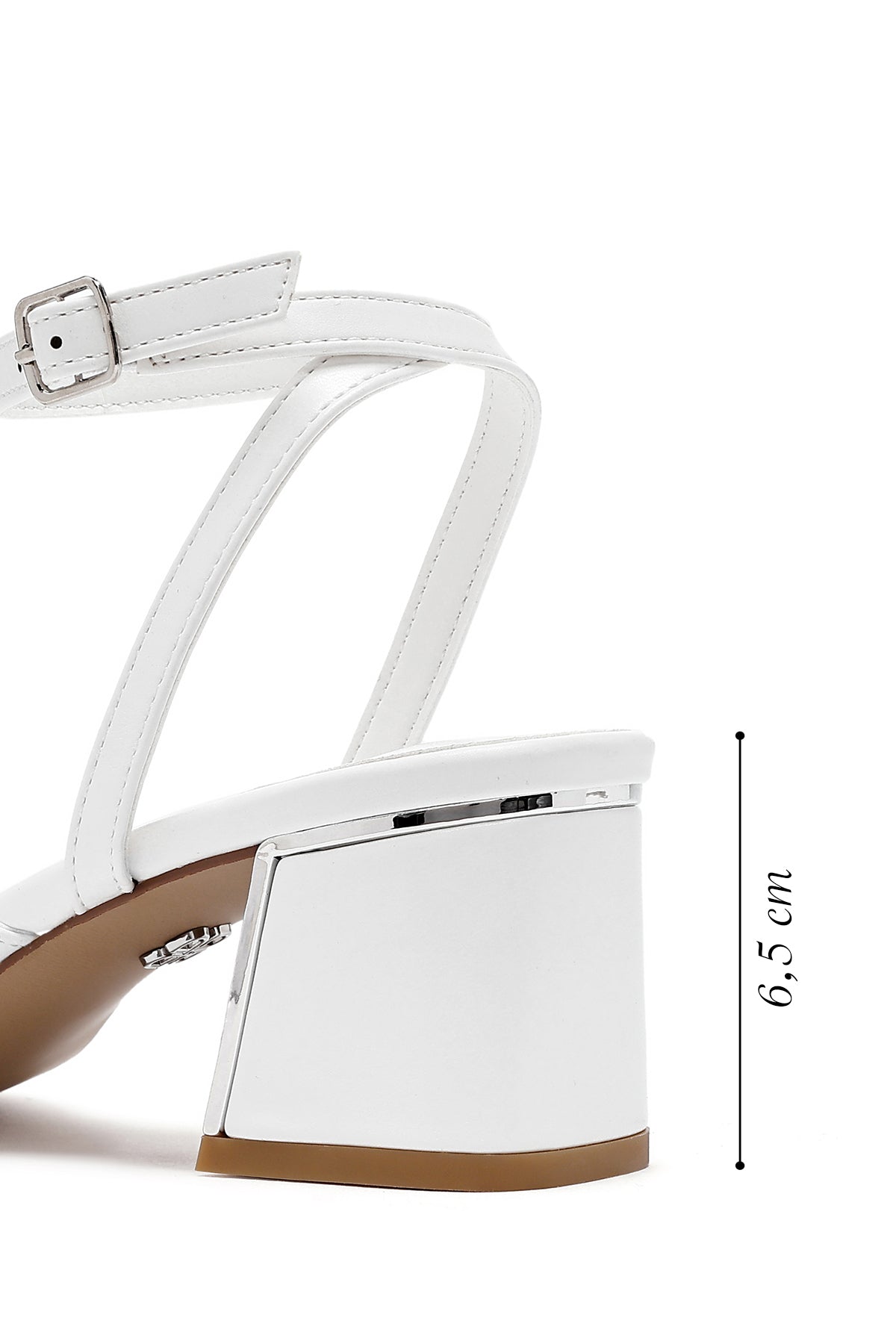 Kadın Beyaz Bilekten Tokalı Kısa Kalın Topuklu Sandalet