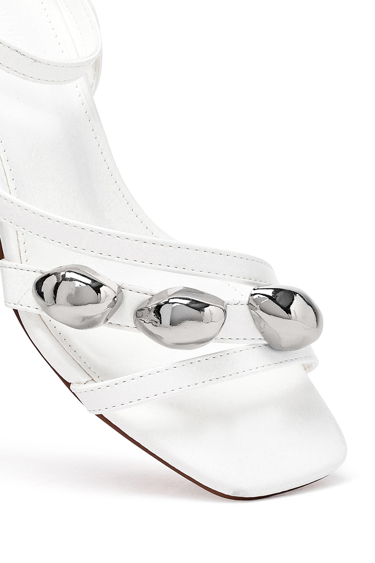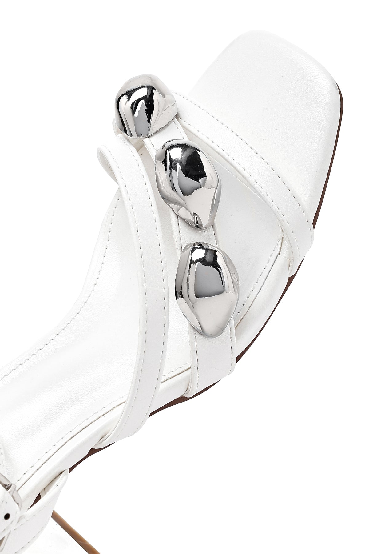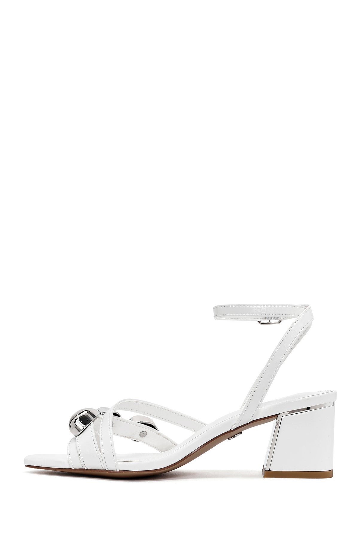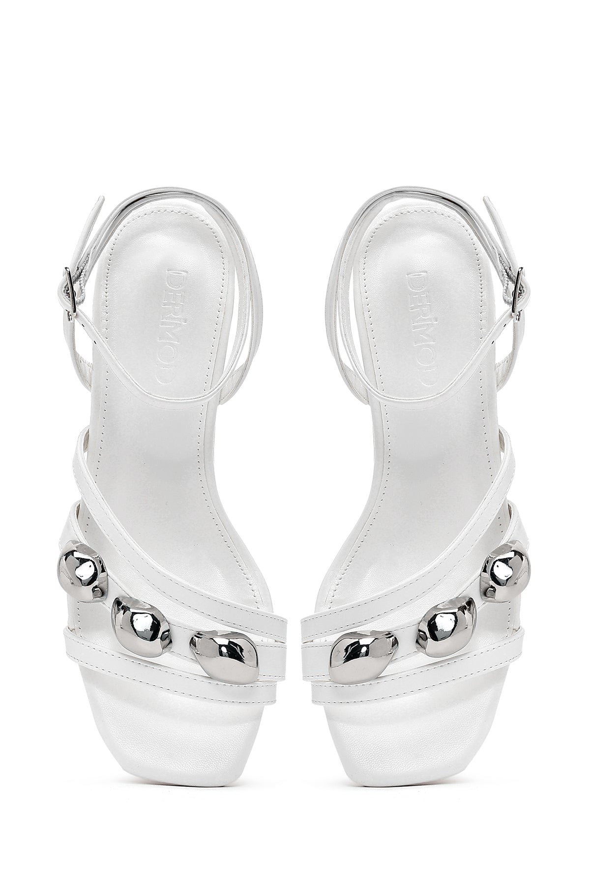 Kadın Beyaz Bilekten Tokalı Kısa Kalın Topuklu Sandalet