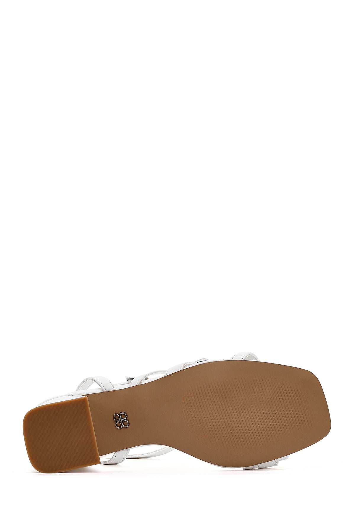 صندل زنانه سفید بنددار پاشنهضخیم کوتاه دری مد