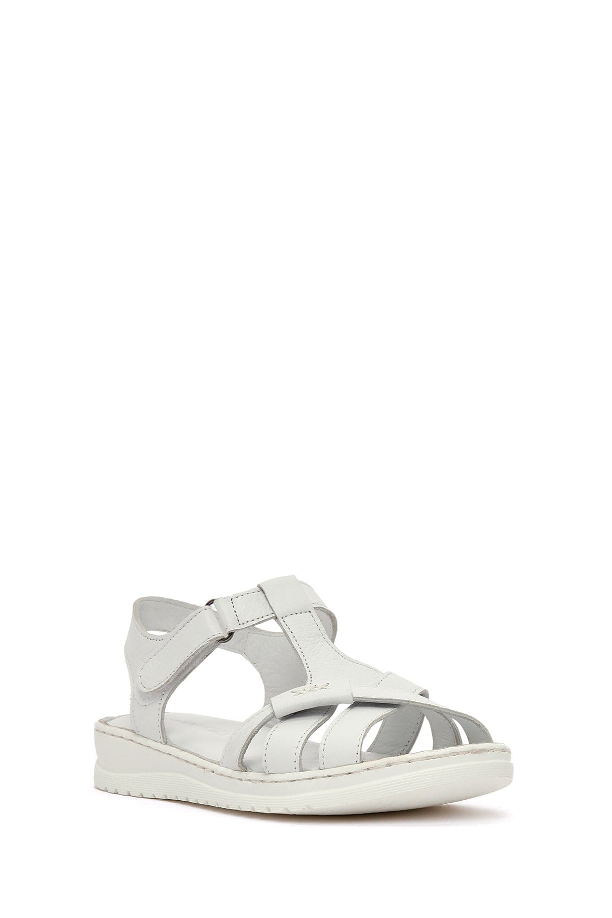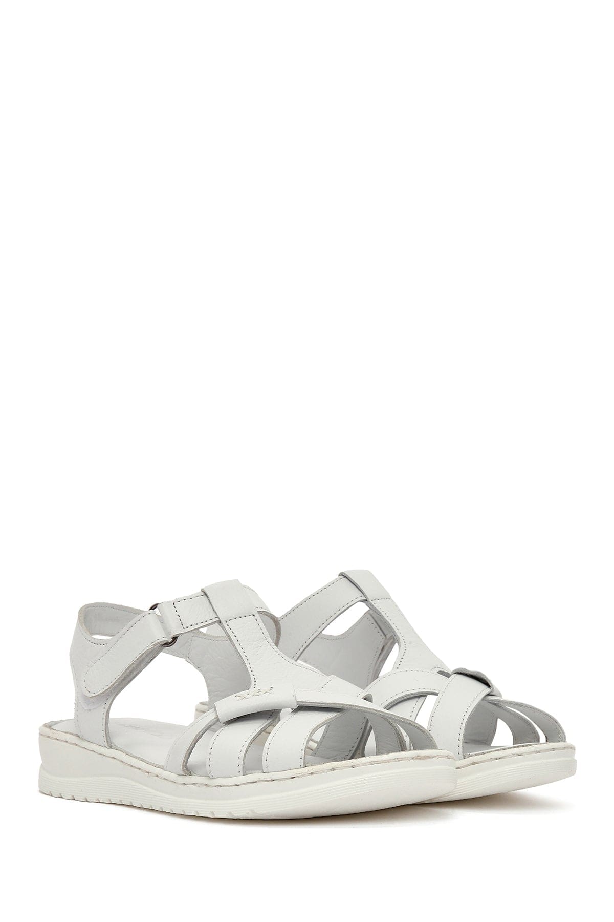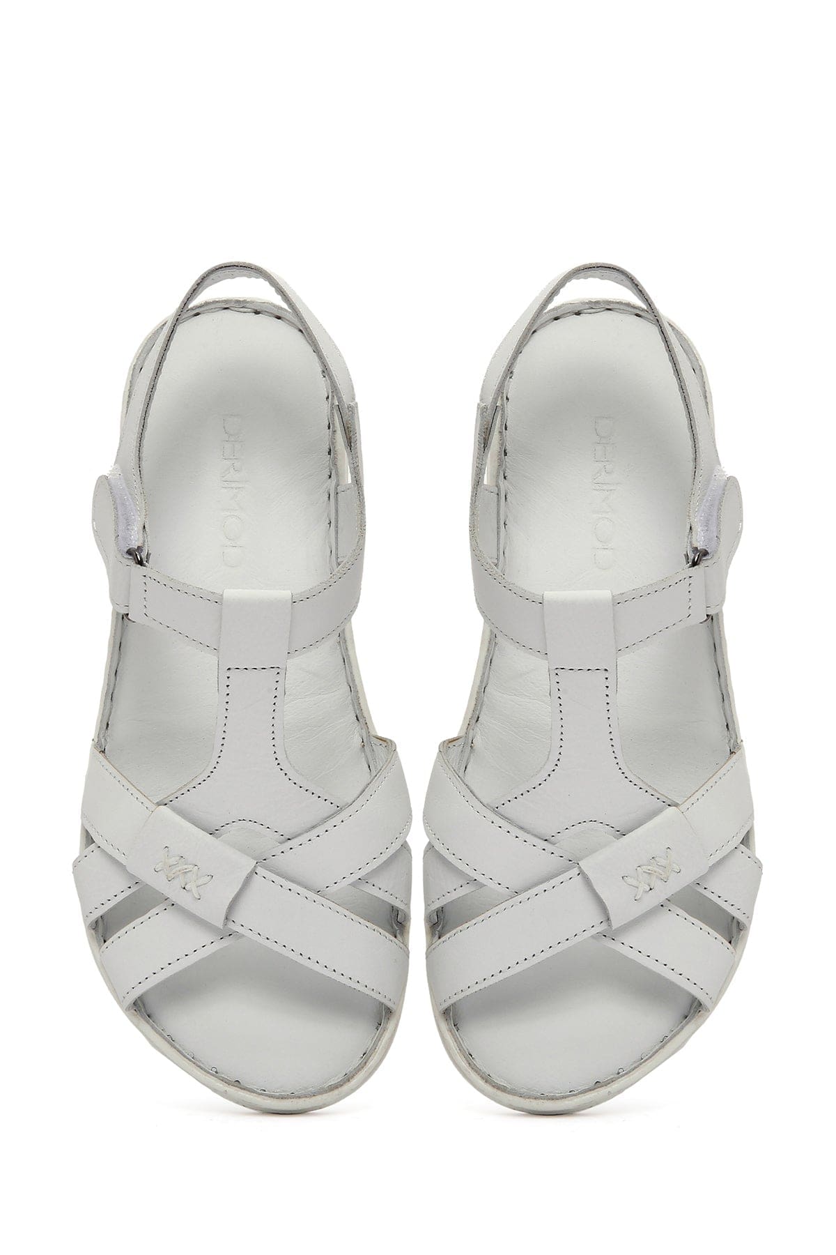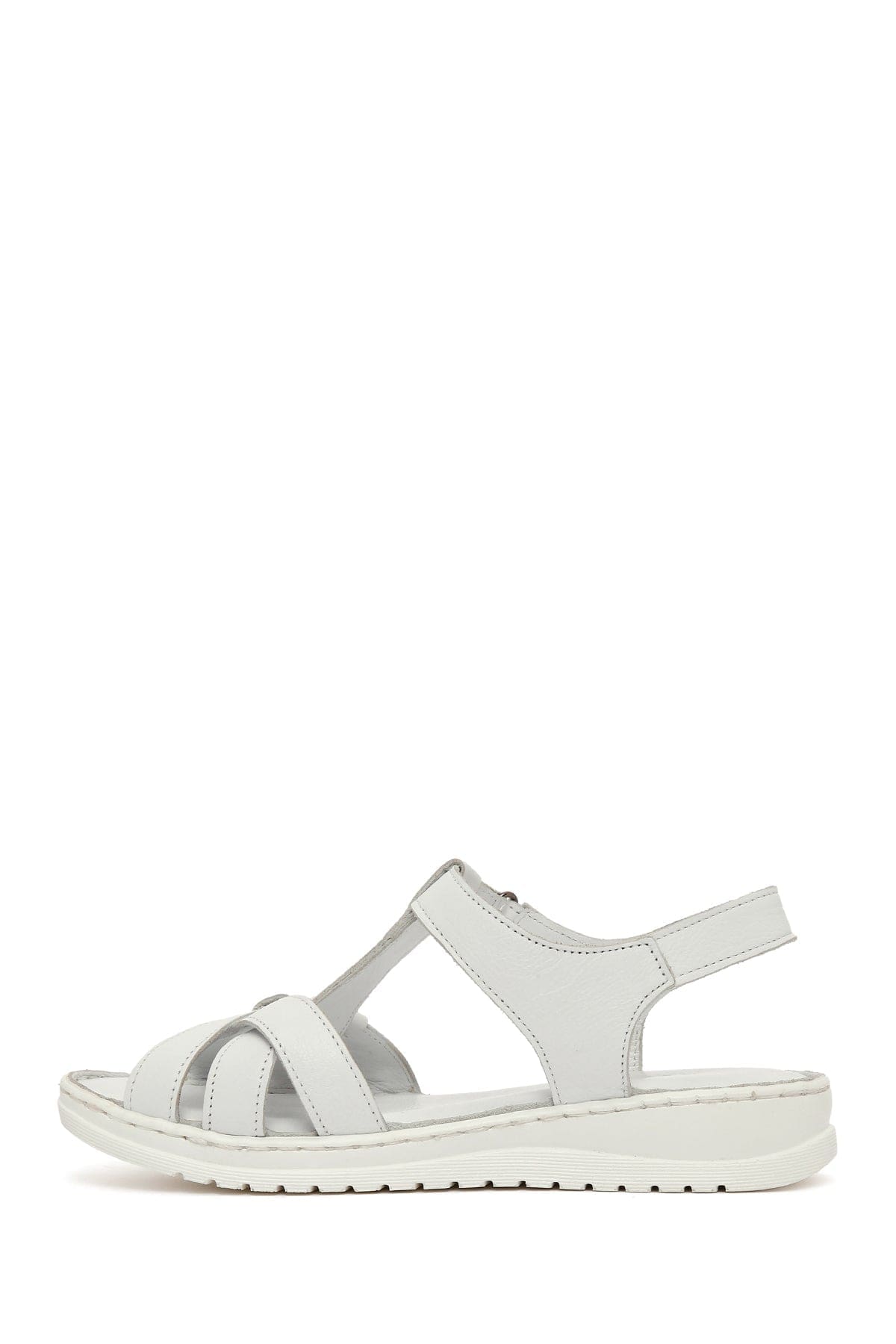 Kadın Beyaz Bantlı Deri Comfort Sandalet