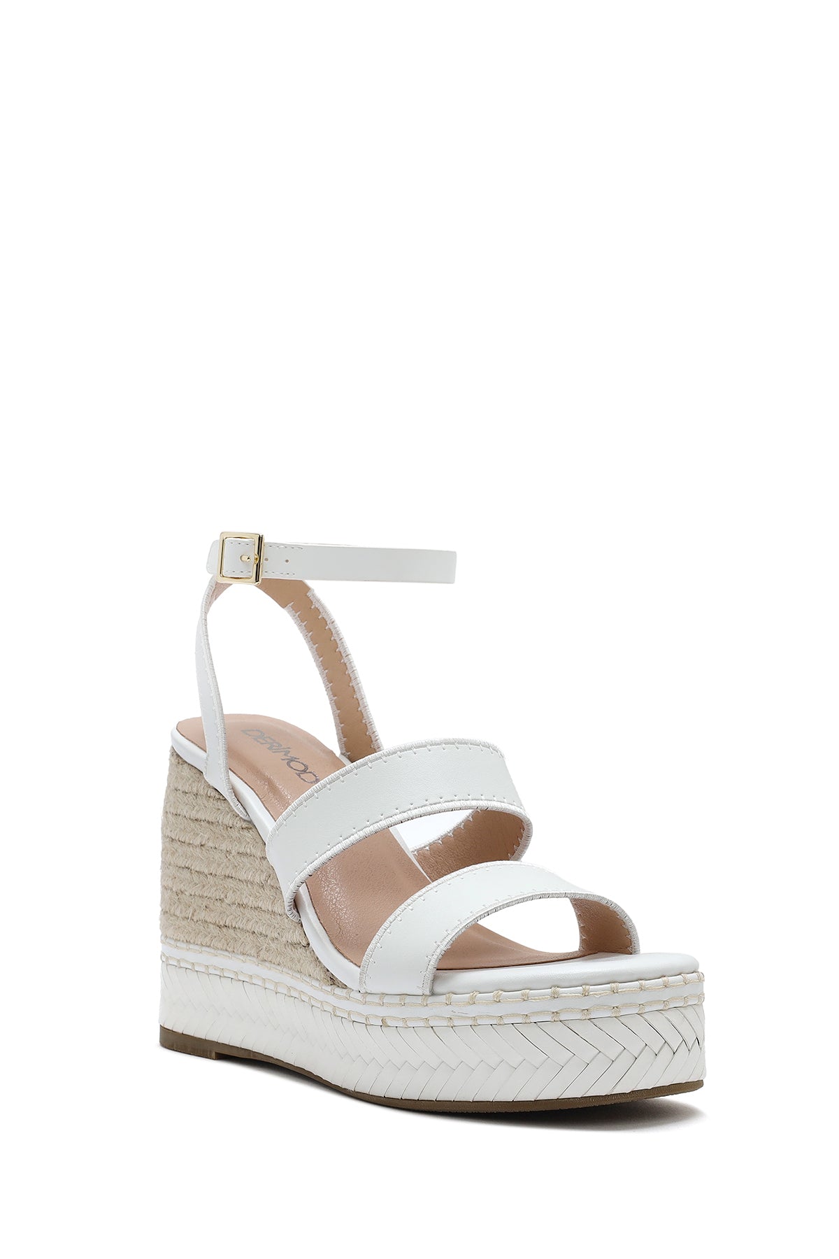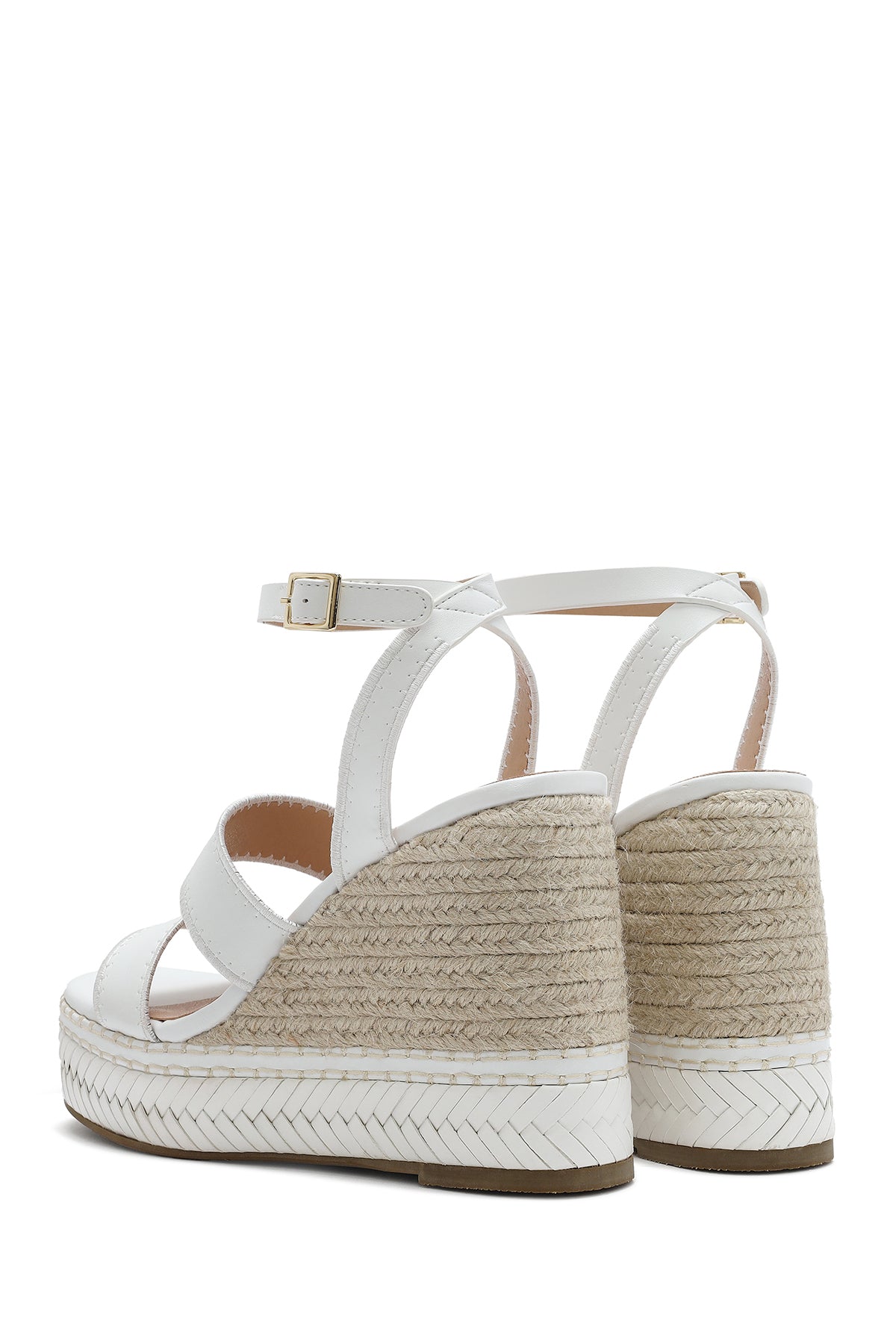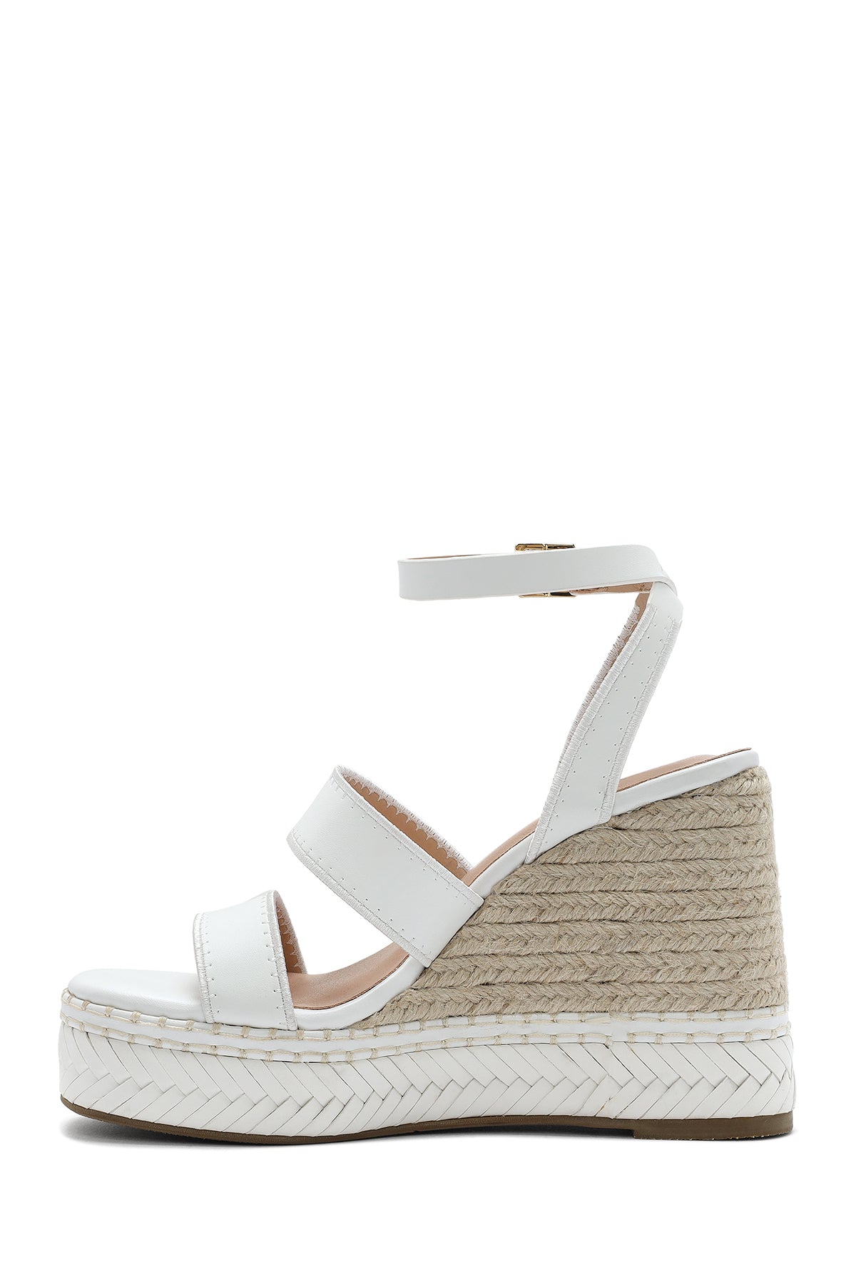 Kadın Beyaz Bilekten Tokalı Dolgu Topuklu Espadril Sandalet