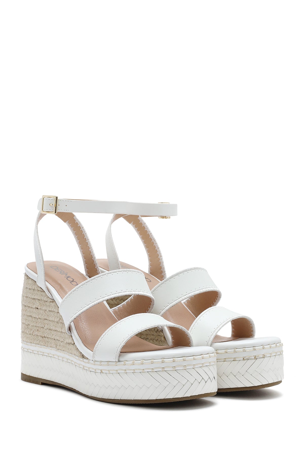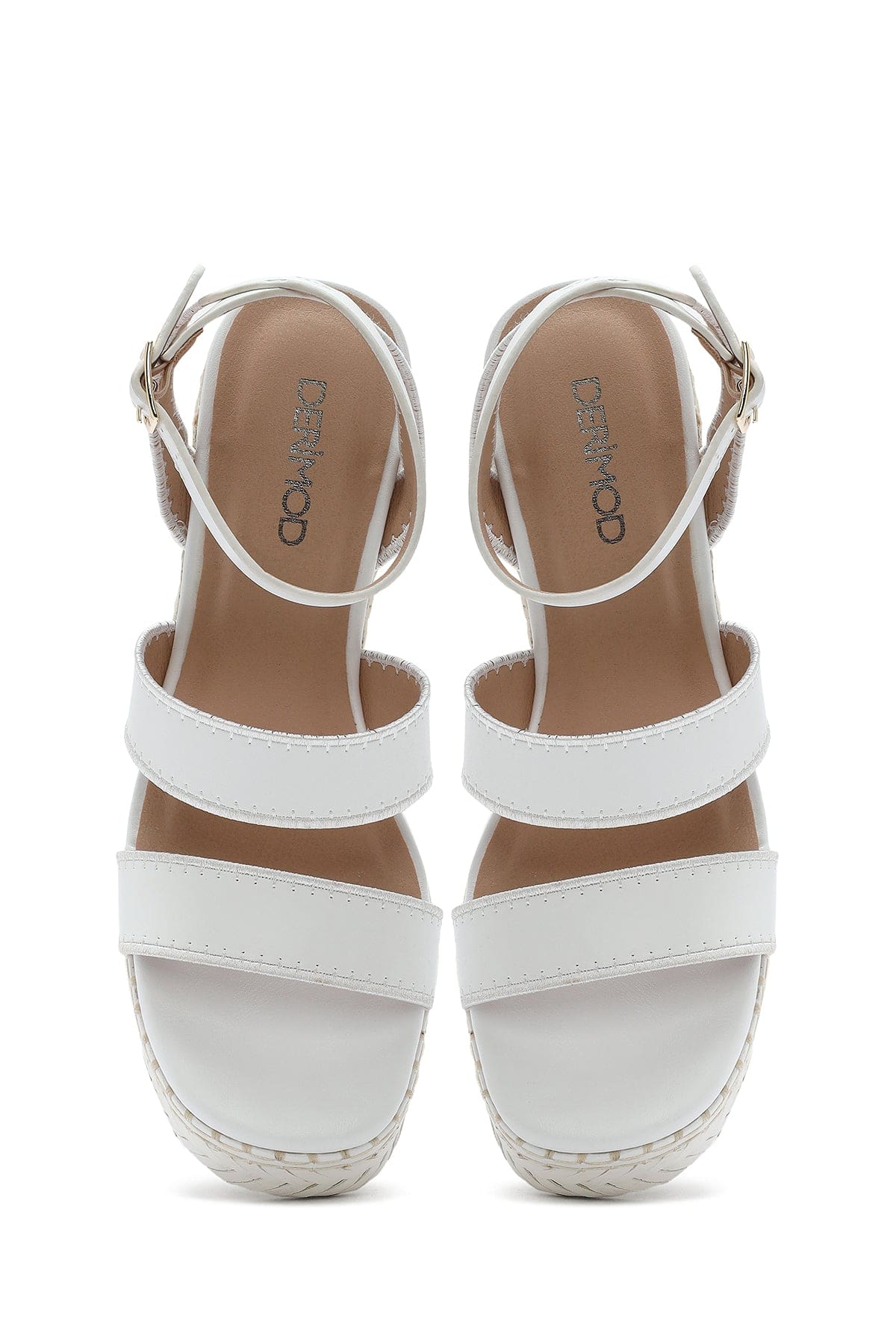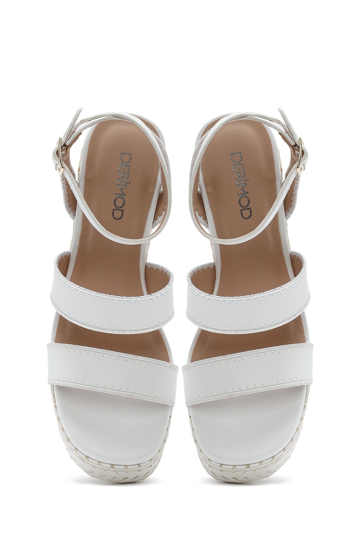 Kadın Beyaz Bilekten Tokalı Dolgu Topuklu Espadril Sandalet