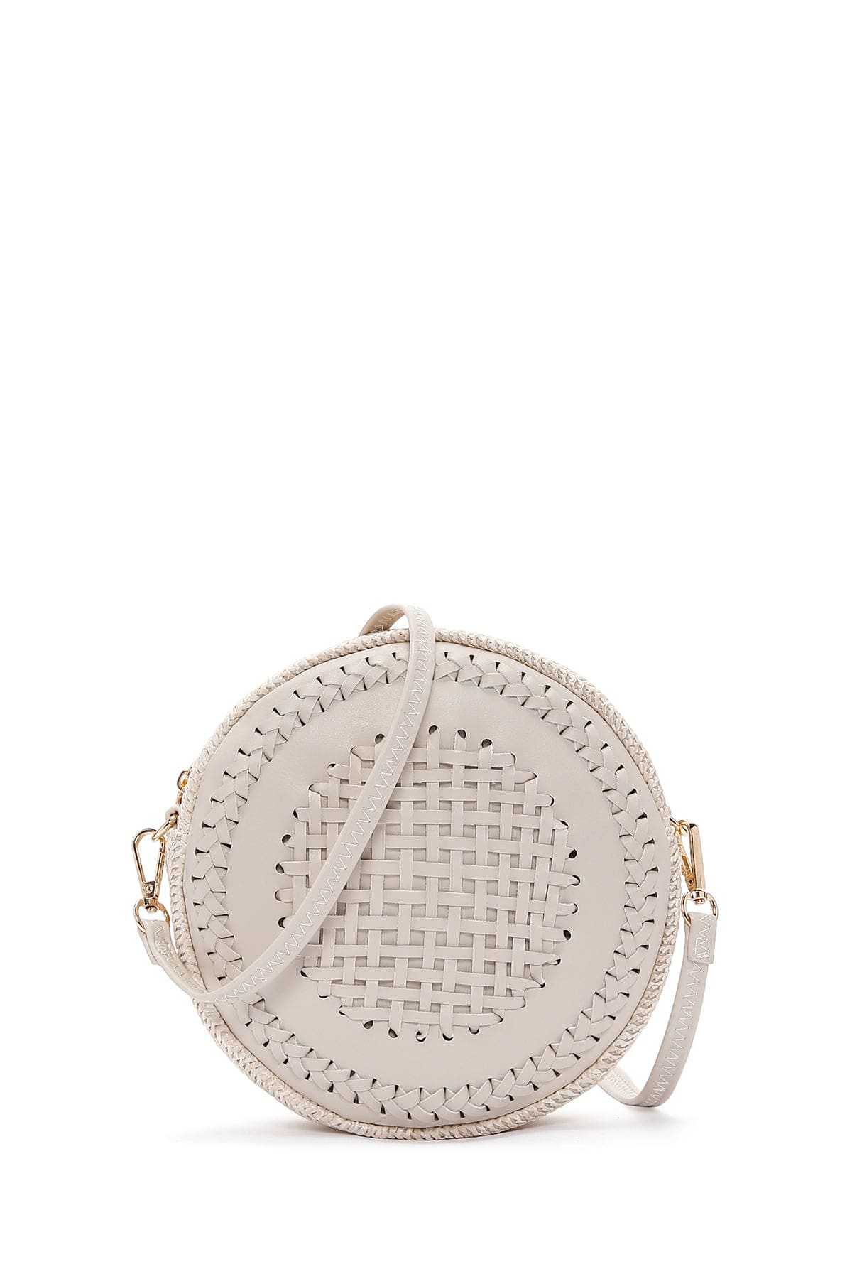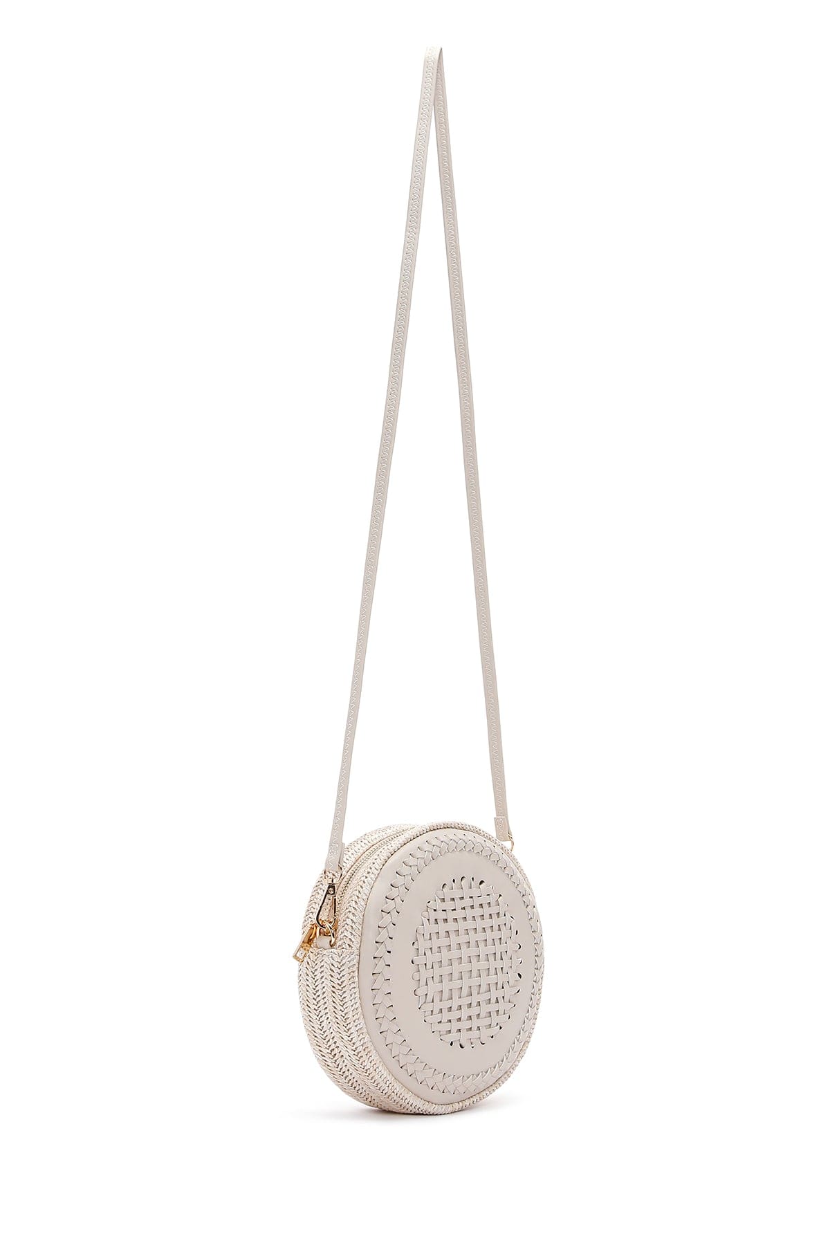 Kadın Beyaz Uzun Askılı Örgülü Mini Çapraz Çanta