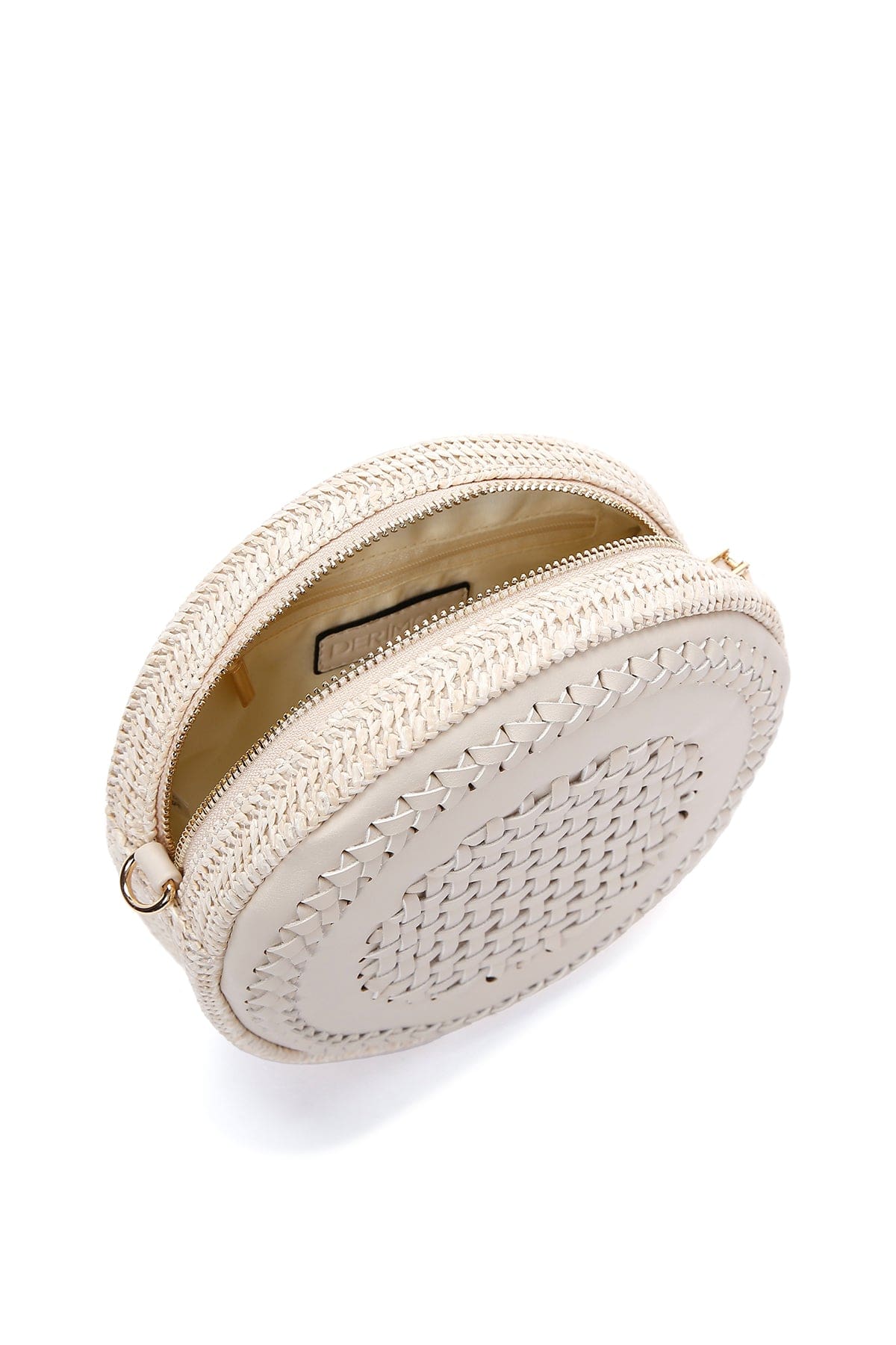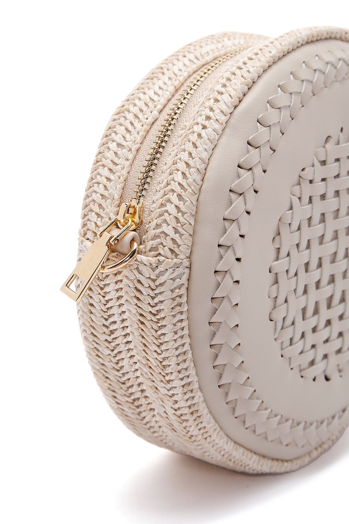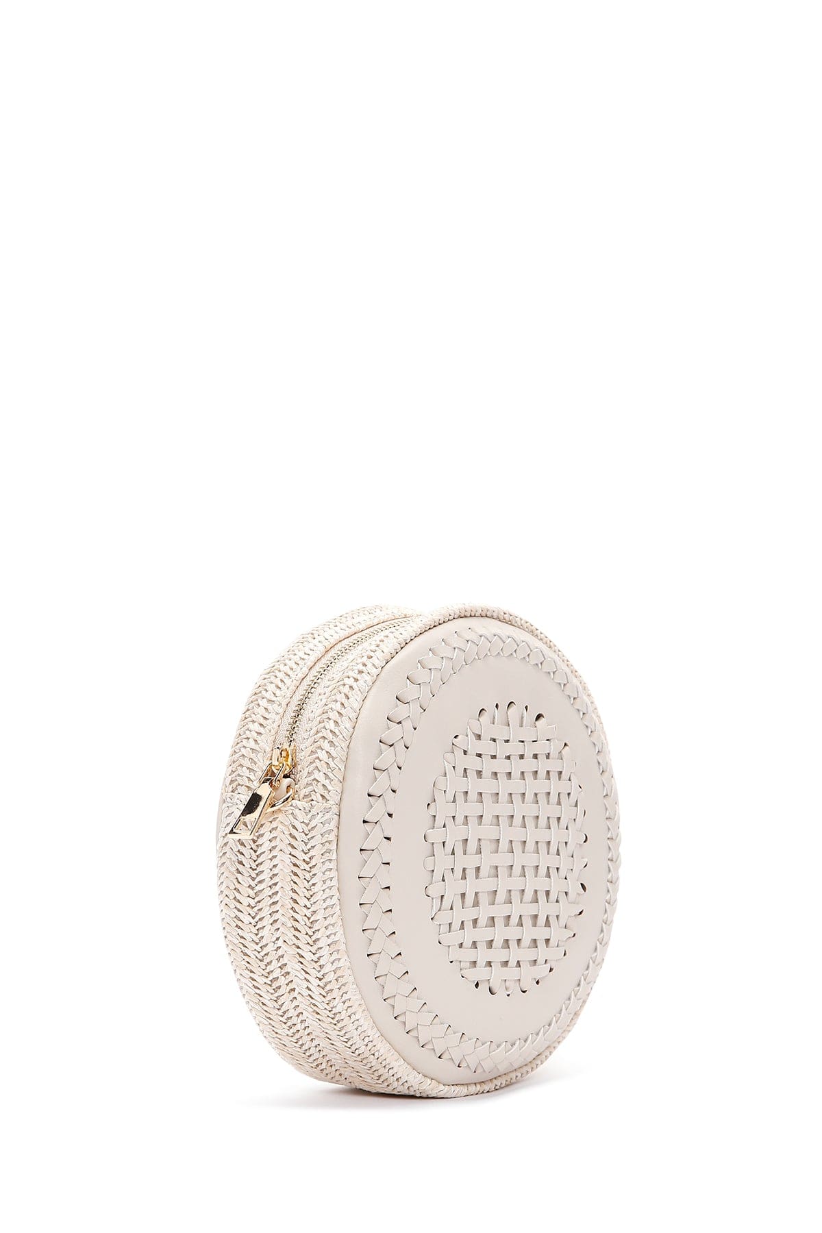 کیف کراس بادی زنانه چرم سفید بافتدار مینی بند بلند دری مد