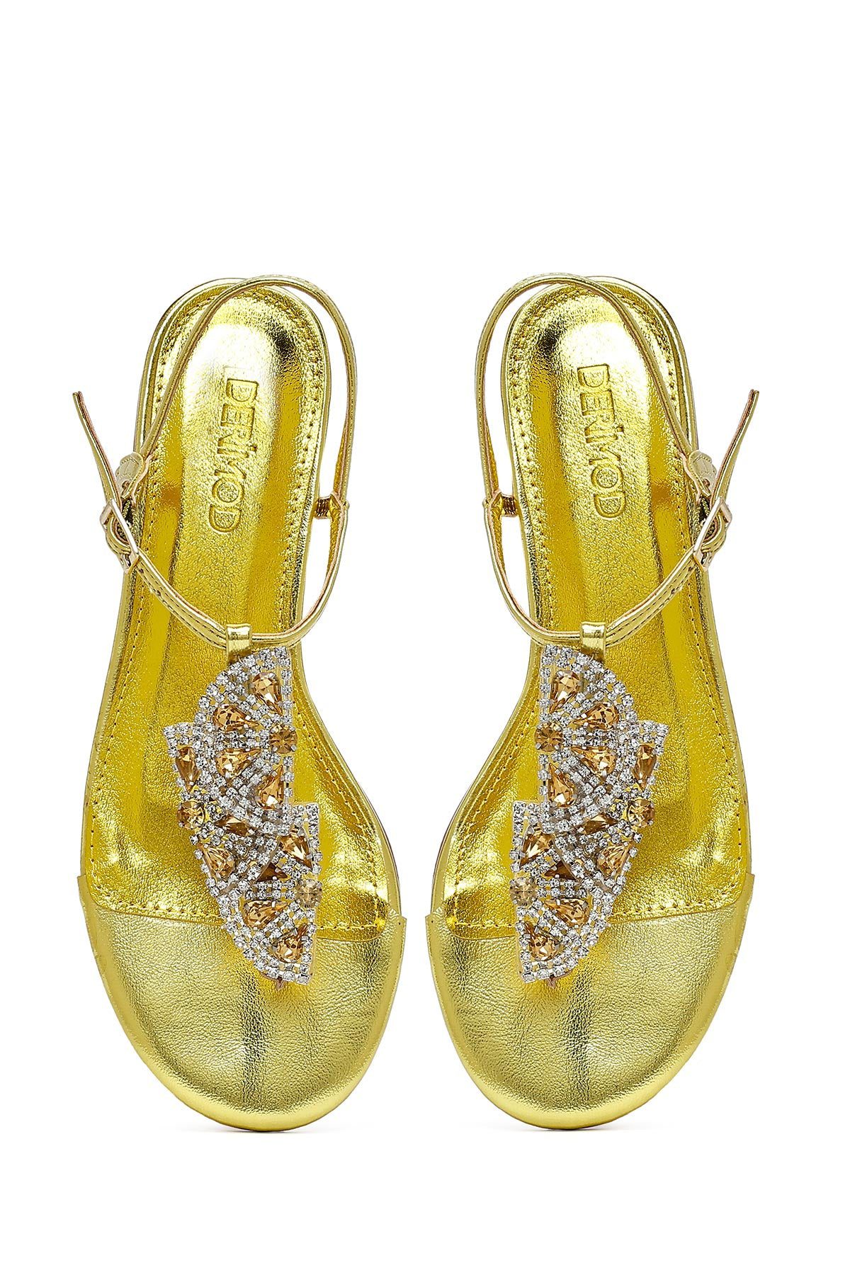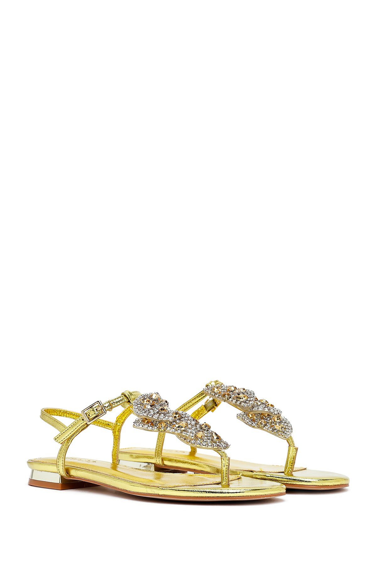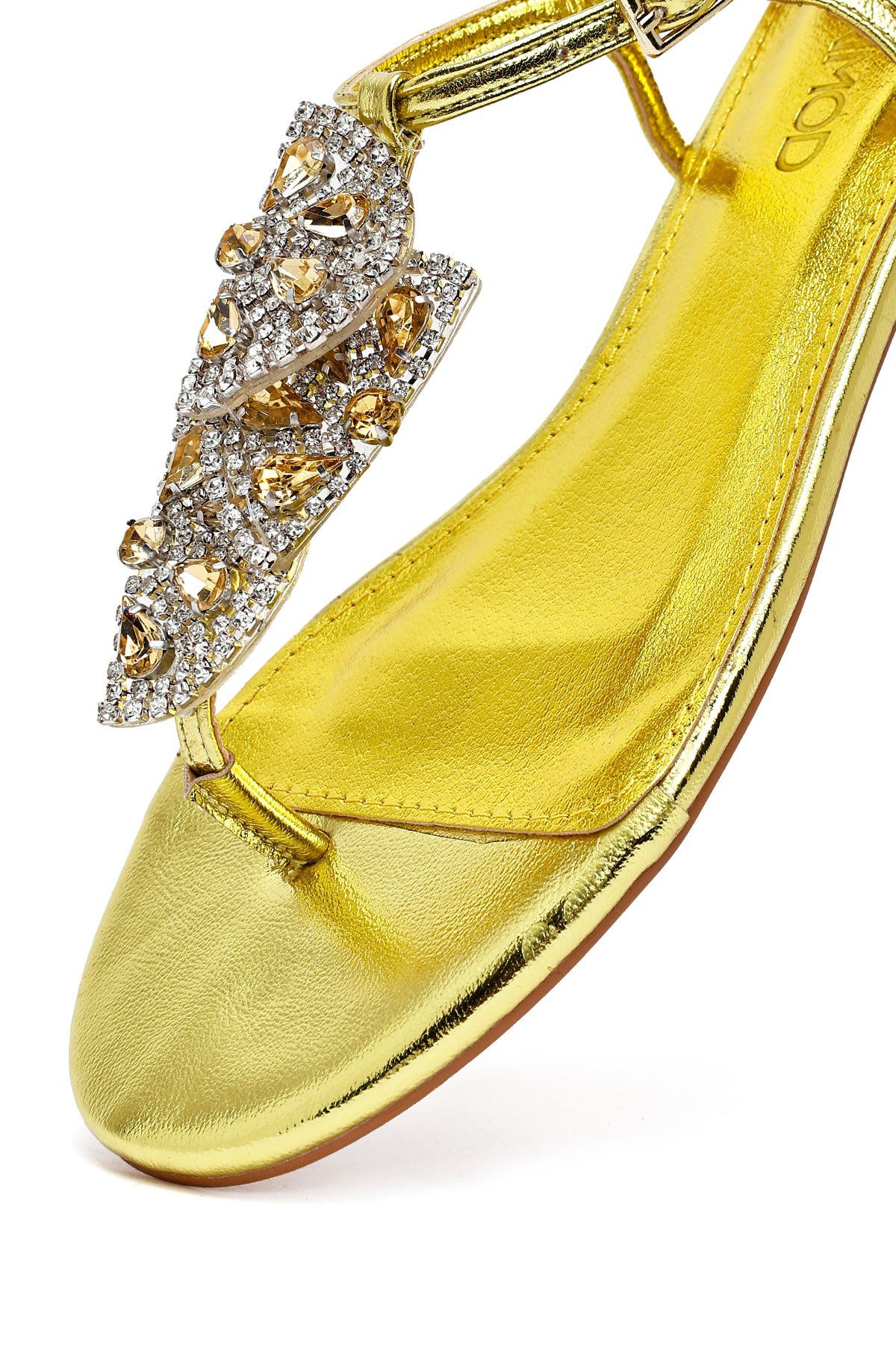 Kadın Sarı Taşlı Parmak Arası Sandalet
