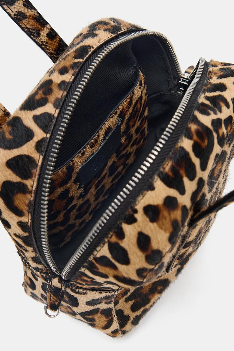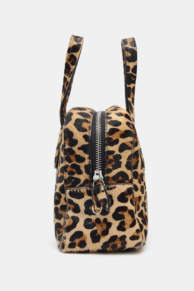 کیف بولینگ زنانه چرمی کوچک پوست گوسفندی چاپ حیوانی زارا – ZARA