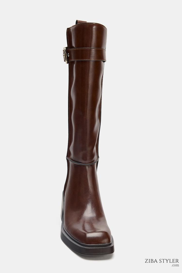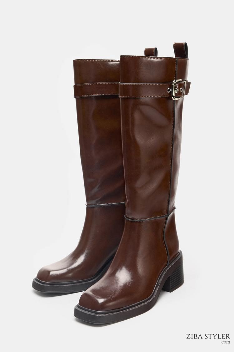 بوت زنانه ساقبلند دوخت کنتراست زارا – ZARA