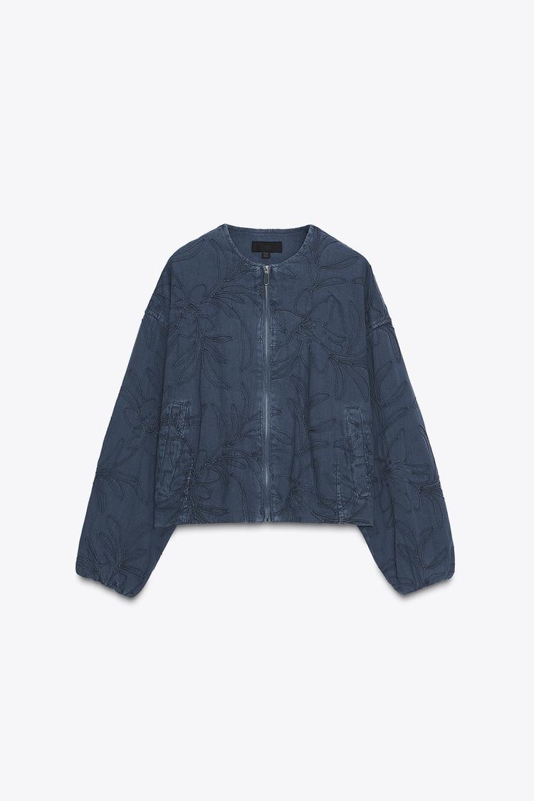 کت بامبر زنانه جیر مصنوعی گلدوزیشده زارا – ZARA