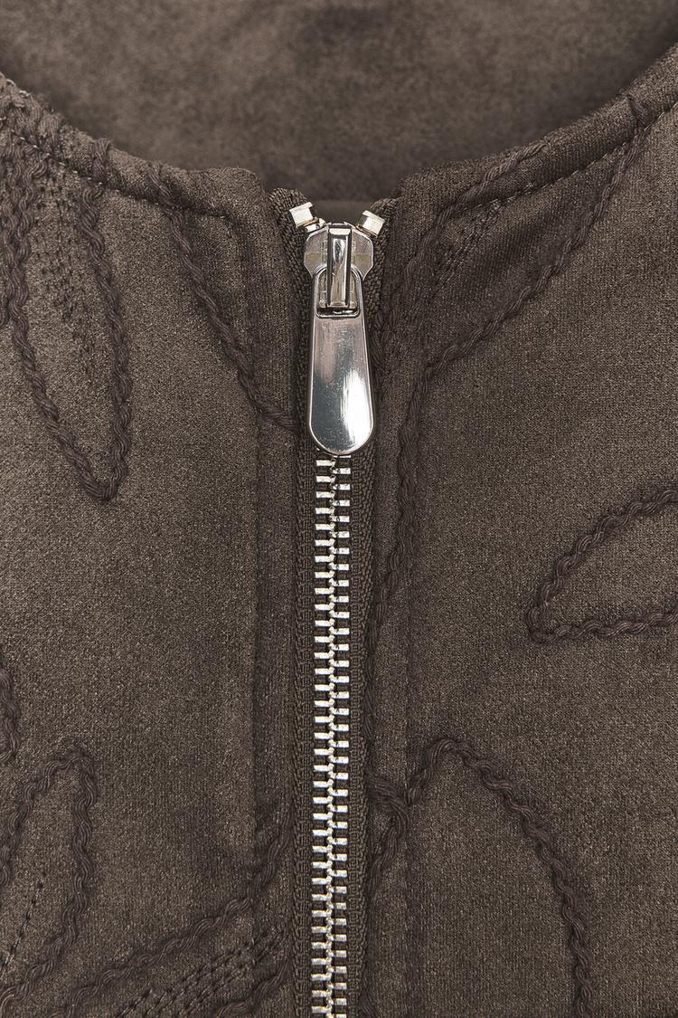 EMBROIDERED FAUX SUEDE BOMBER JACKET