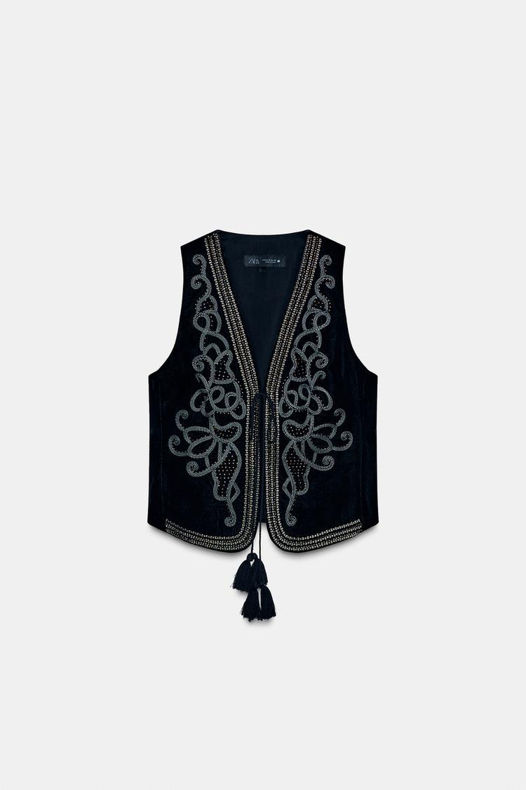 جلیقه مخملی زنانه گلدوزی کالکشن ZW زارا – ZARA