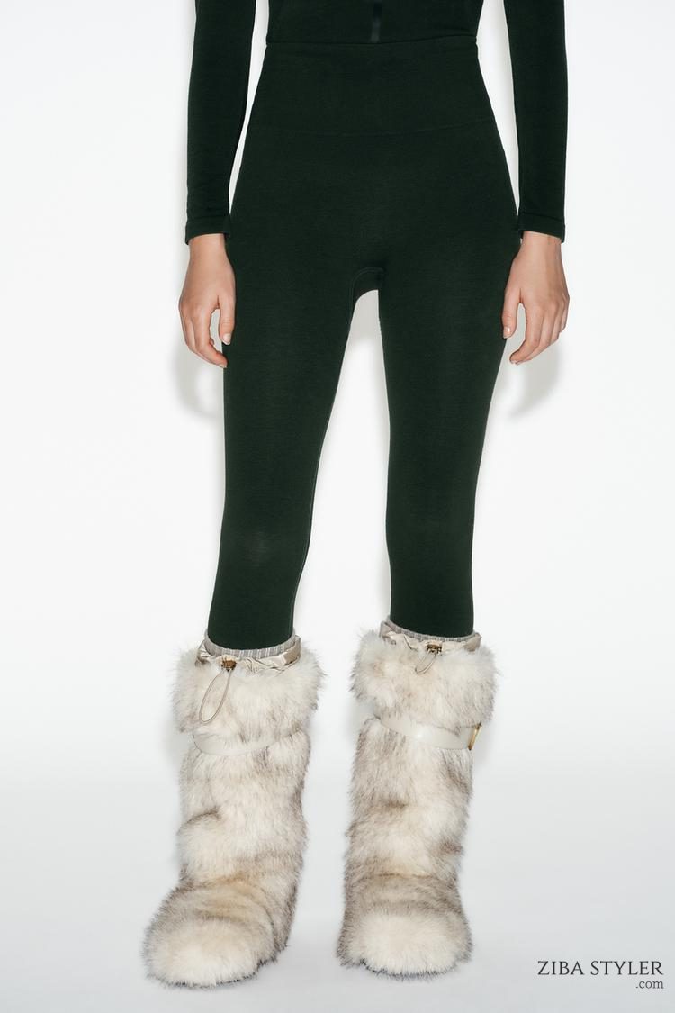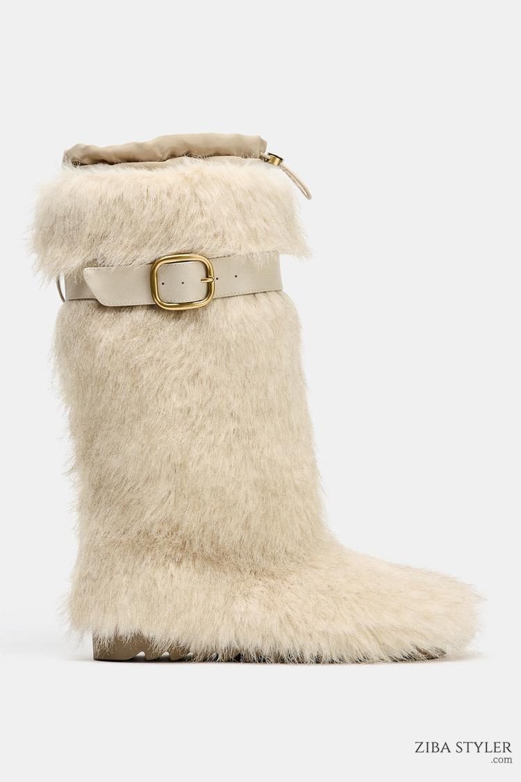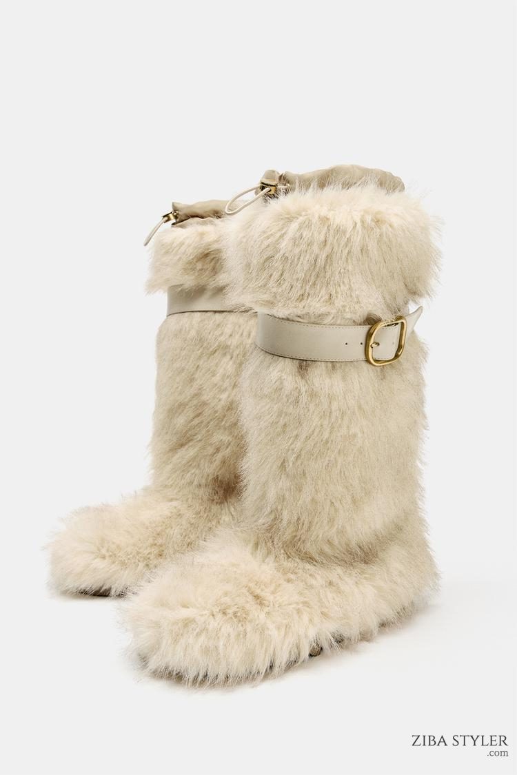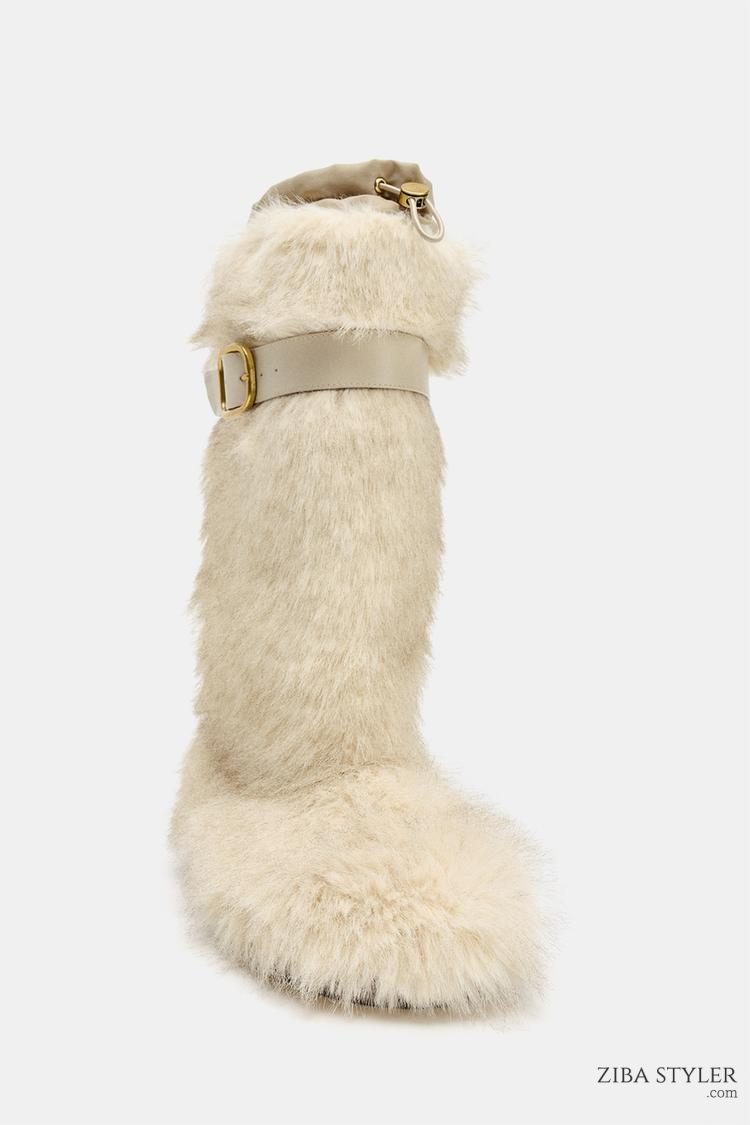 نیم بوت زنانه خز مصنوعی با بند کالکشن اسکی زارا – ZARA