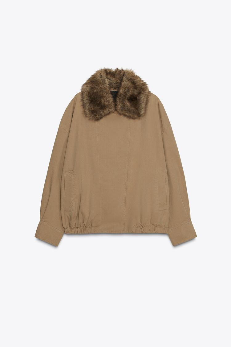 کت بامبر زنانه با یقه خز مصنوعی کالکشن ZW زارا – ZARA