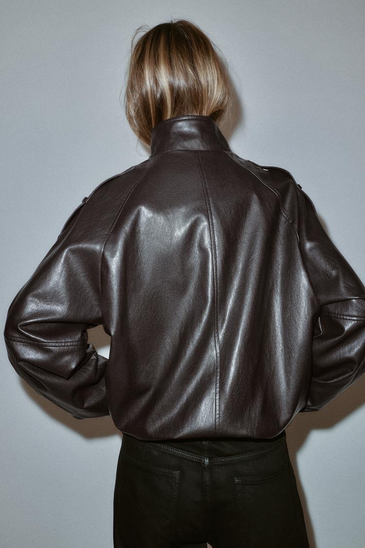 کت زنانه یقهبلند چرم مصنوعی زارا – ZARA