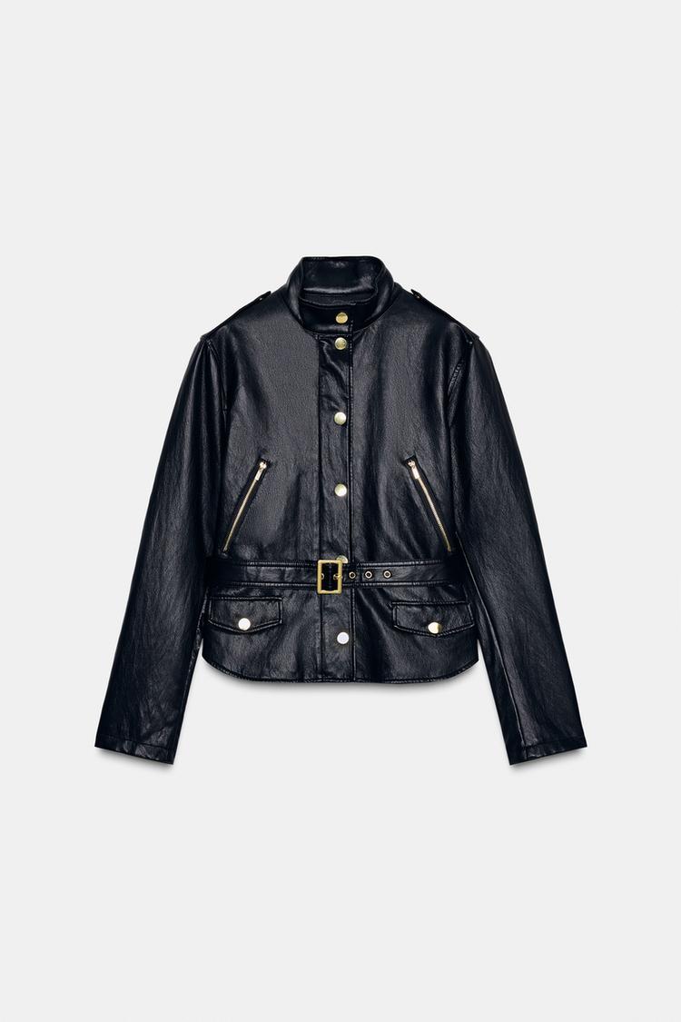 کت زنانه چرم مصنوعی کمربنددار زارا – ZARA