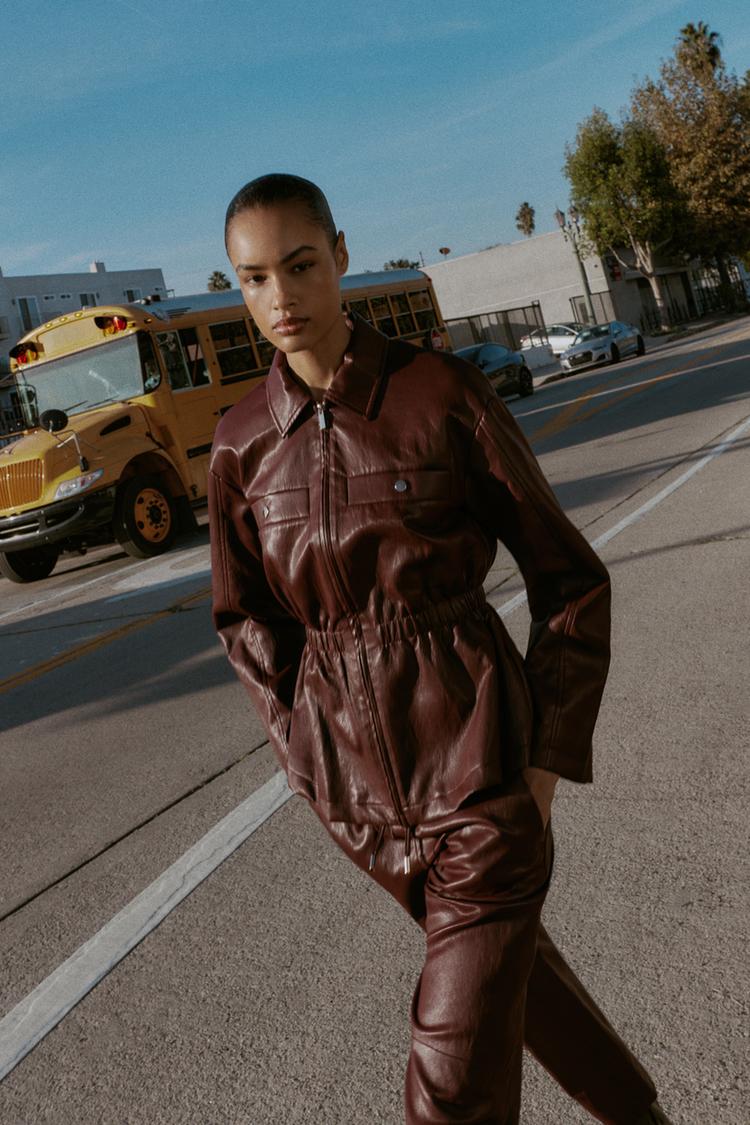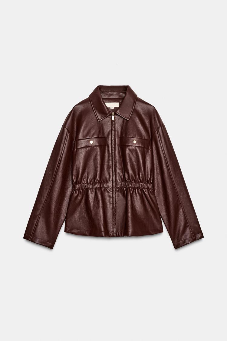 کت زنانه چرم مصنوعی با کمر کشی زارا – ZARA