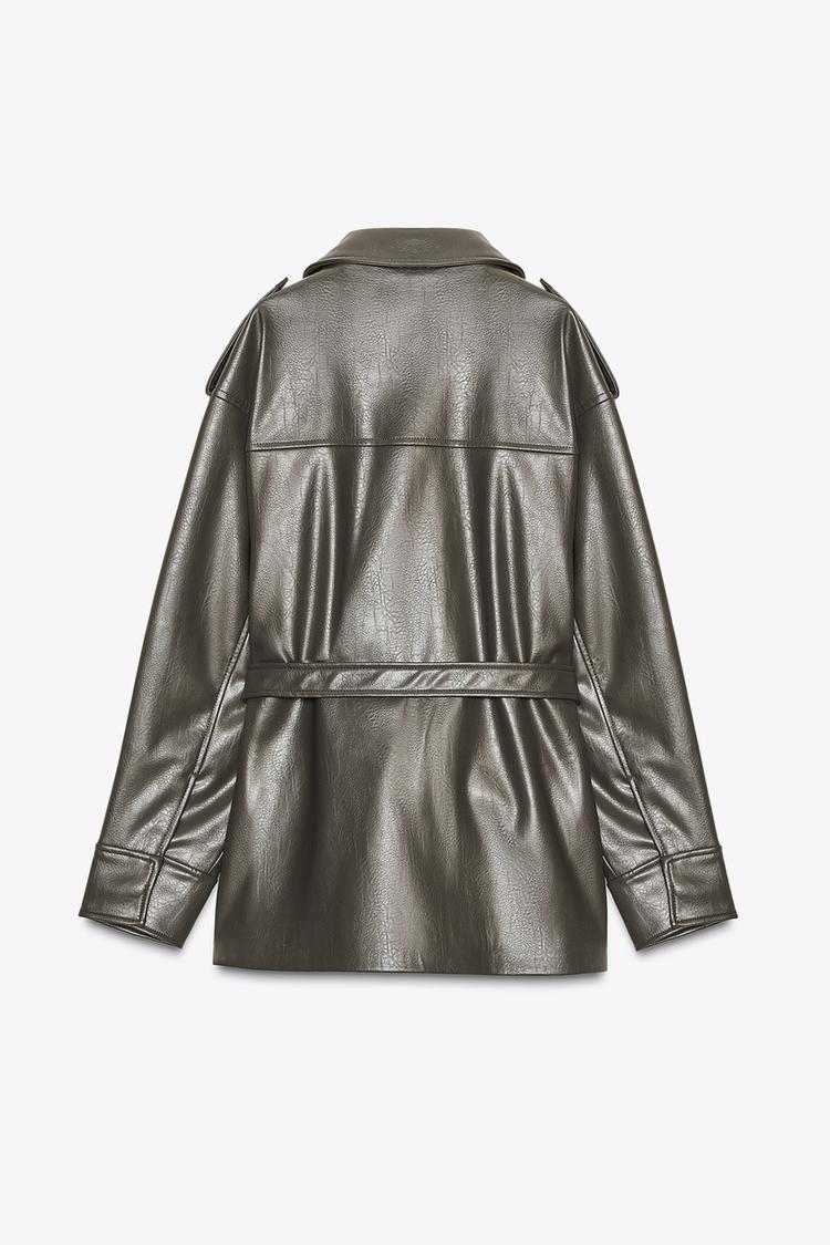 کت زنانه چرم مصنوعی با جیب زارا – ZARA