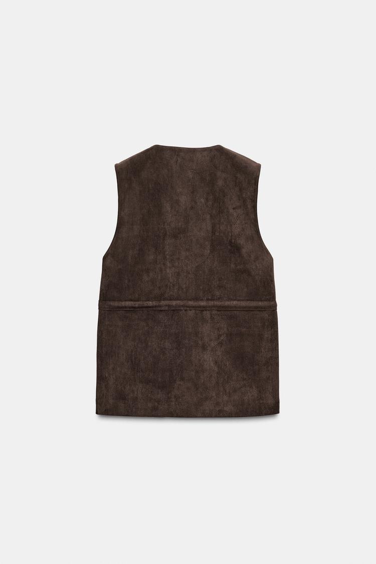 FAUX SUEDE WAISTCOAT WITH POCKETS