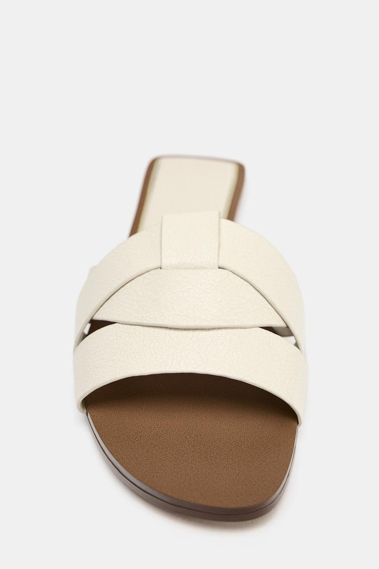 FLAT CRISS-CROSS LEATHER SLIDER SANDALS
