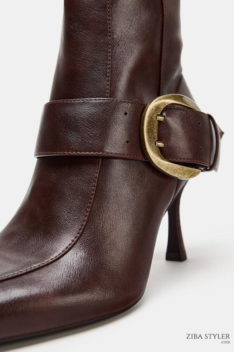 بوت زنانه پاشنه بلند سگکدار فلزی زارا – ZARA