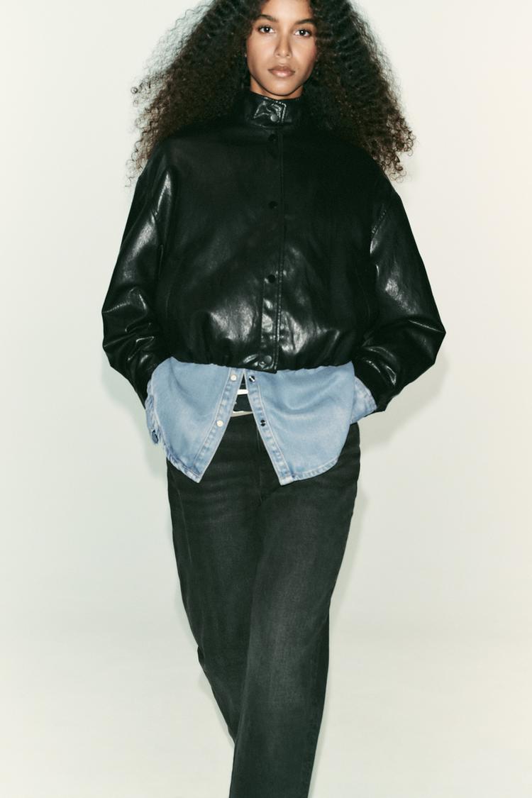 کت بامبر زنانه یقهبلند چرم مصنوعی زارا – ZARA
